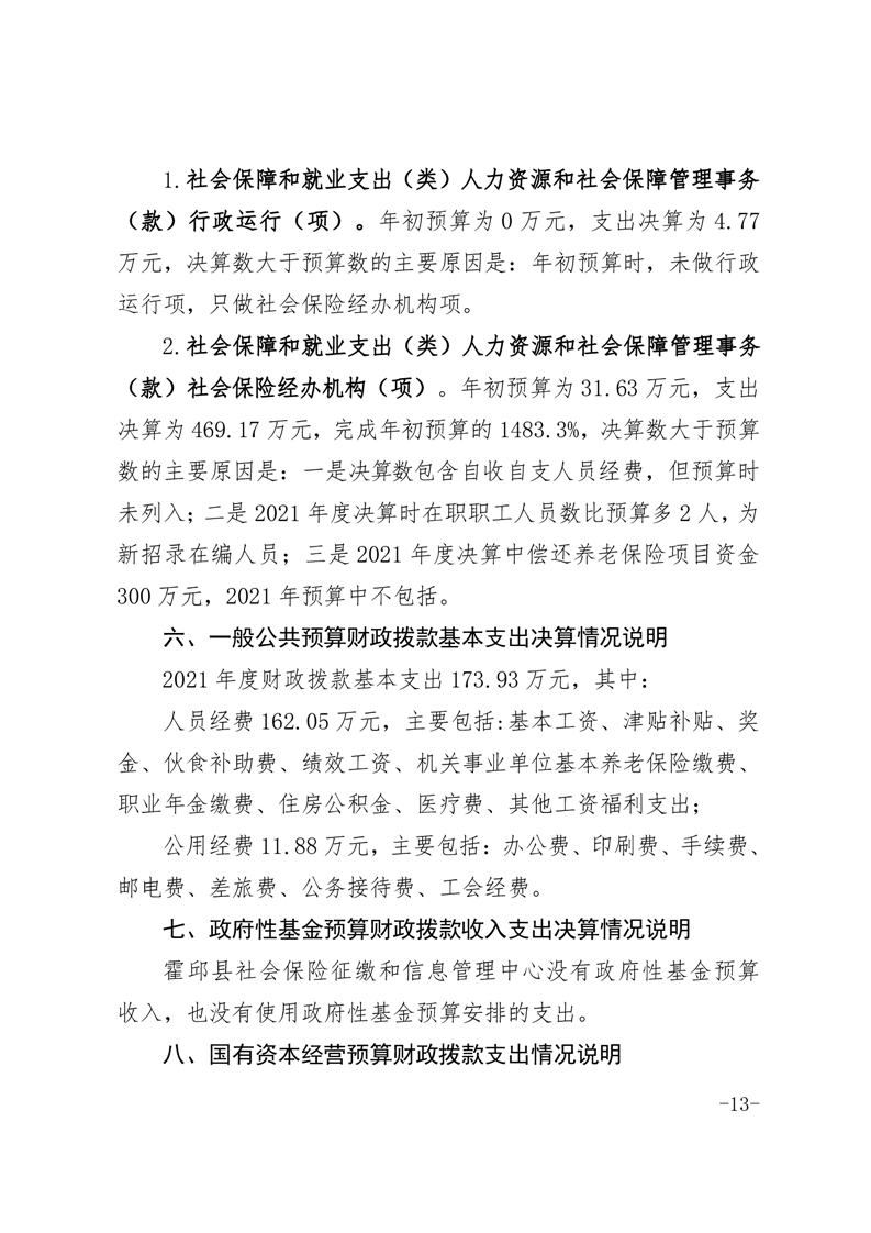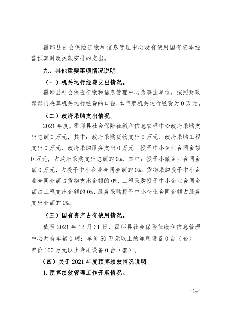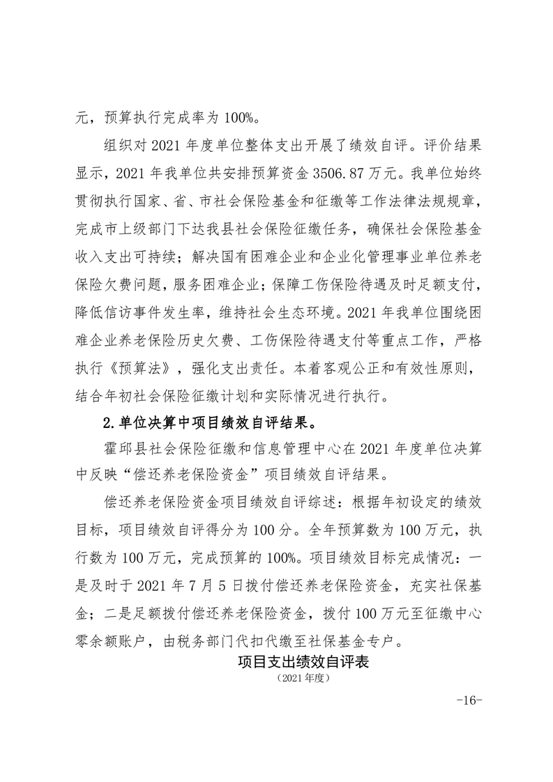 霍邱县社会保险征缴和信息管理中心2021年度单位决算公开