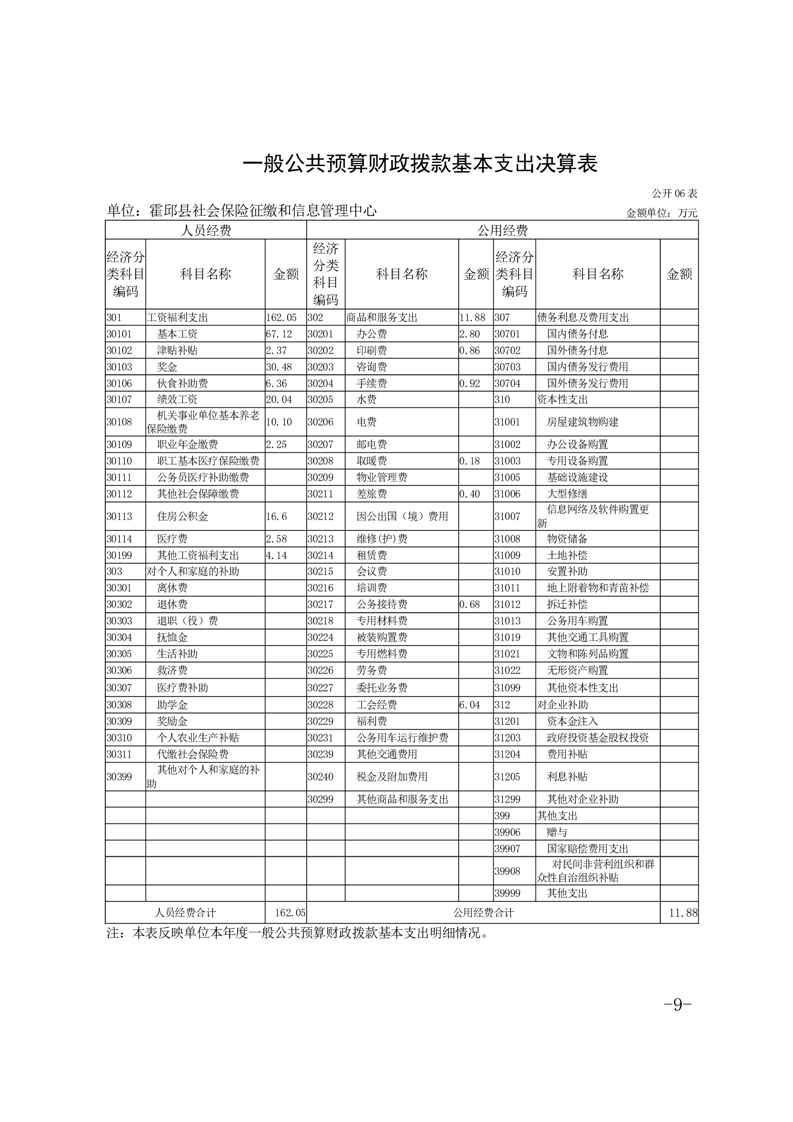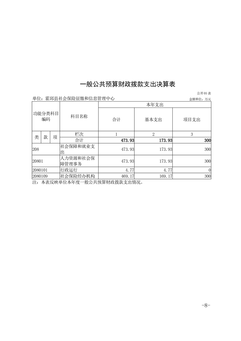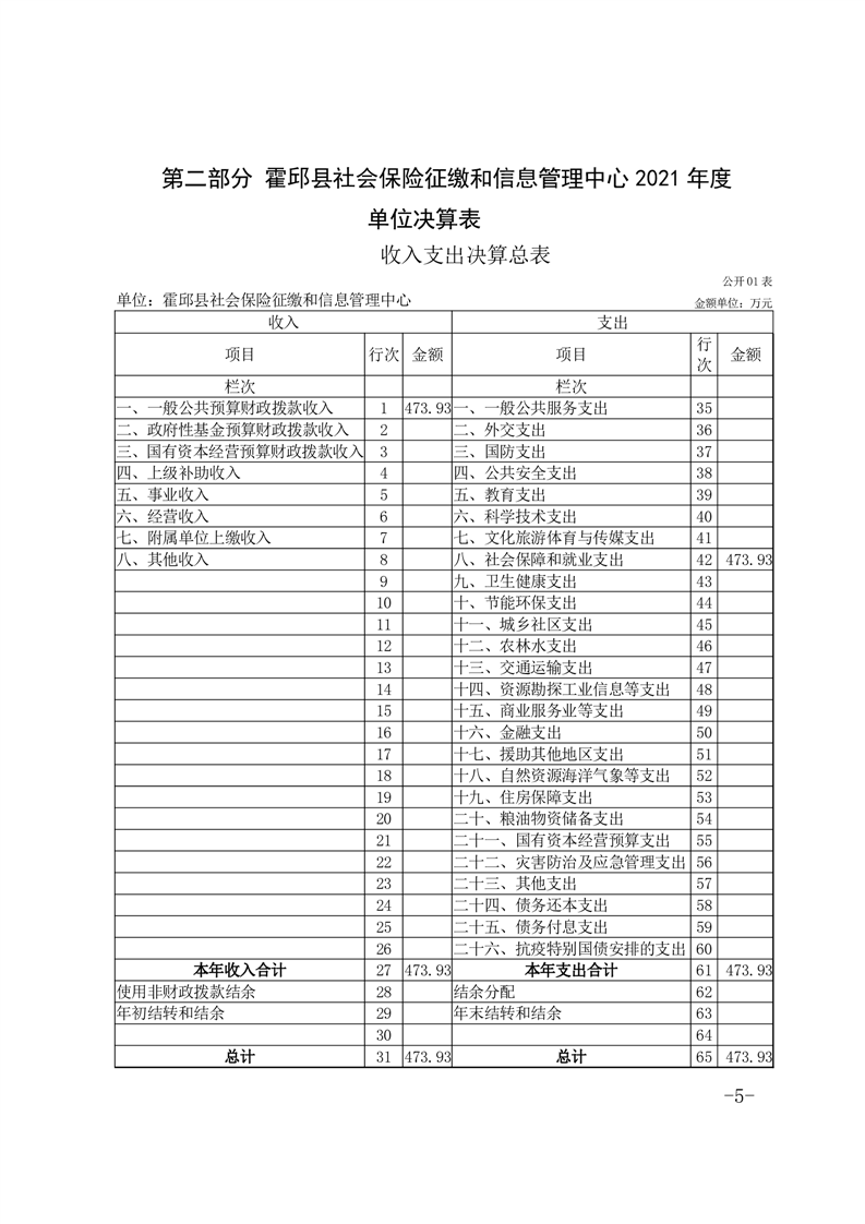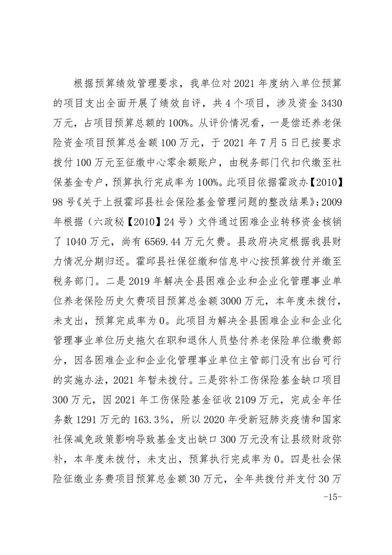 霍邱县社会保险征缴和信息管理中心2021年度单位决算公开