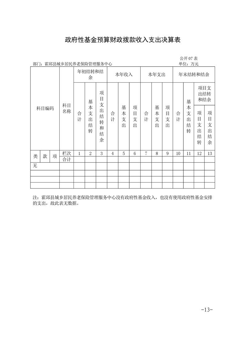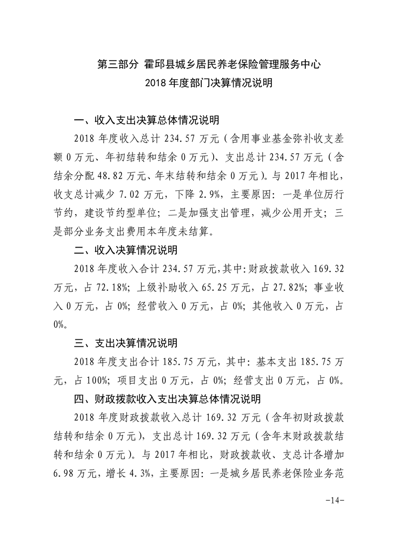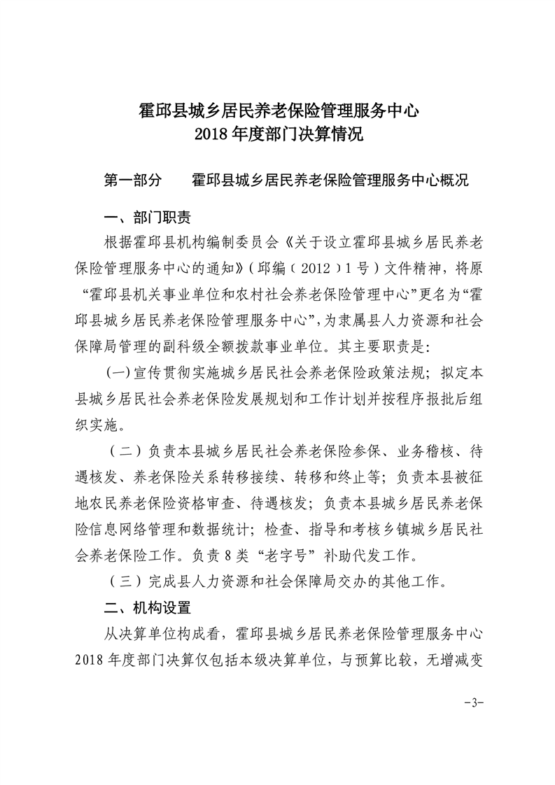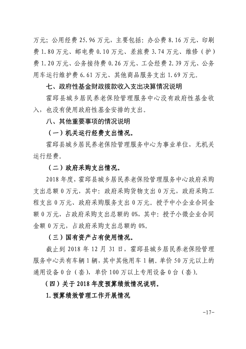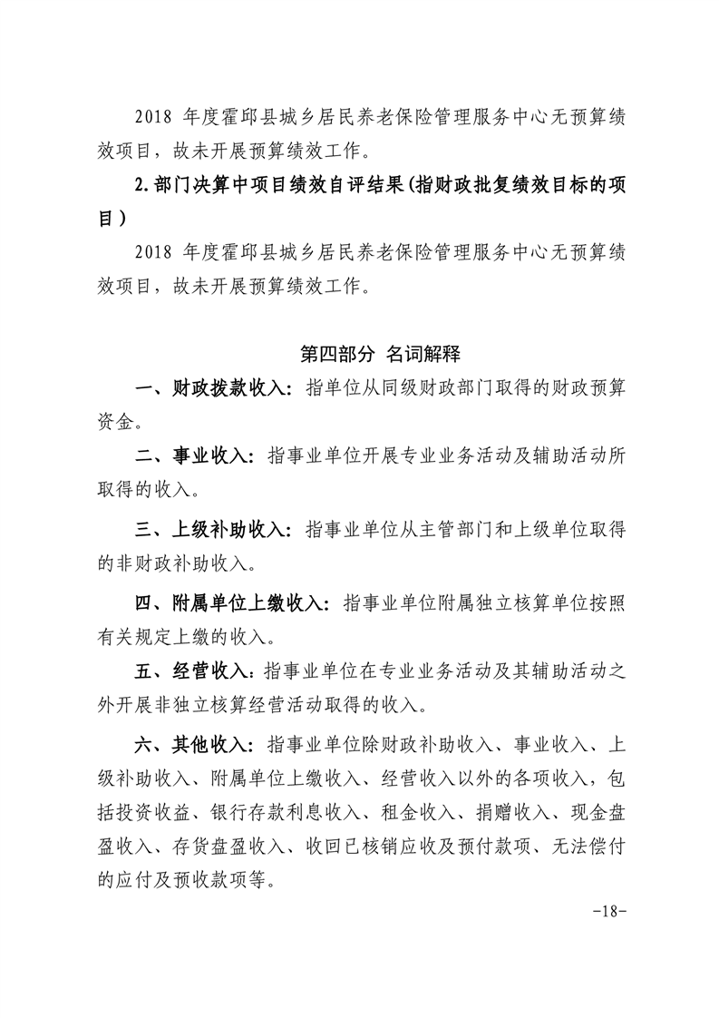 霍邱县城乡居民养老保险管理服务中心2018年度部门决算公开