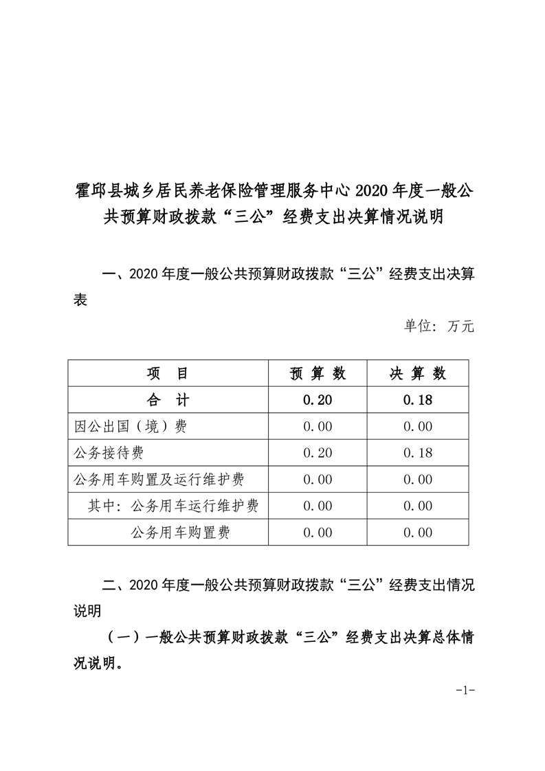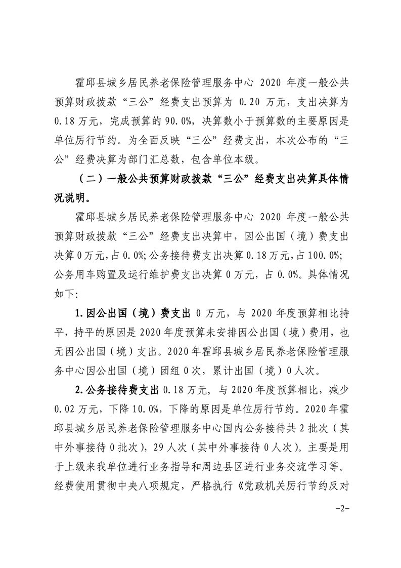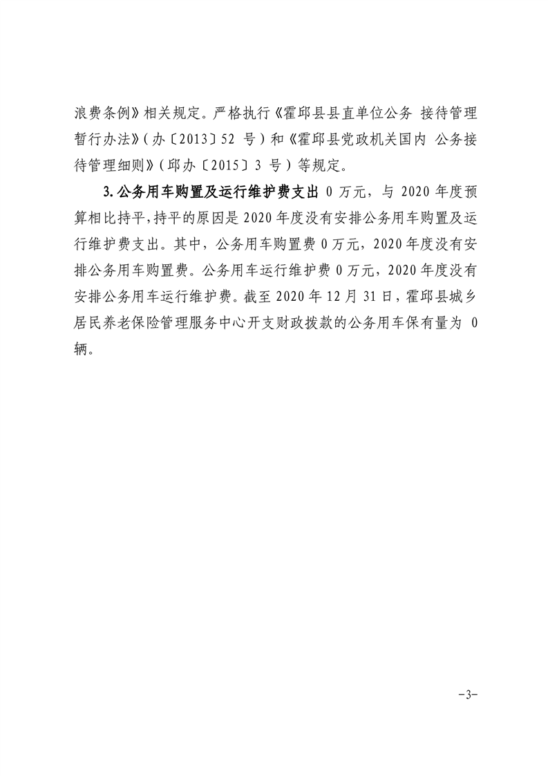 霍邱县城乡居民养老保险管理服务中心2020年一般公共预算财政拨款“三公”经费支出决算公开