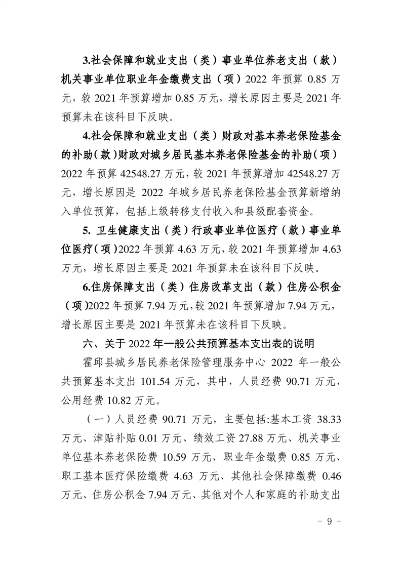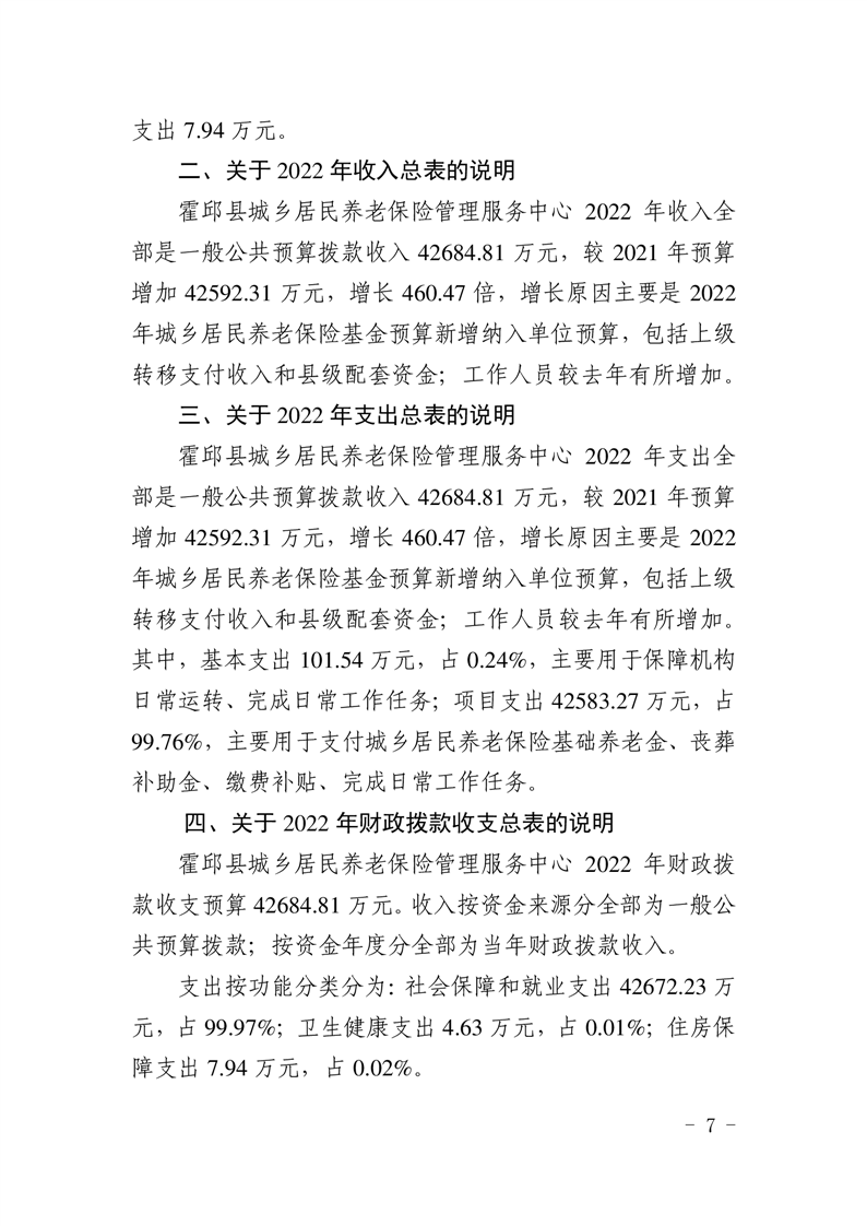 霍邱县城乡居民养老保险管理服务中心2022年部门预算公开