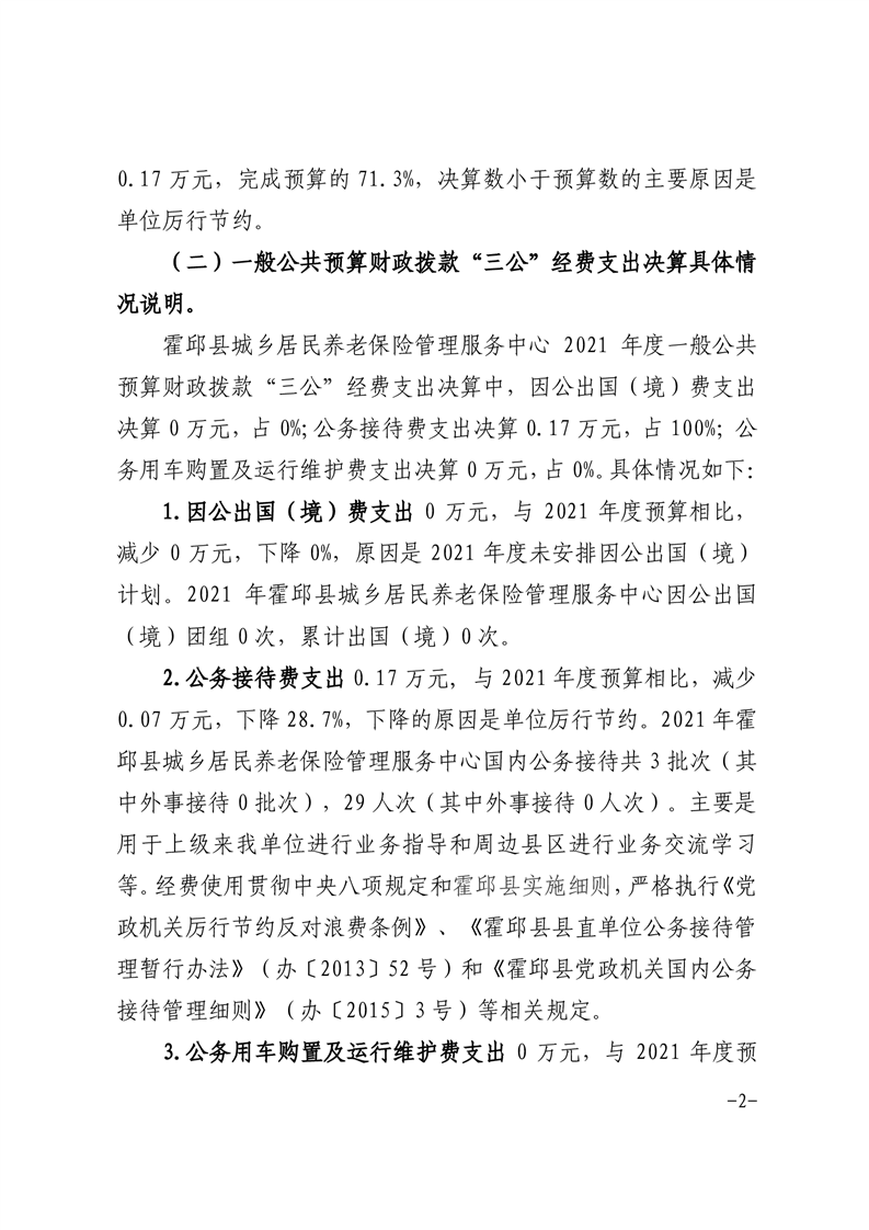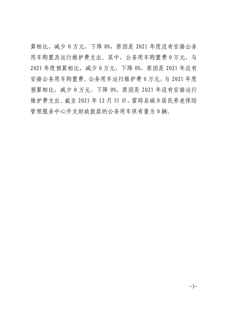 霍邱县城乡居民养老保险管理服务中心2021年一般公共预算财政拨款“三公”经费支出决算公开