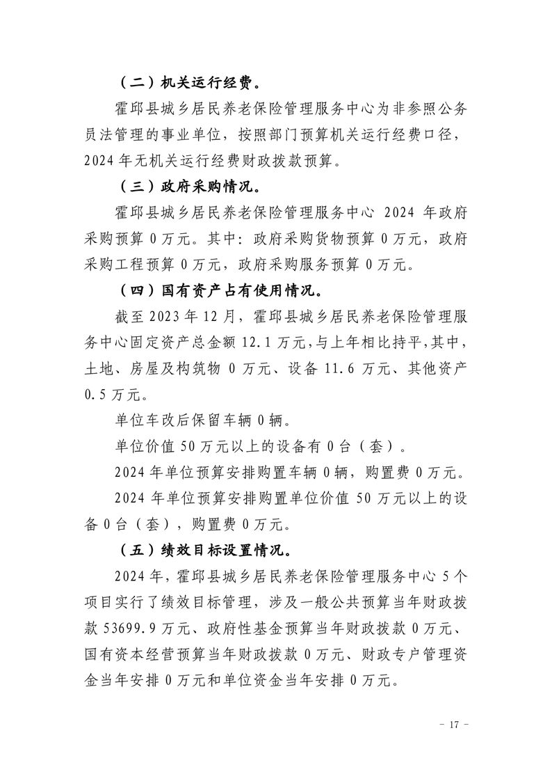 附件2:2024年部门单位预算公开报表-霍邱县城乡居民养老保险管理服务中心.pdf 附件3:2024年部门单位项目支出绩效目标公开-霍邱县城乡居民养老保险管理服务中心.pdf