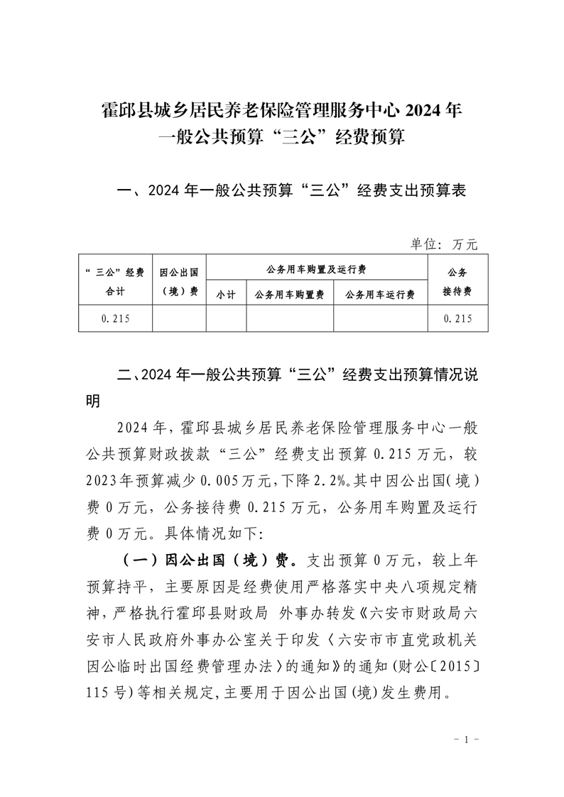 霍邱县城乡居民养老保险服务中心2024年一般公共预算“三公”经费预算