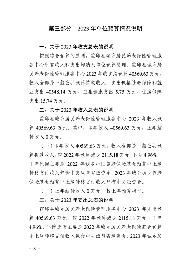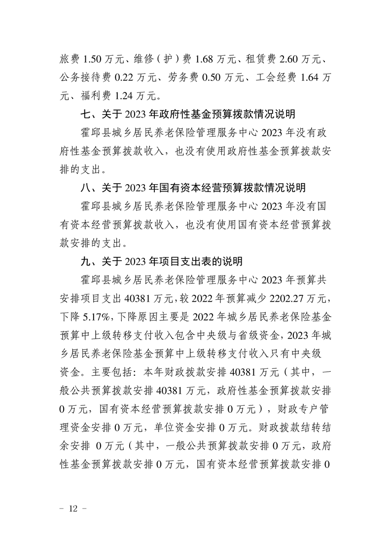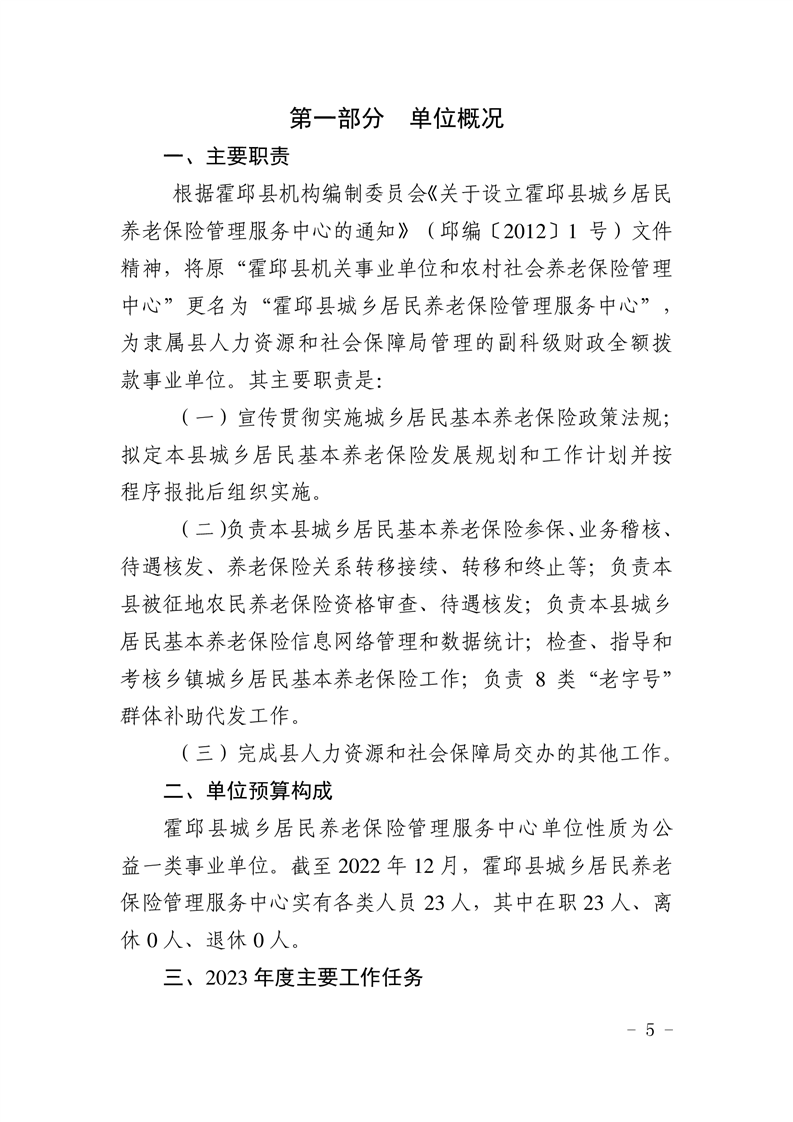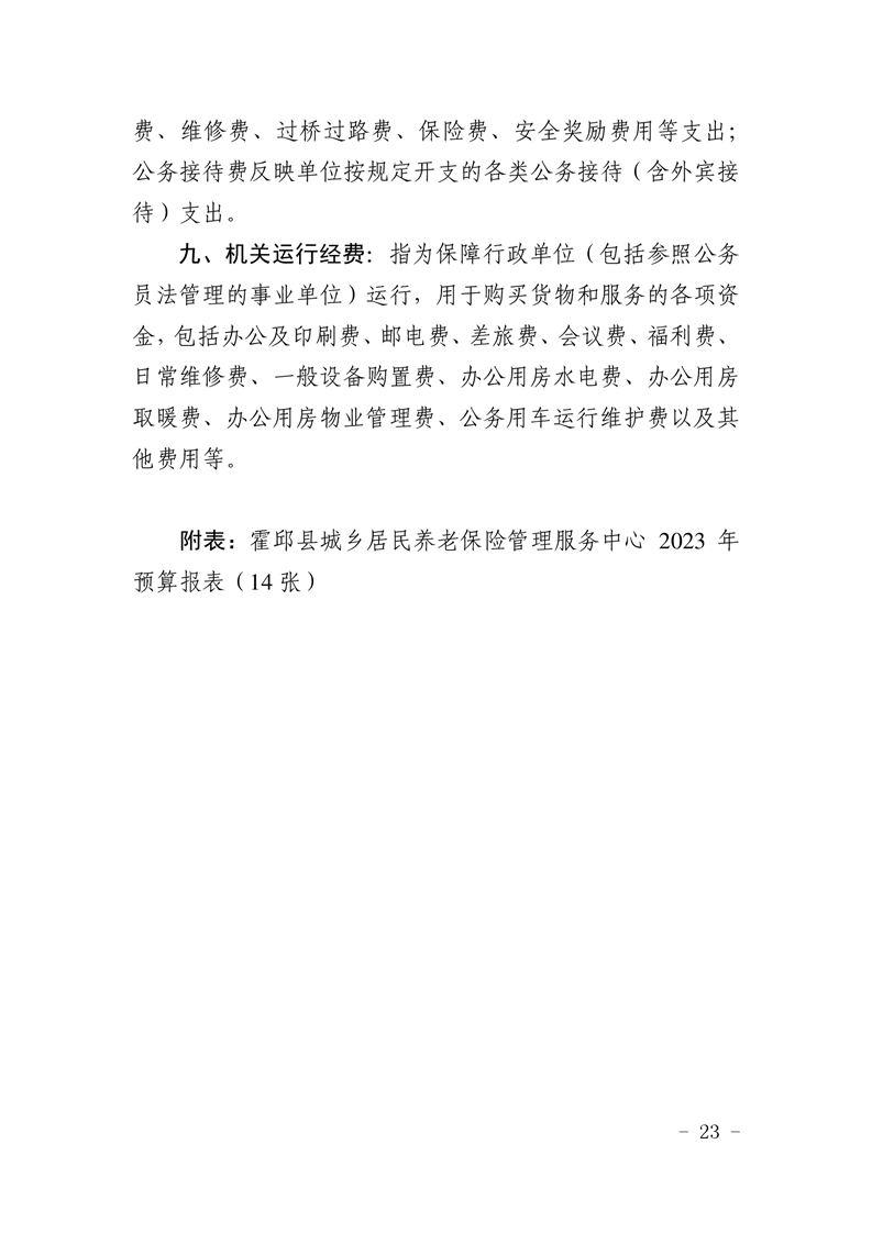 霍邱县城乡居民养老保险管理服务中心2023年单位预算公开