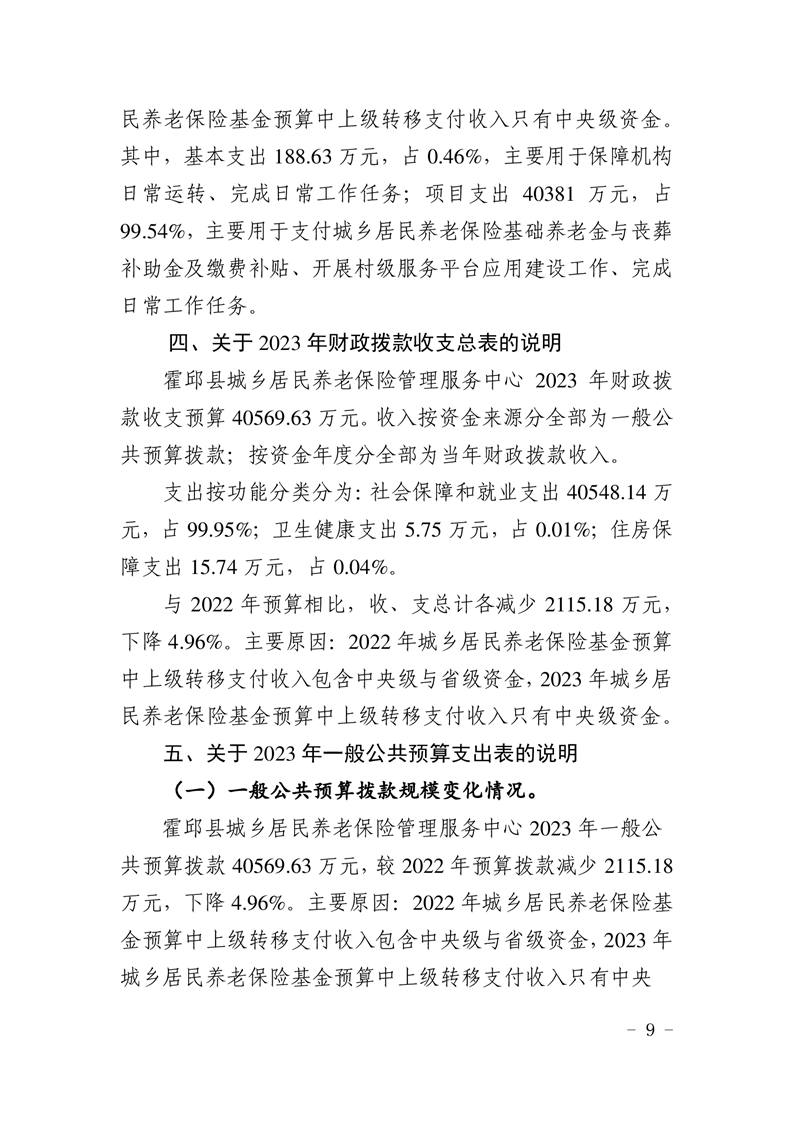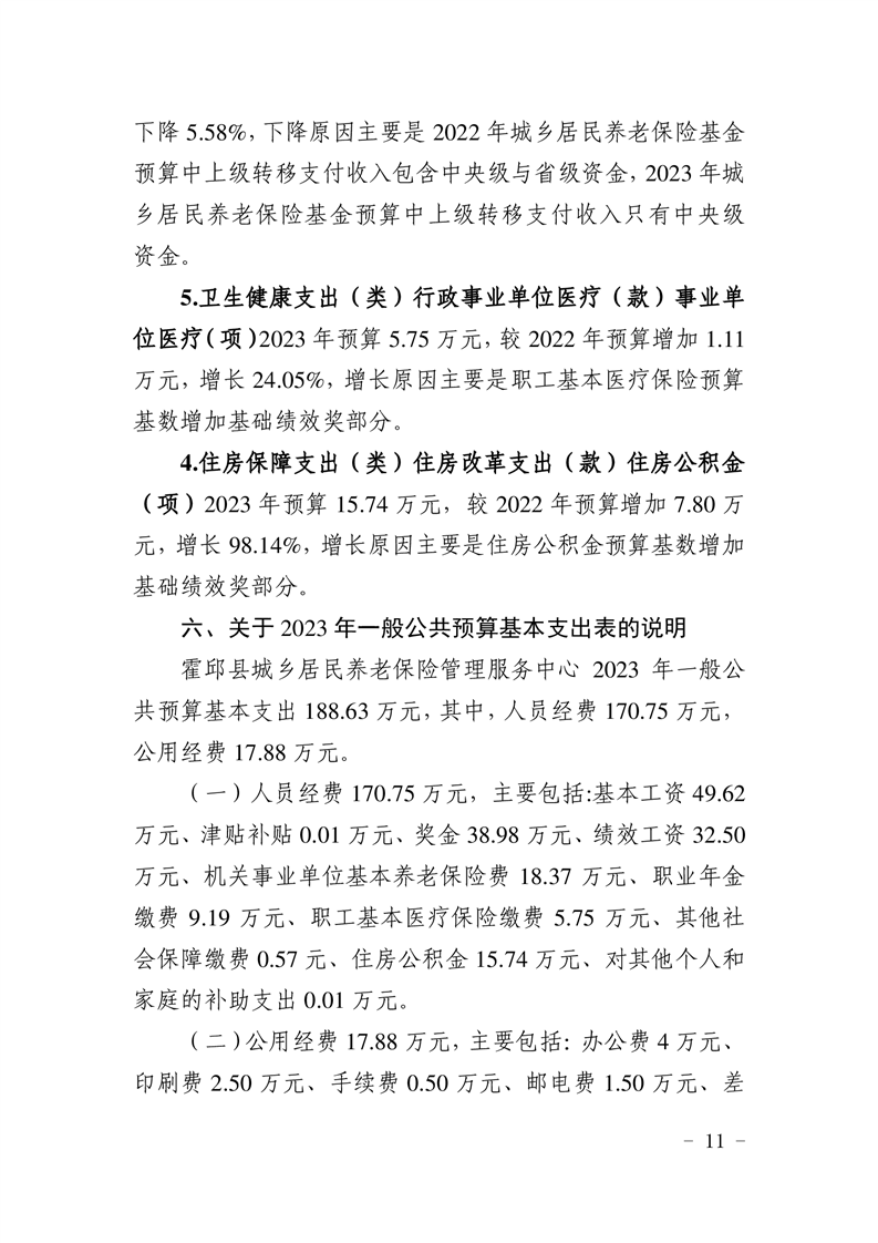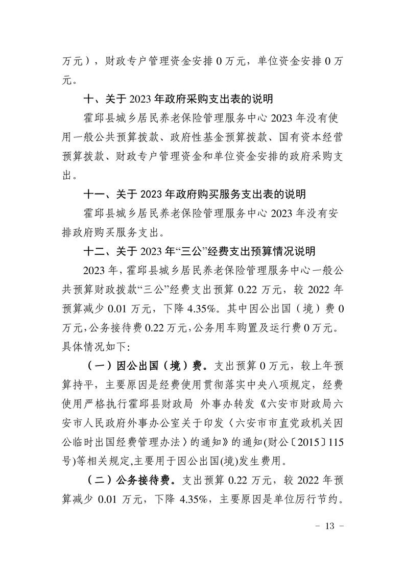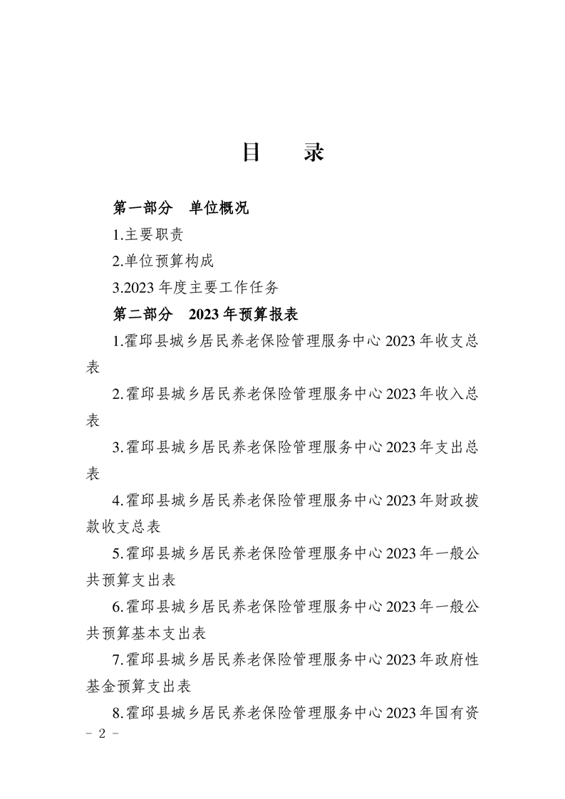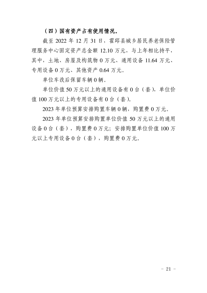 霍邱县城乡居民养老保险管理服务中心2023年单位预算公开