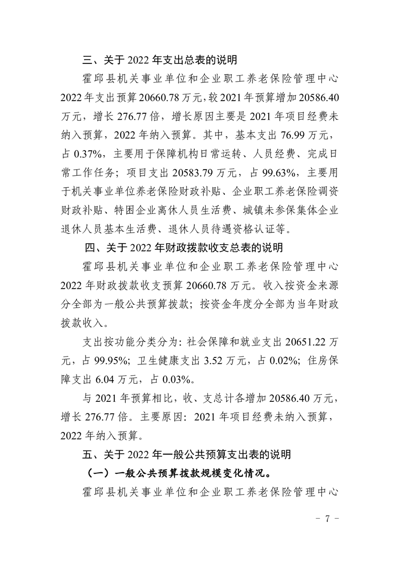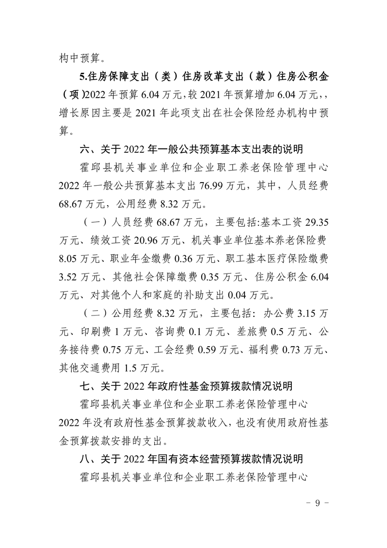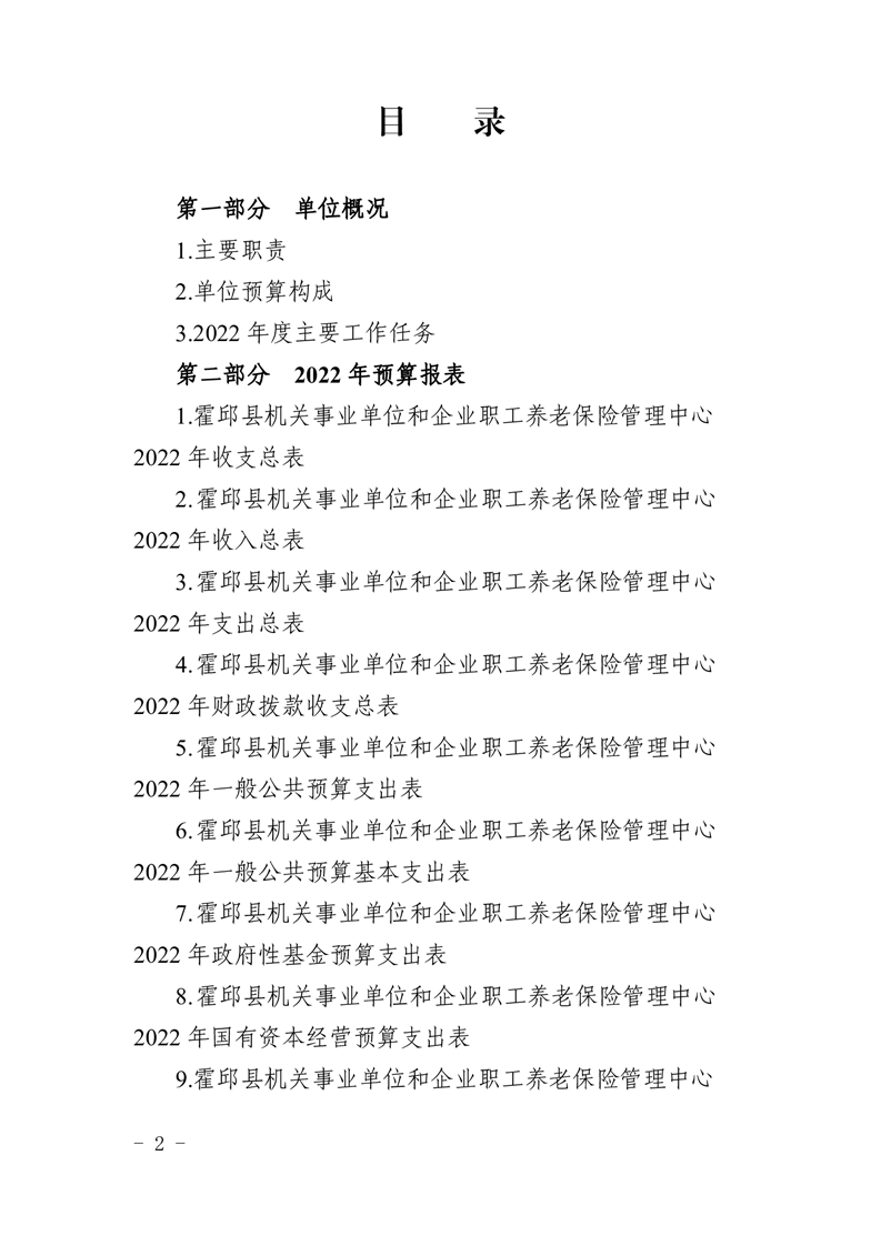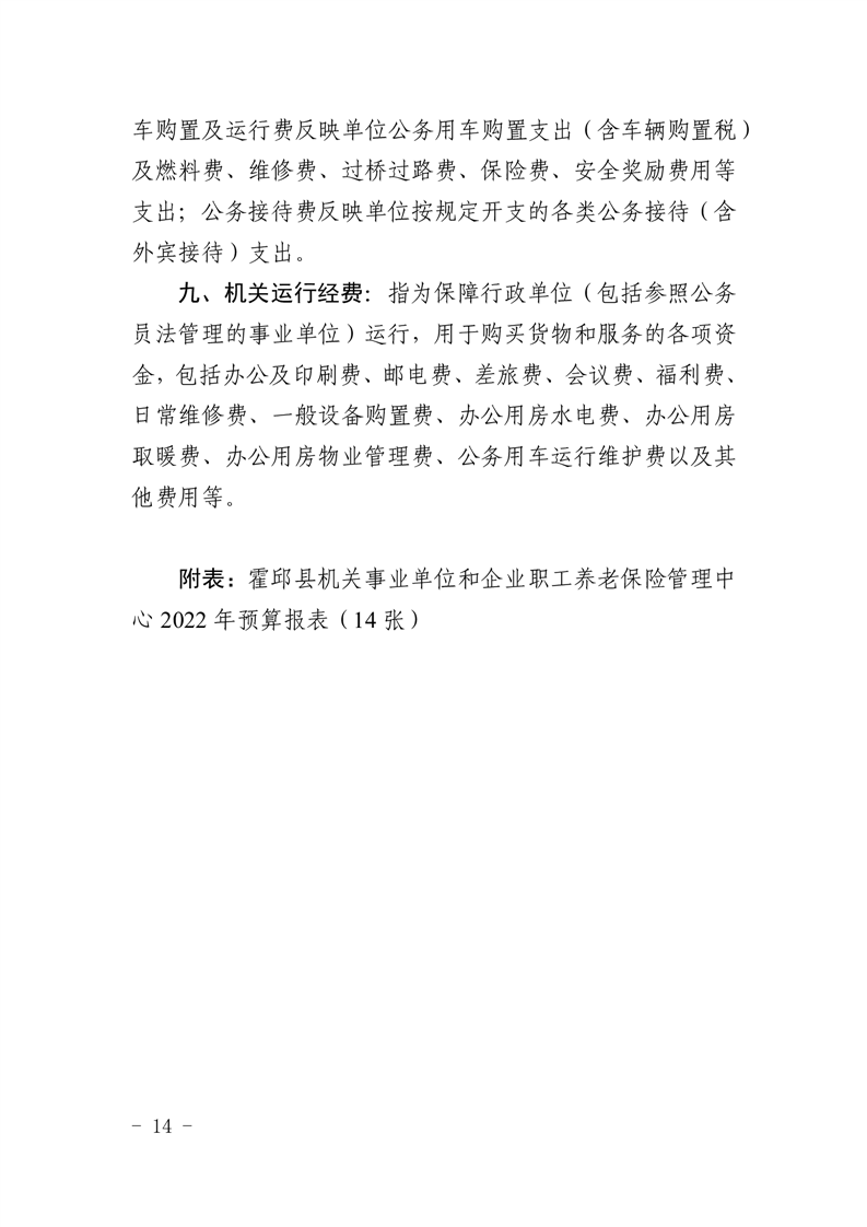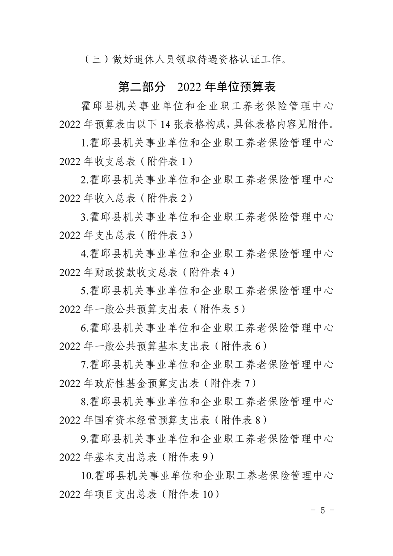 霍邱县机关事业单位和企业职工养老保险管理中心2022年单位预算公开