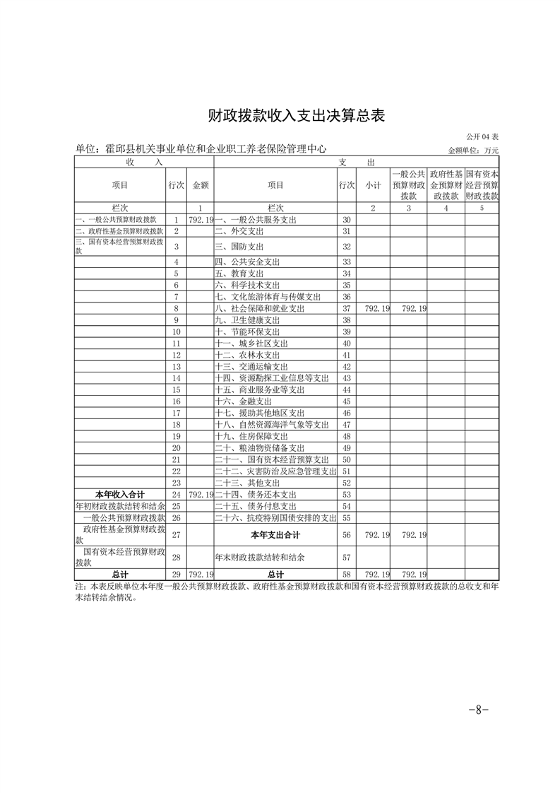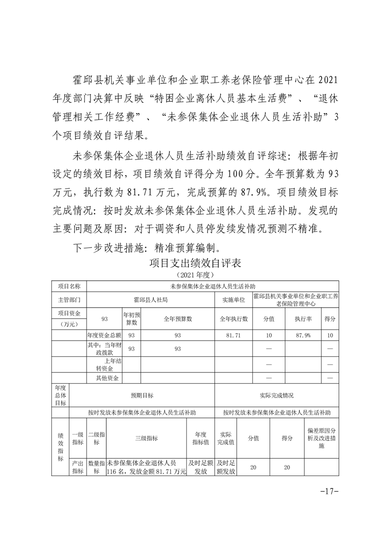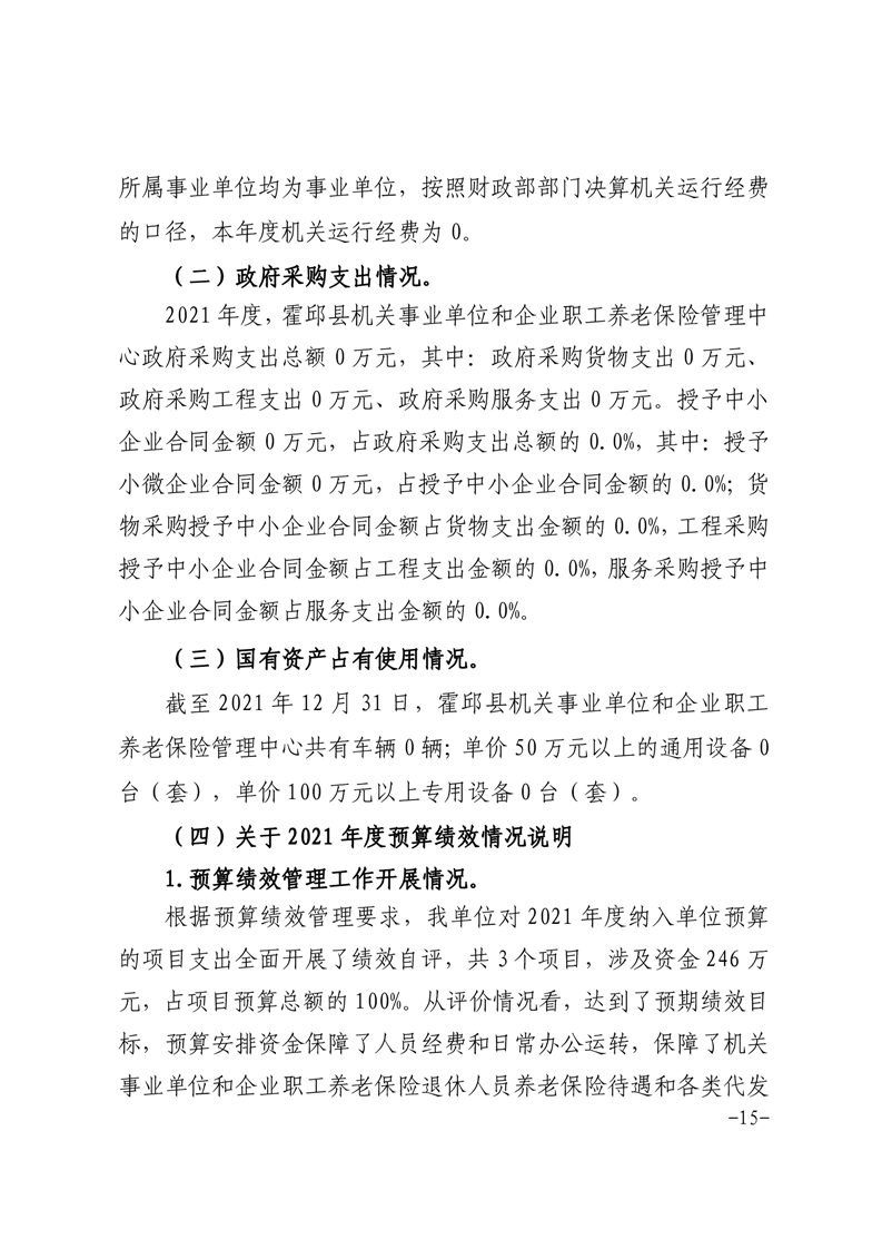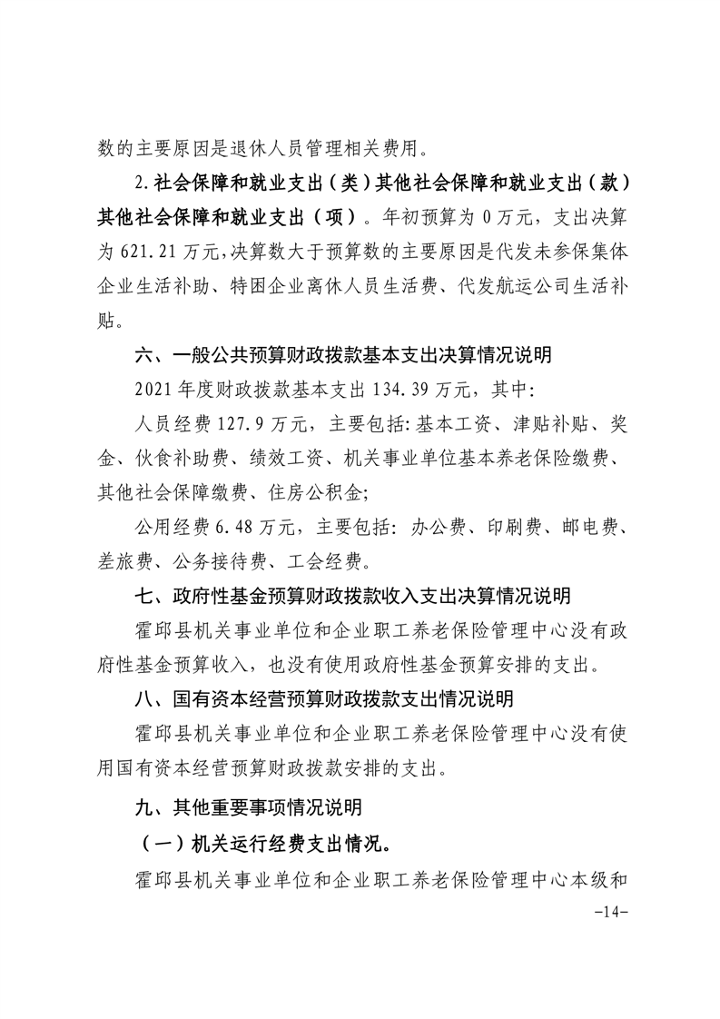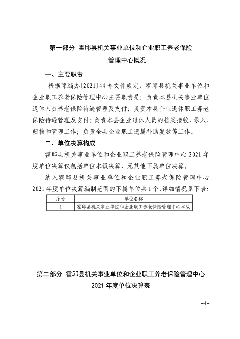 霍邱县机关事业单位和企业职工养老保险管理中心2021年度单位决算