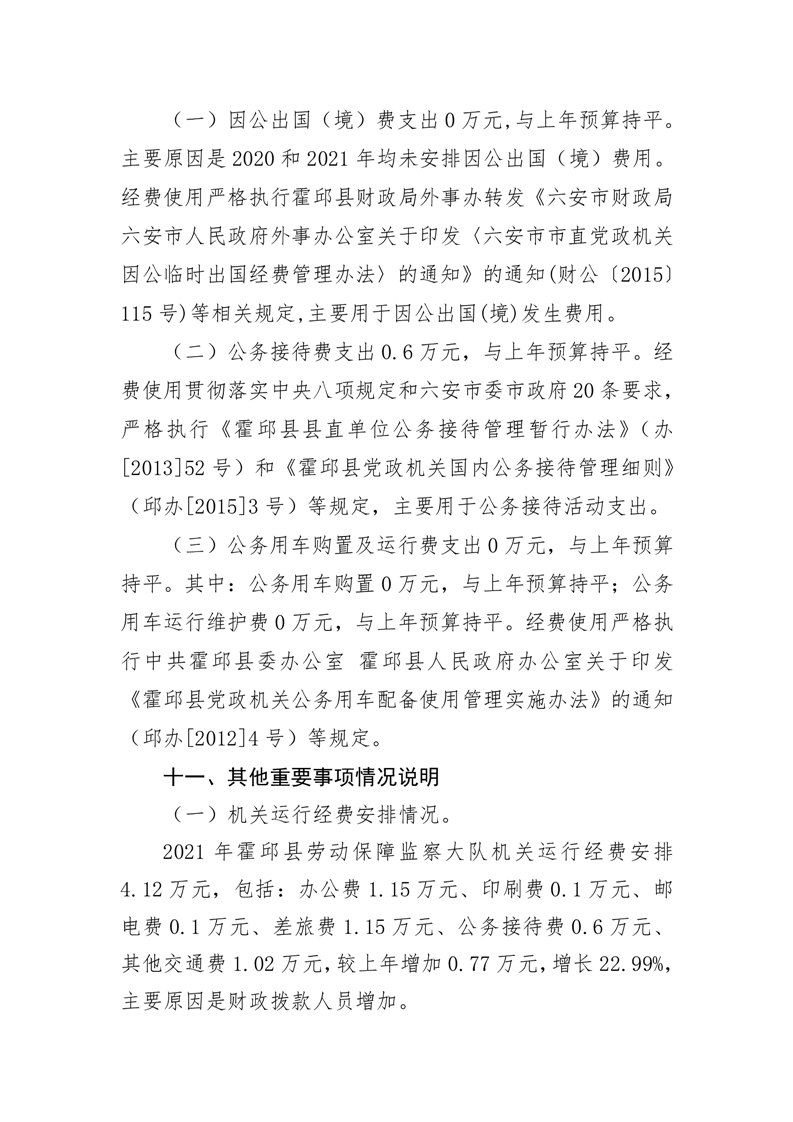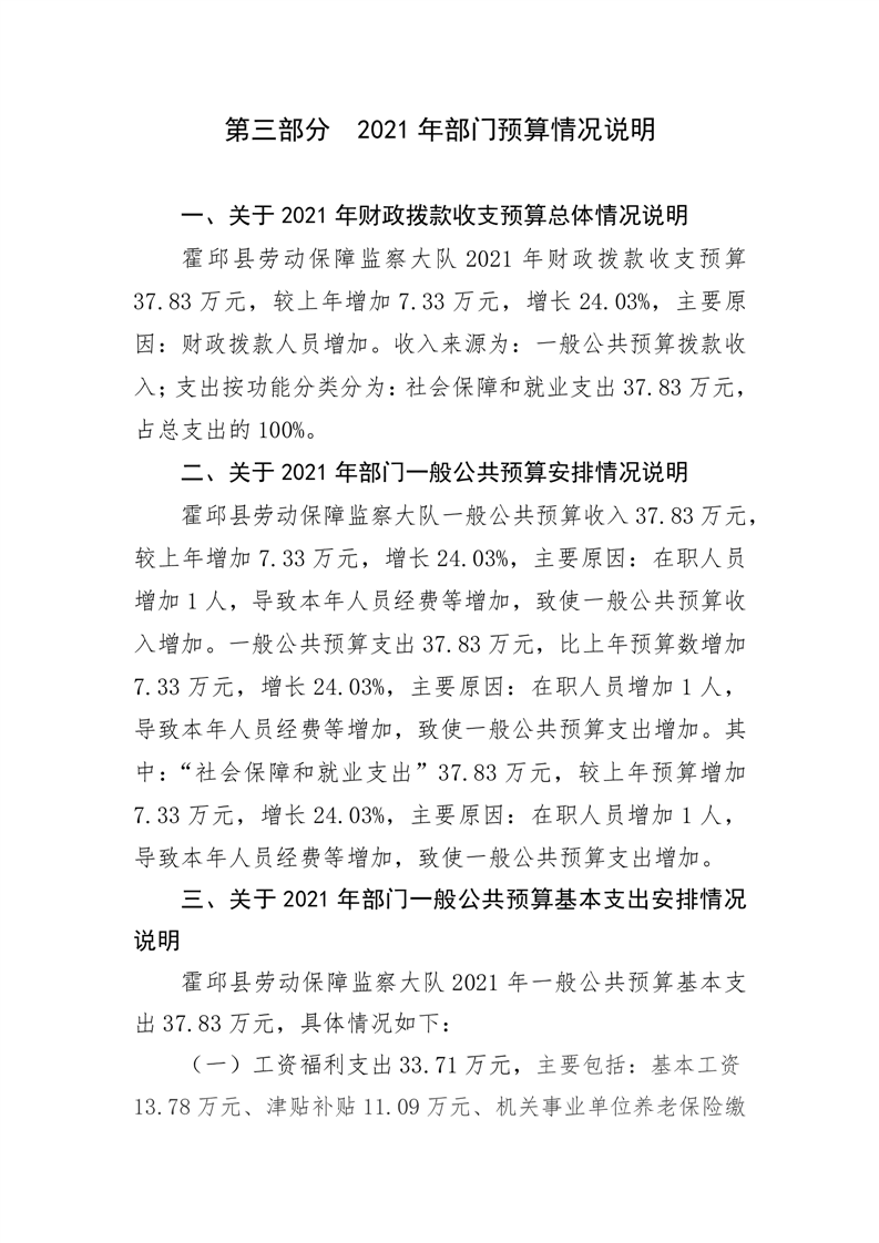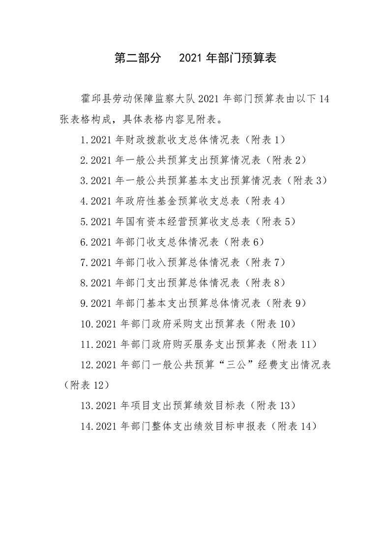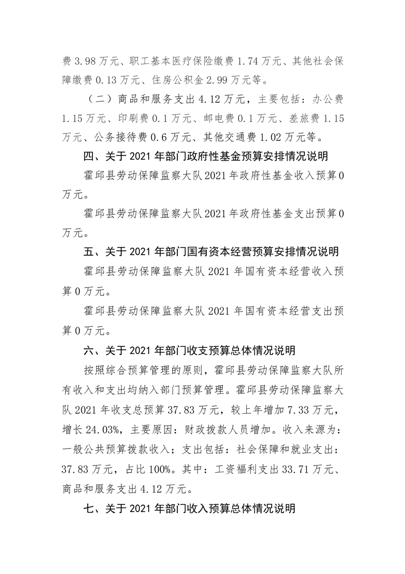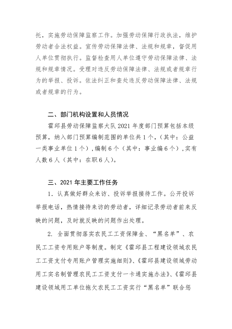 霍邱县劳动保障监察大队2021年部门预算公开