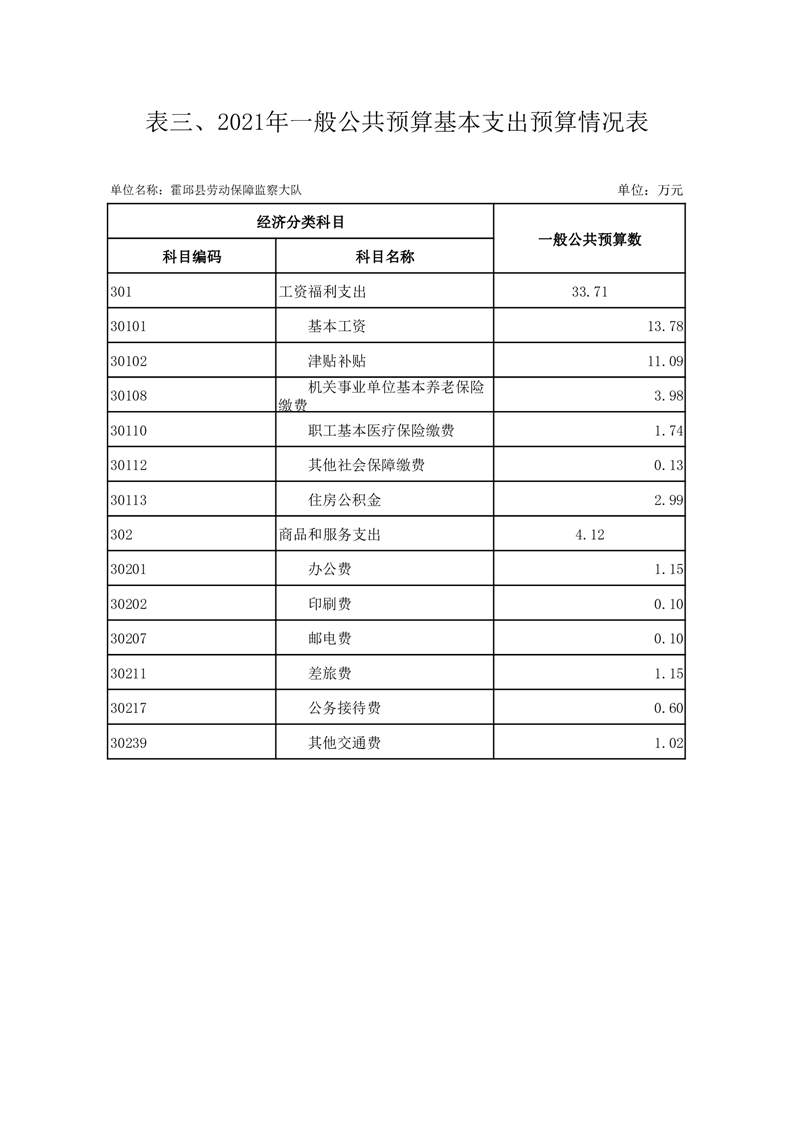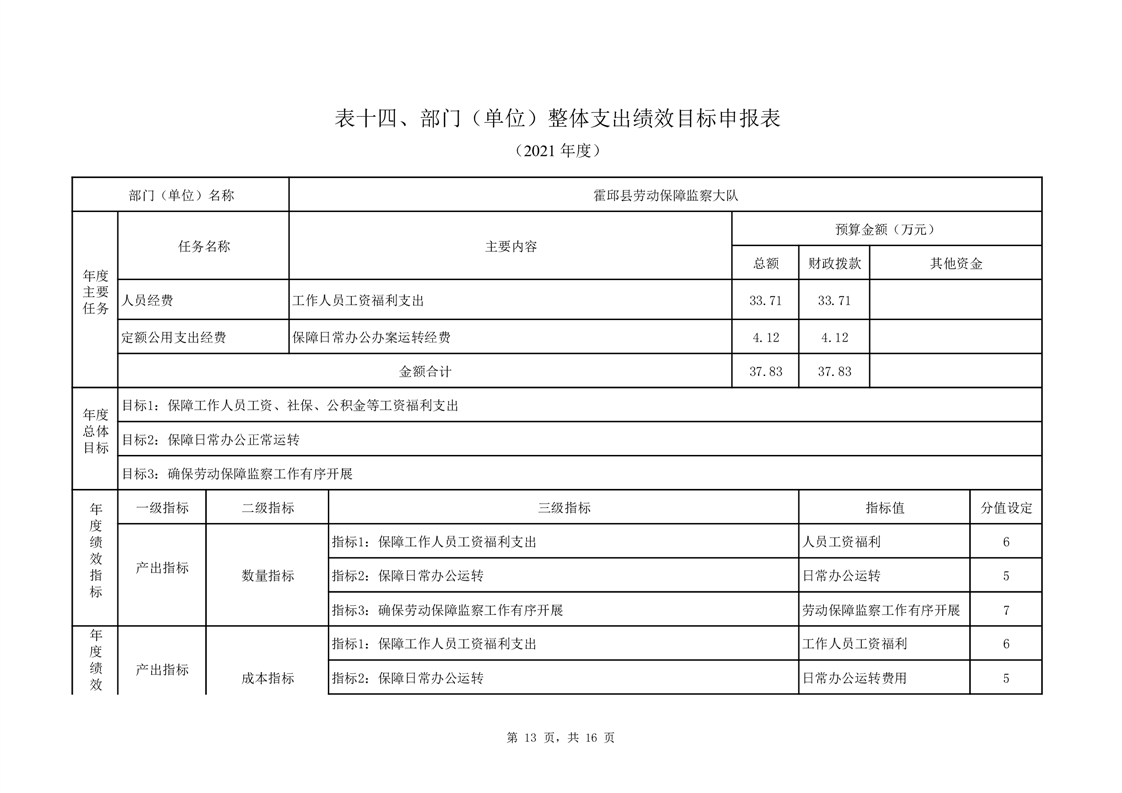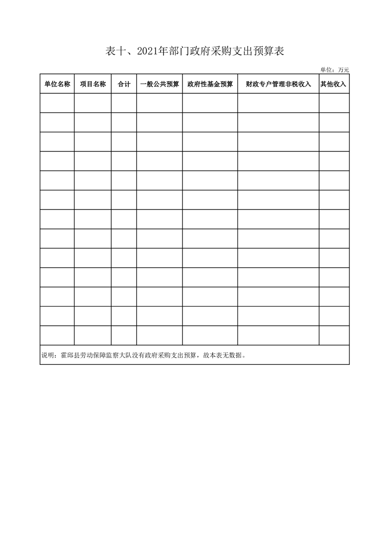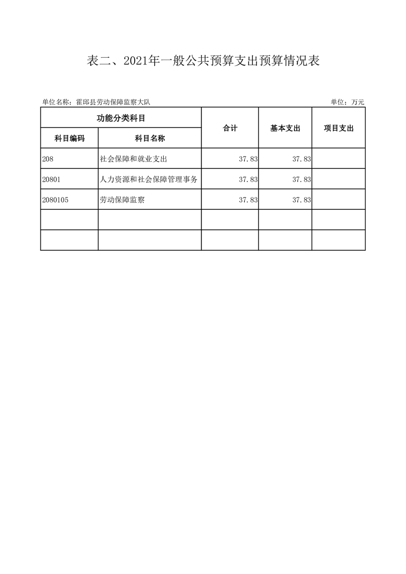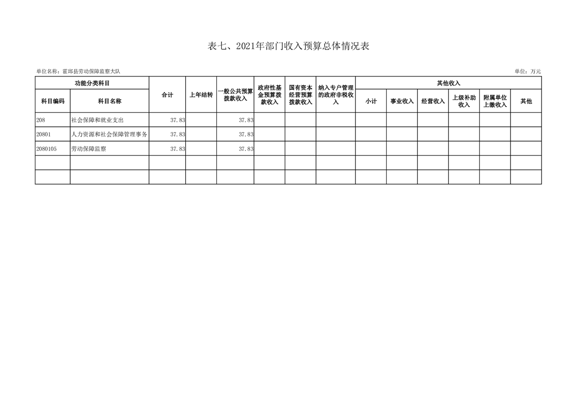 霍邱县劳动保障监察大队2021年部门预算公开
