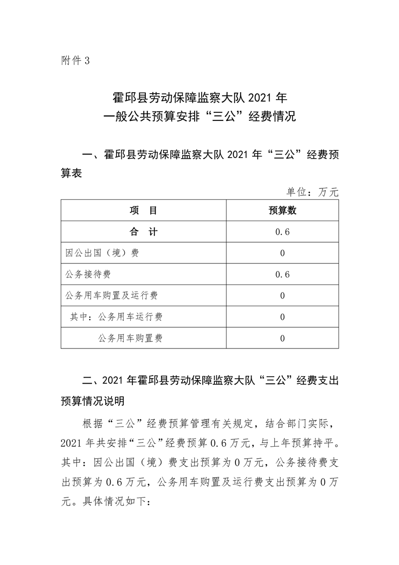 霍邱县劳动保障监察大队2021年一般公共预算安排“三公”经费情况