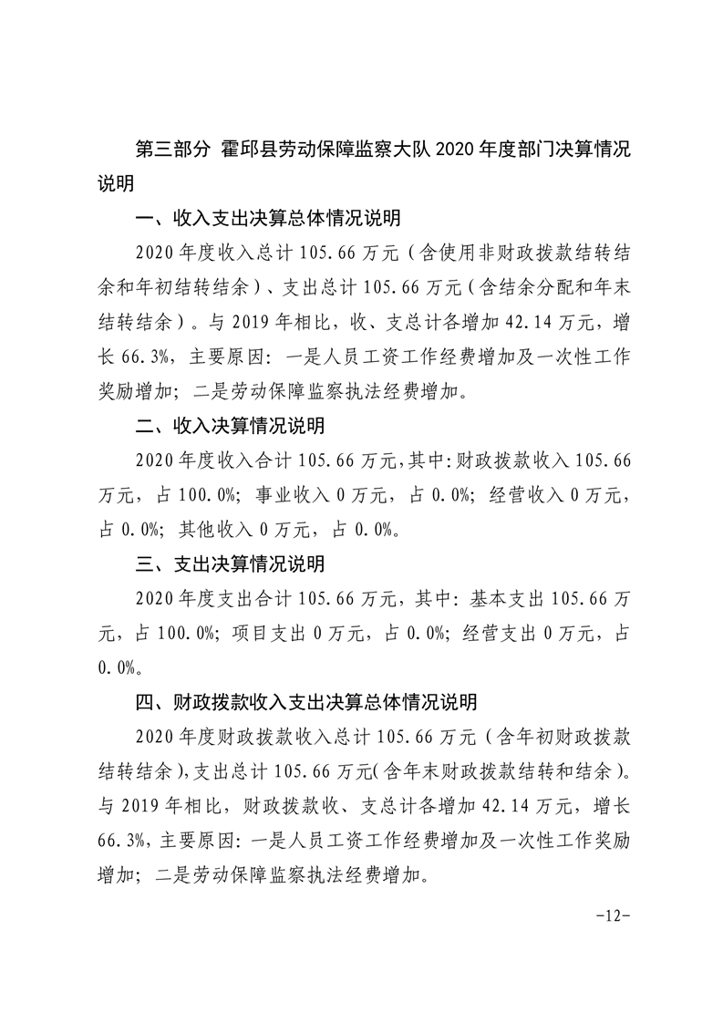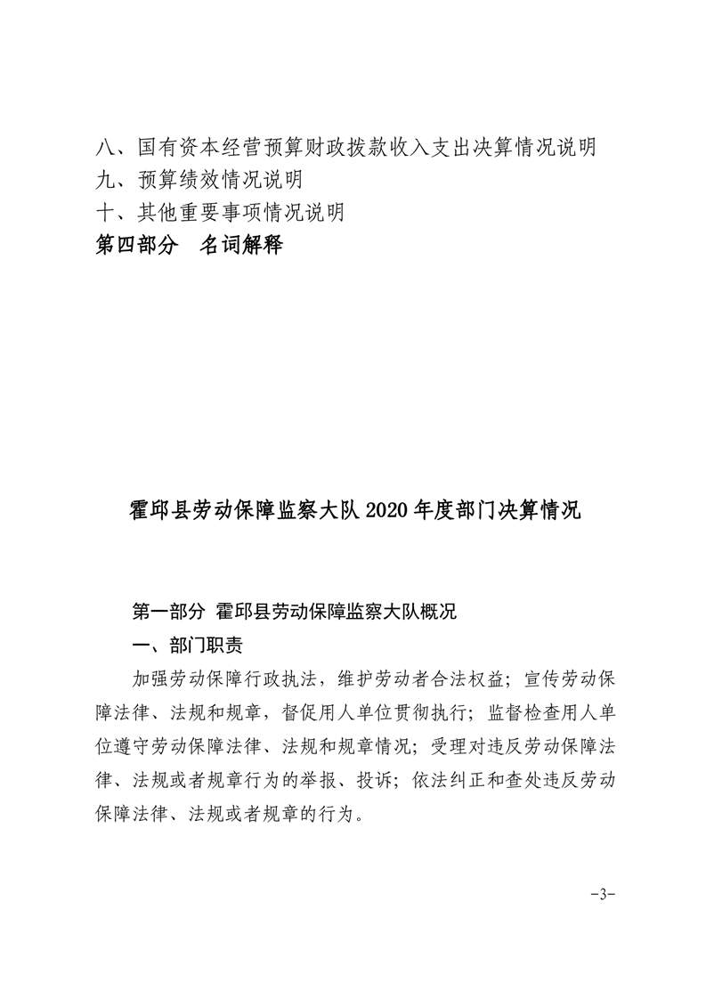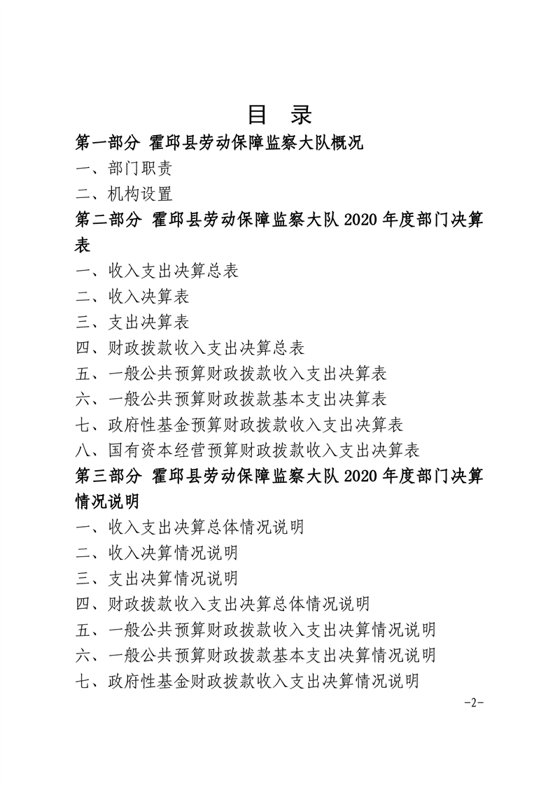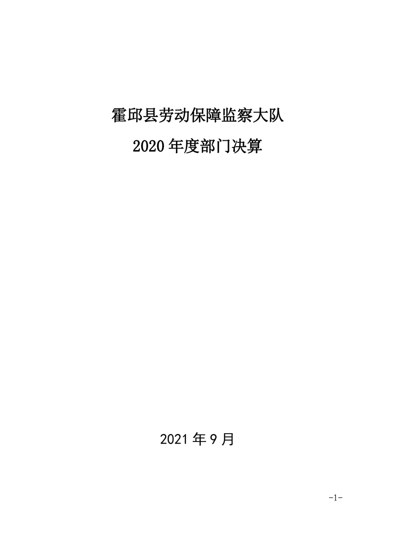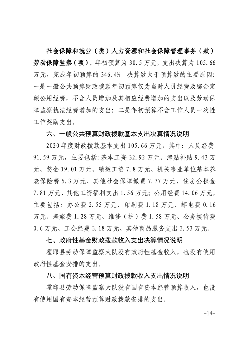 霍邱县劳动保障监察大队 2020 年度部门决算