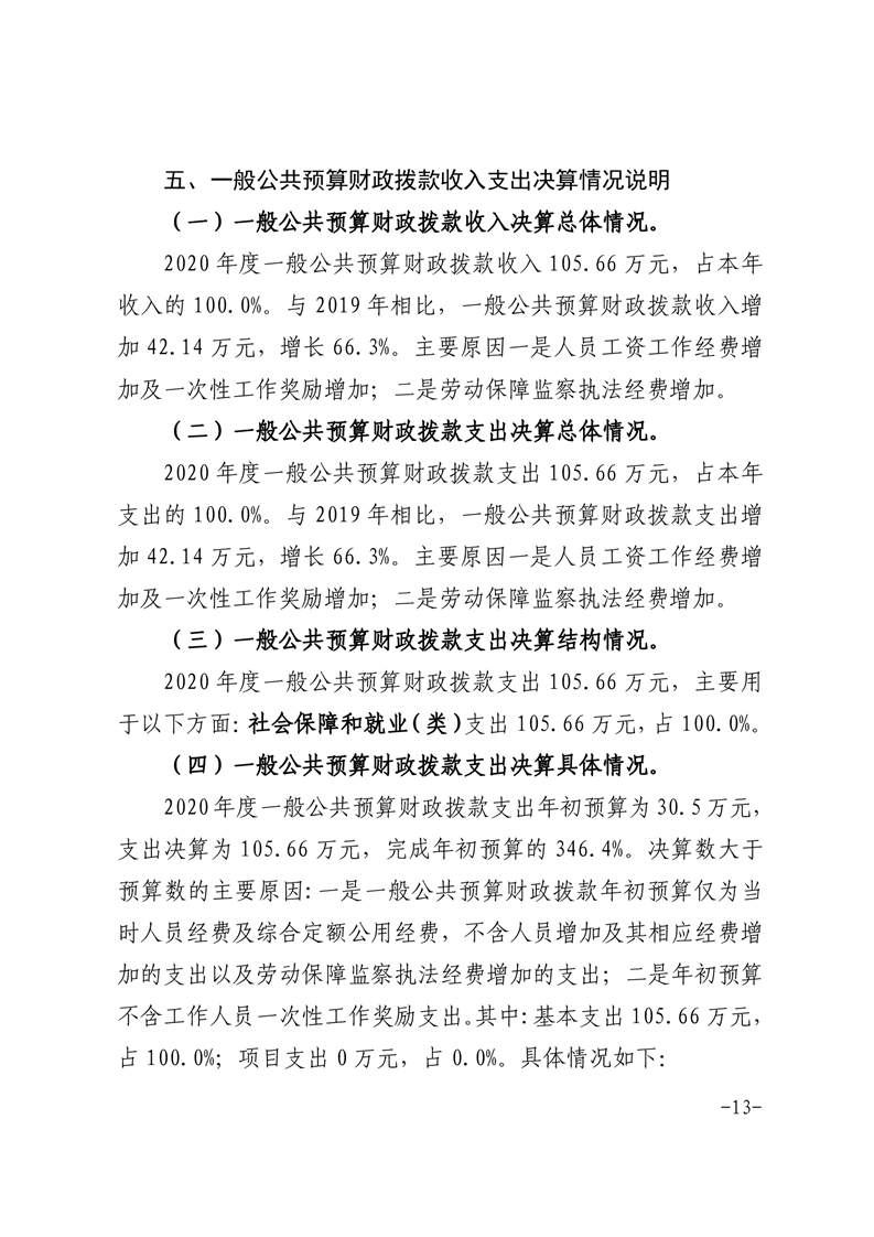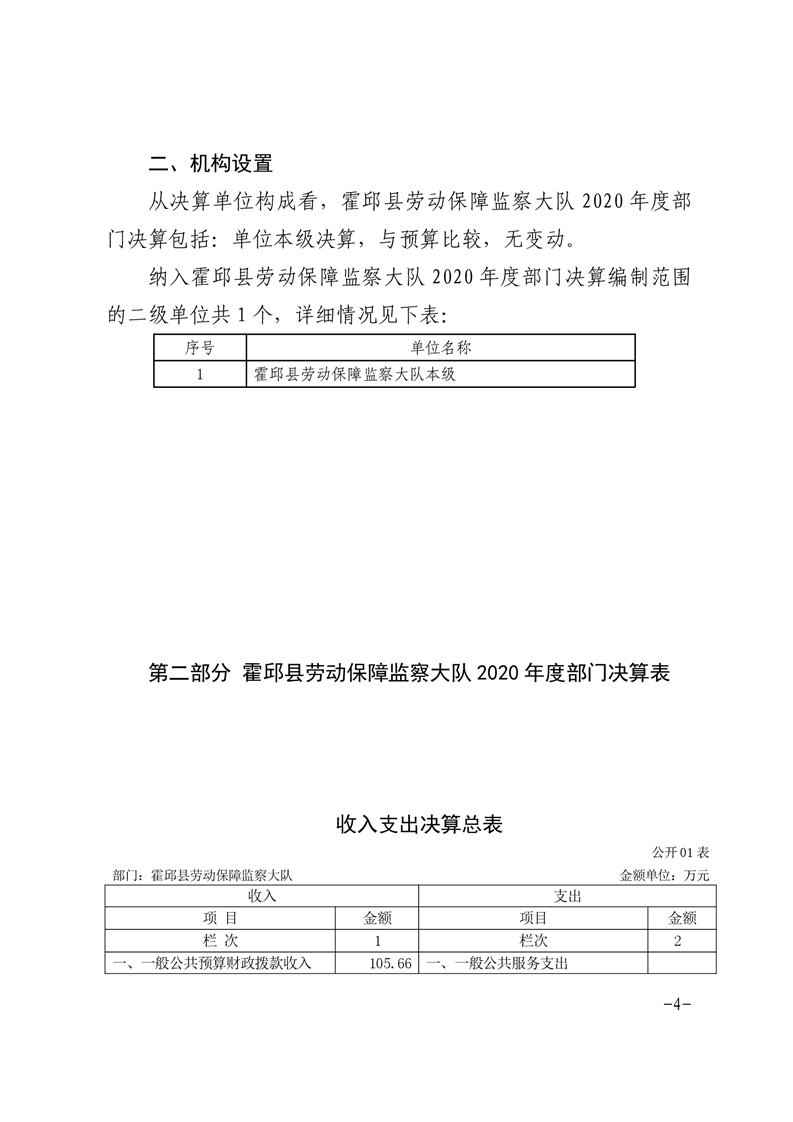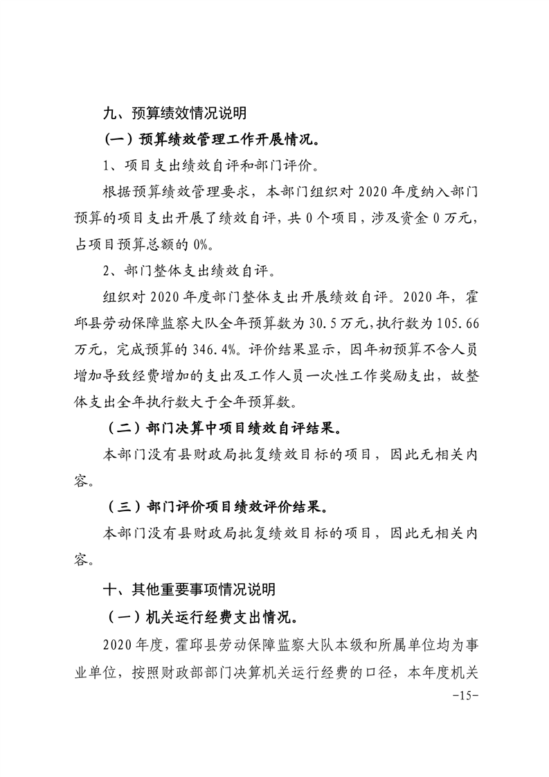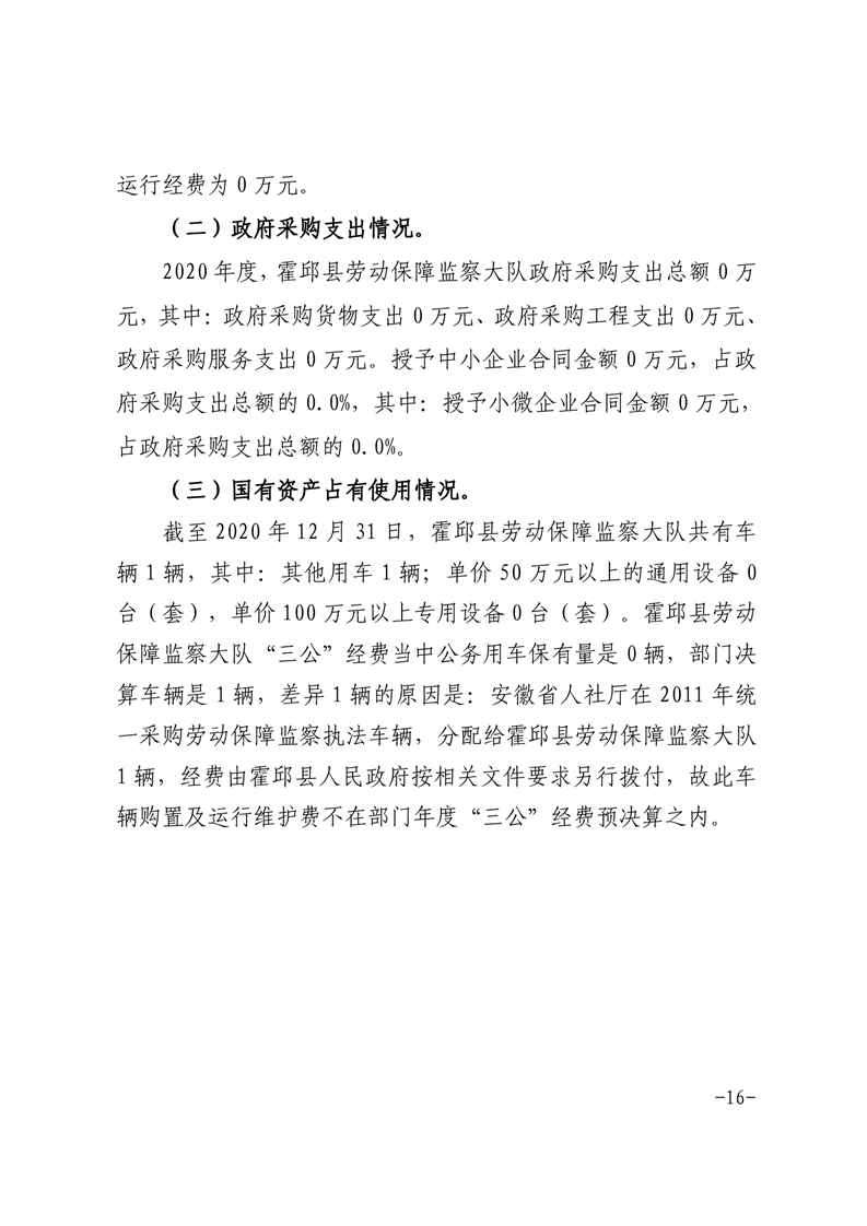 霍邱县劳动保障监察大队 2020 年度部门决算