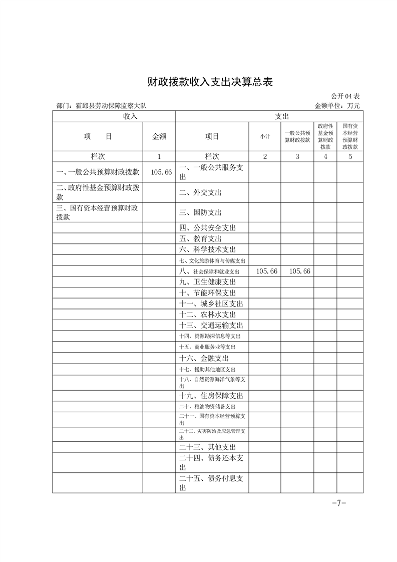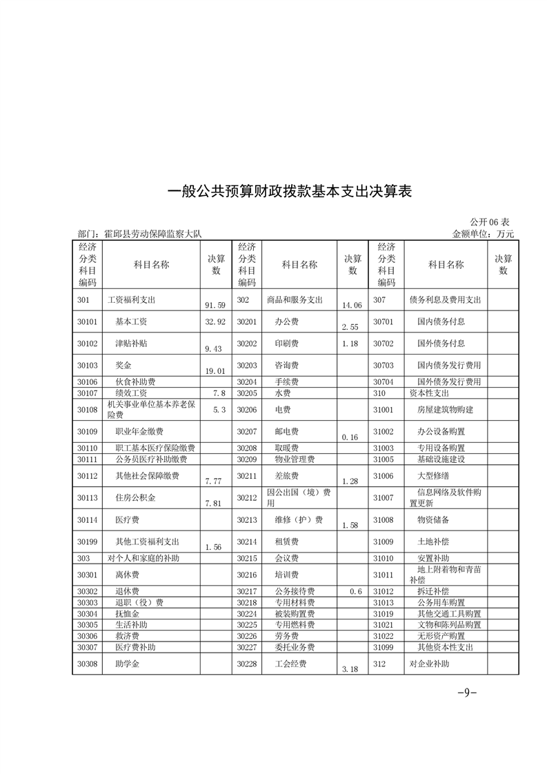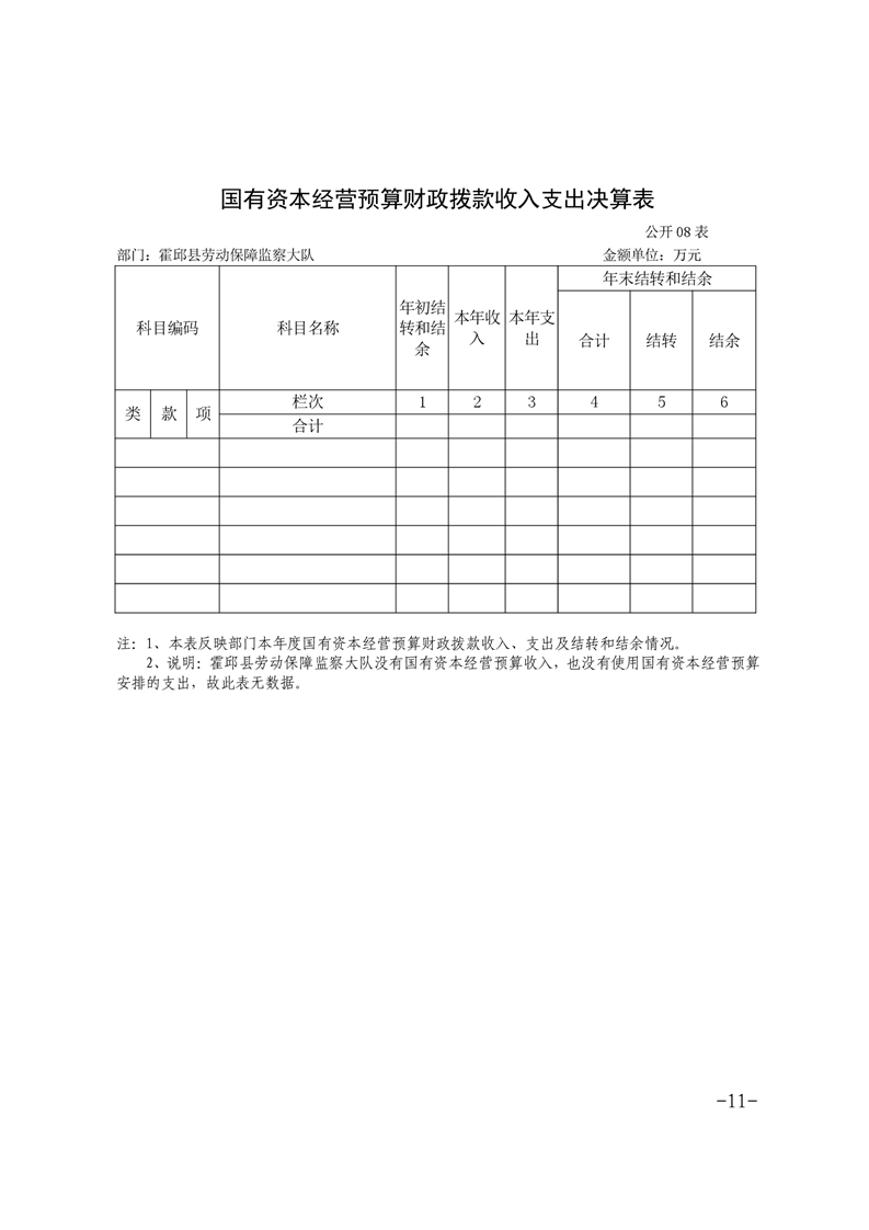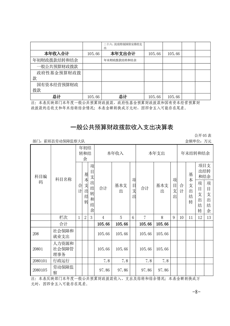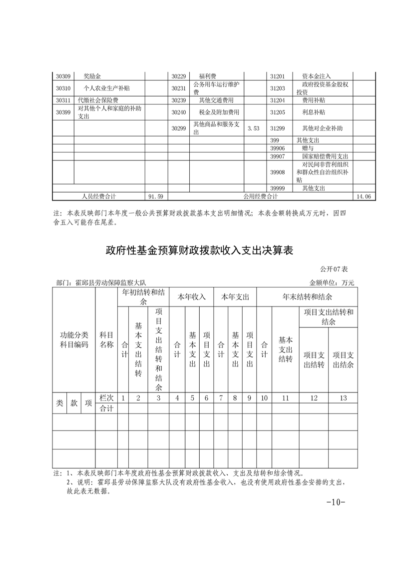 霍邱县劳动保障监察大队 2020 年度部门决算