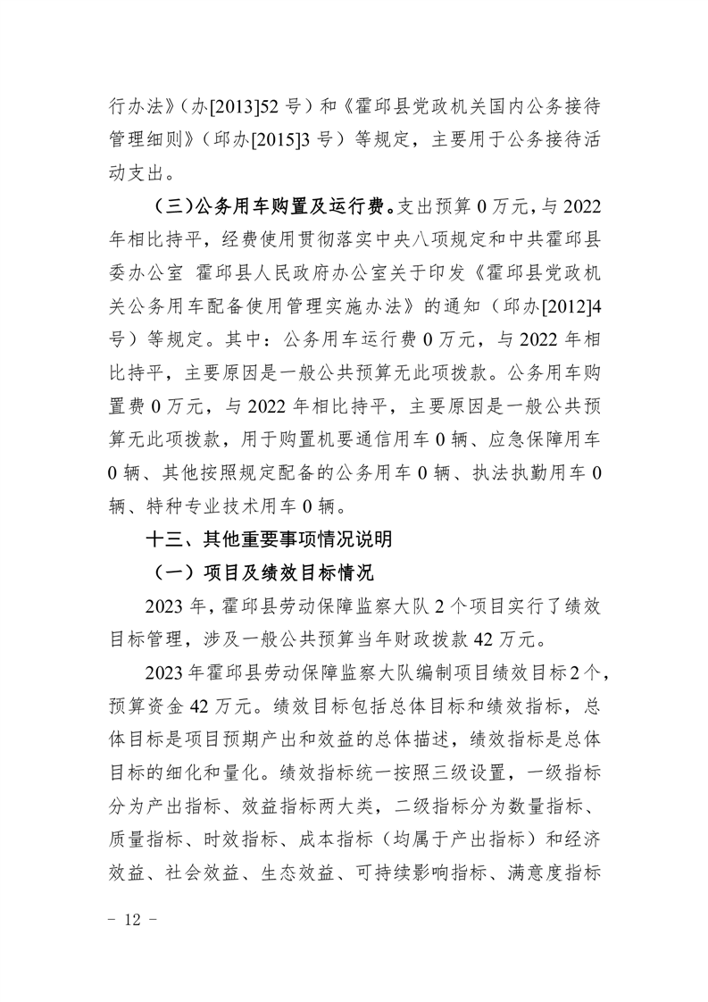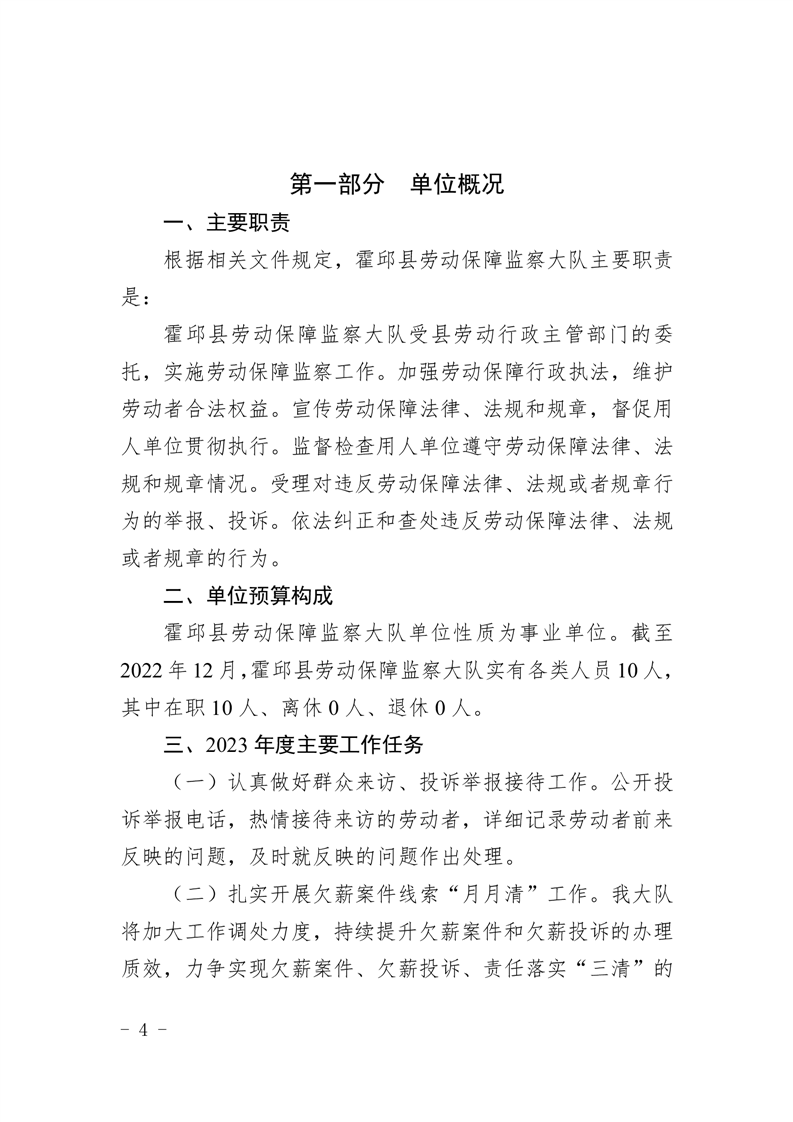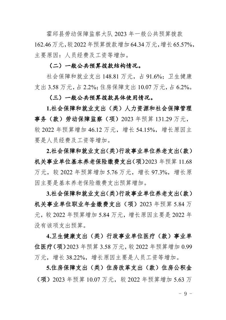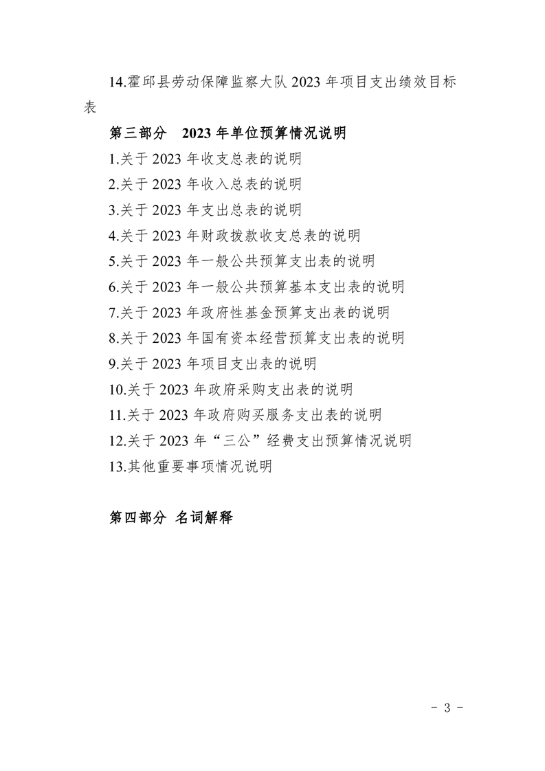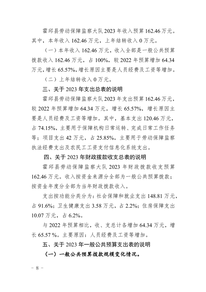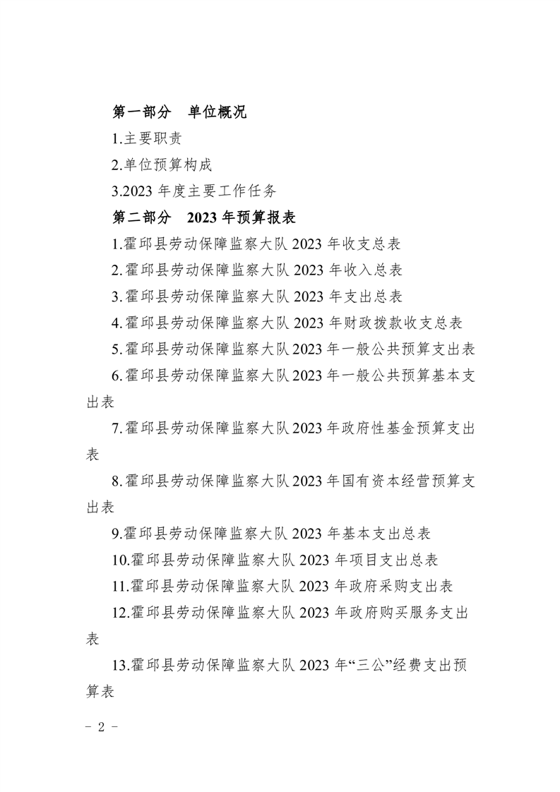 霍邱县劳动保障监察大队2023年单位预算公开