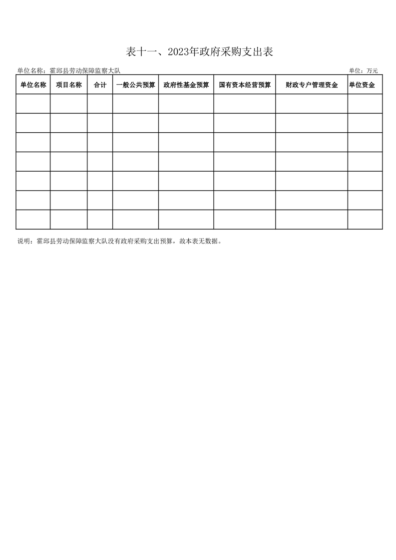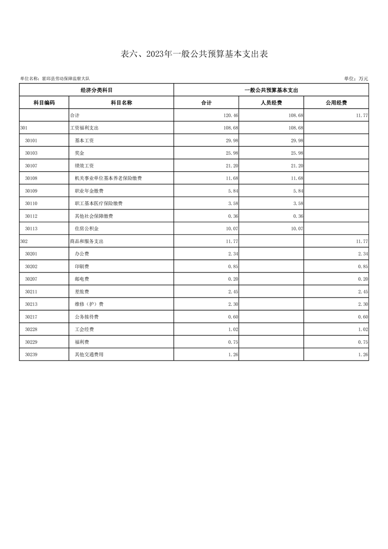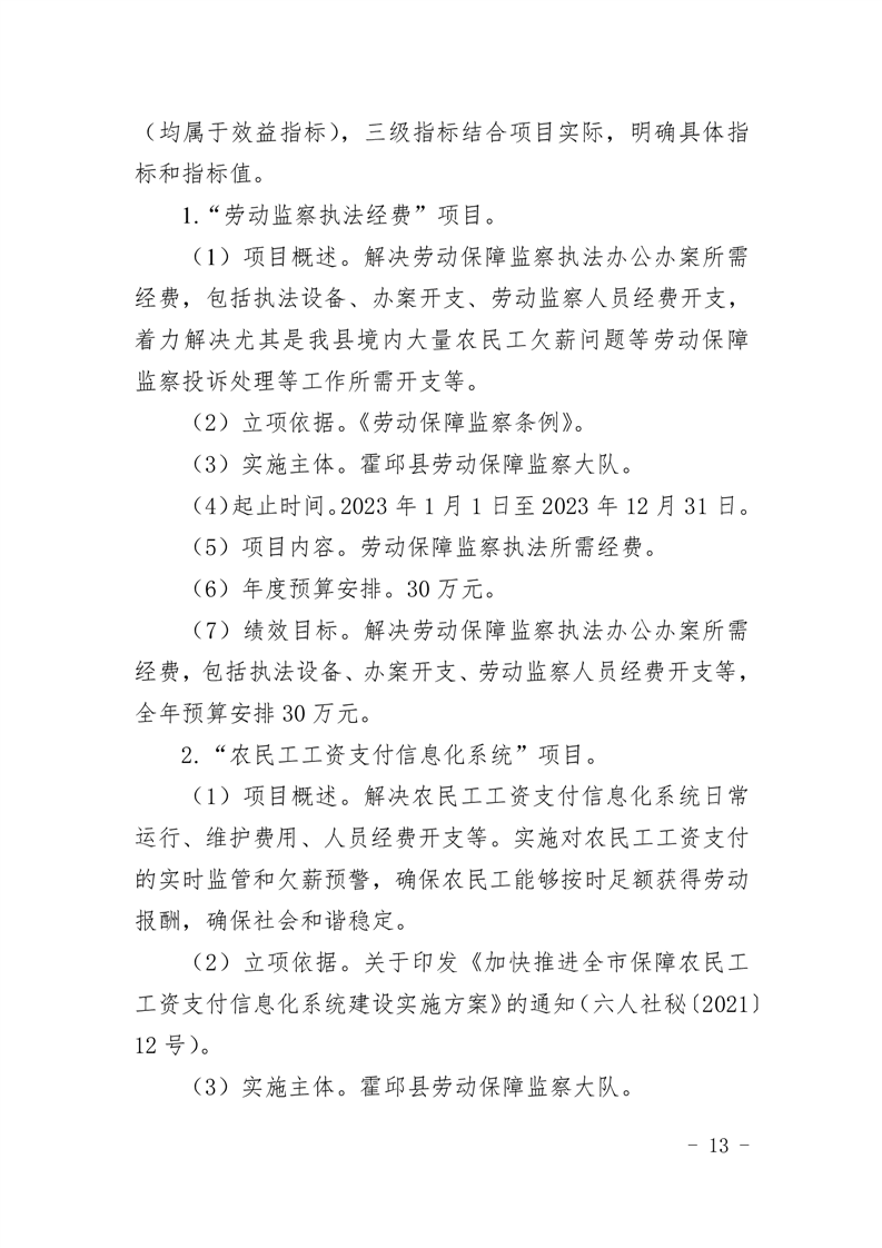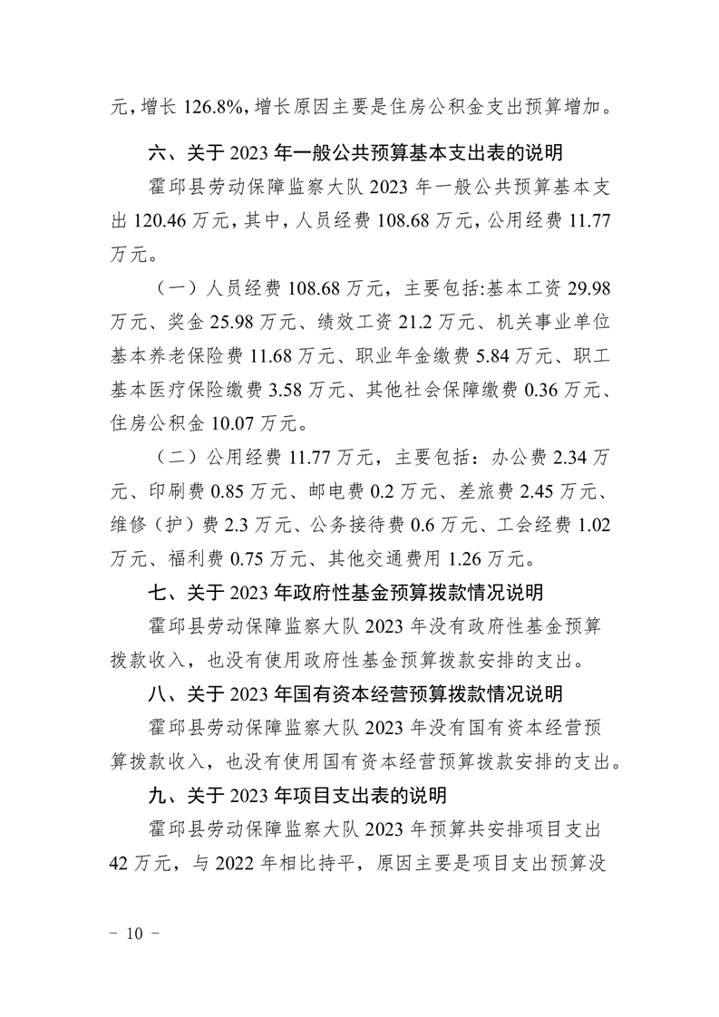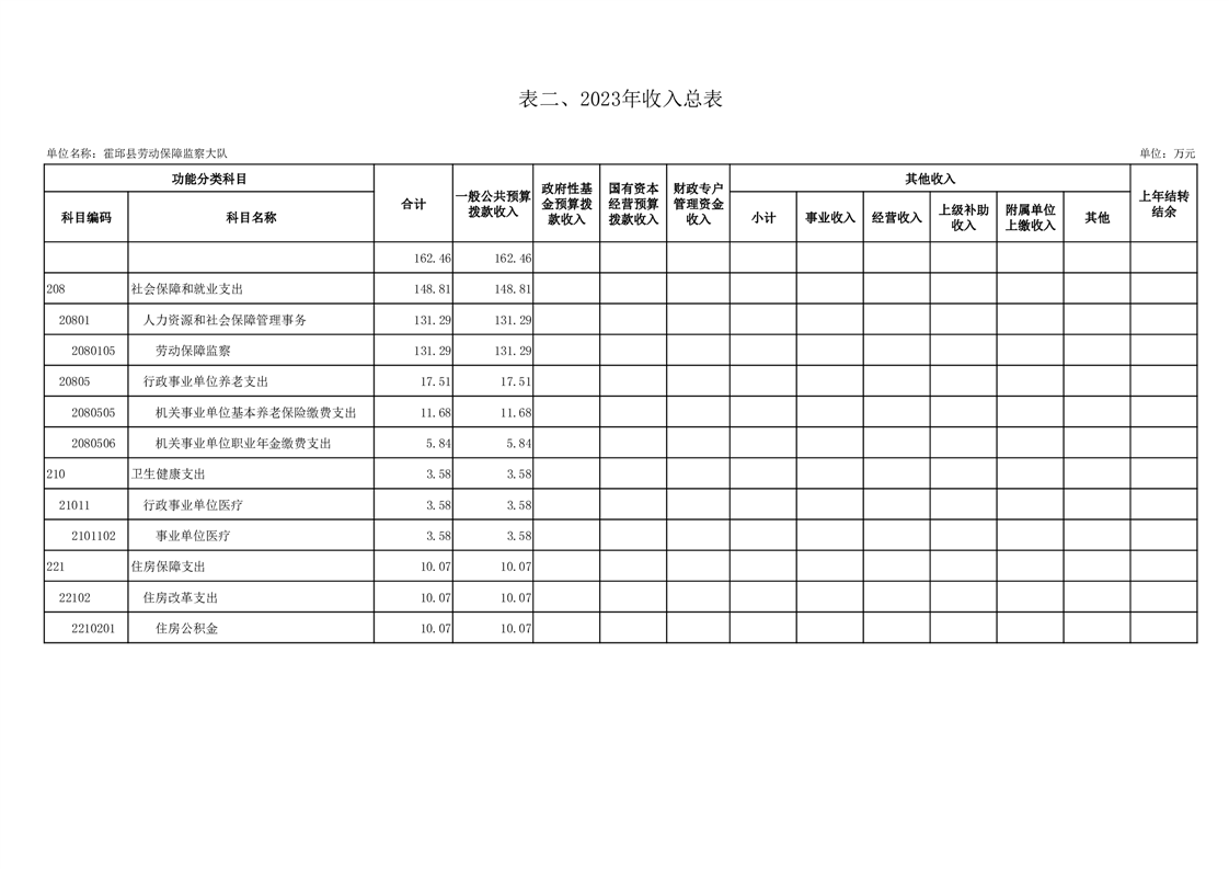 霍邱县劳动保障监察大队2023年单位预算公开