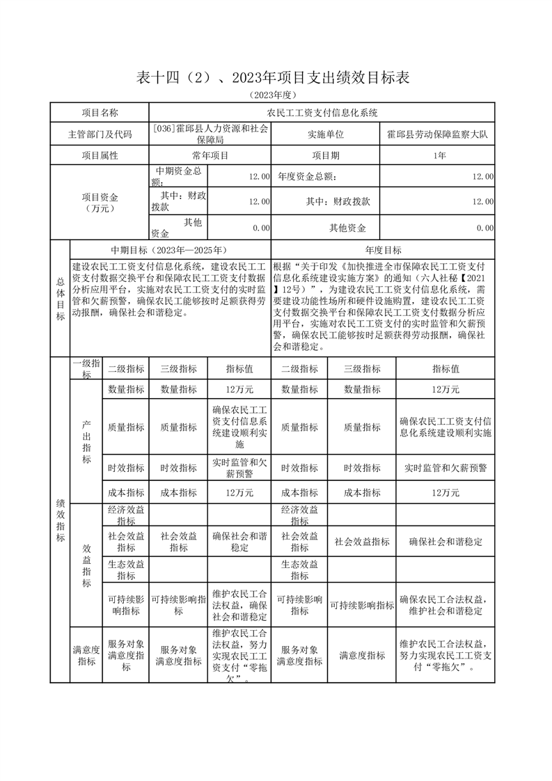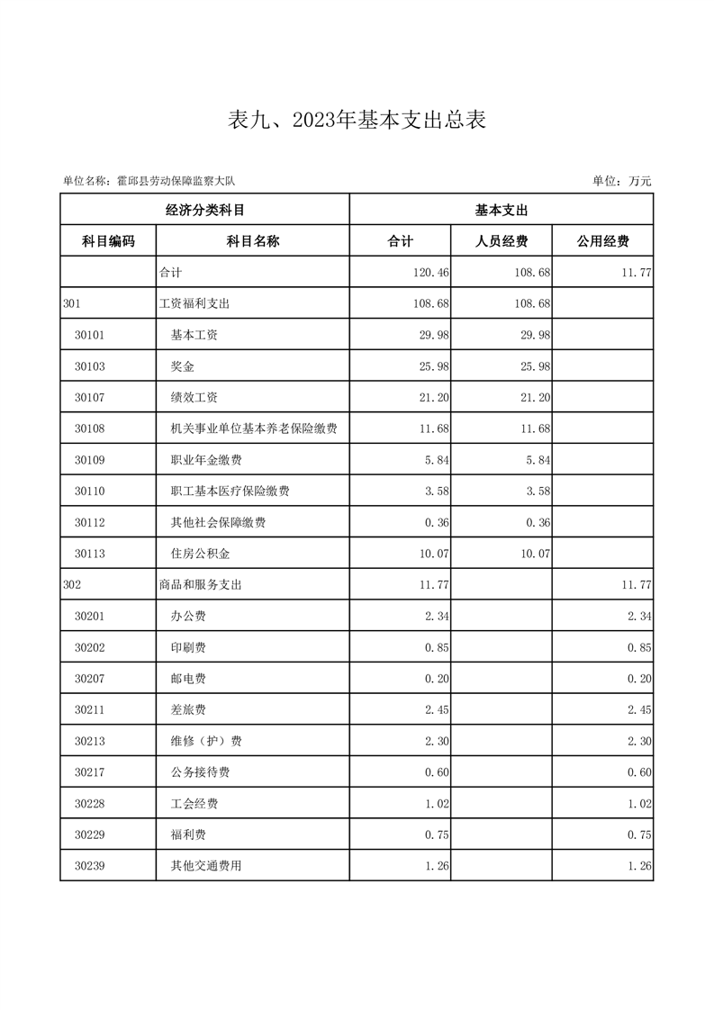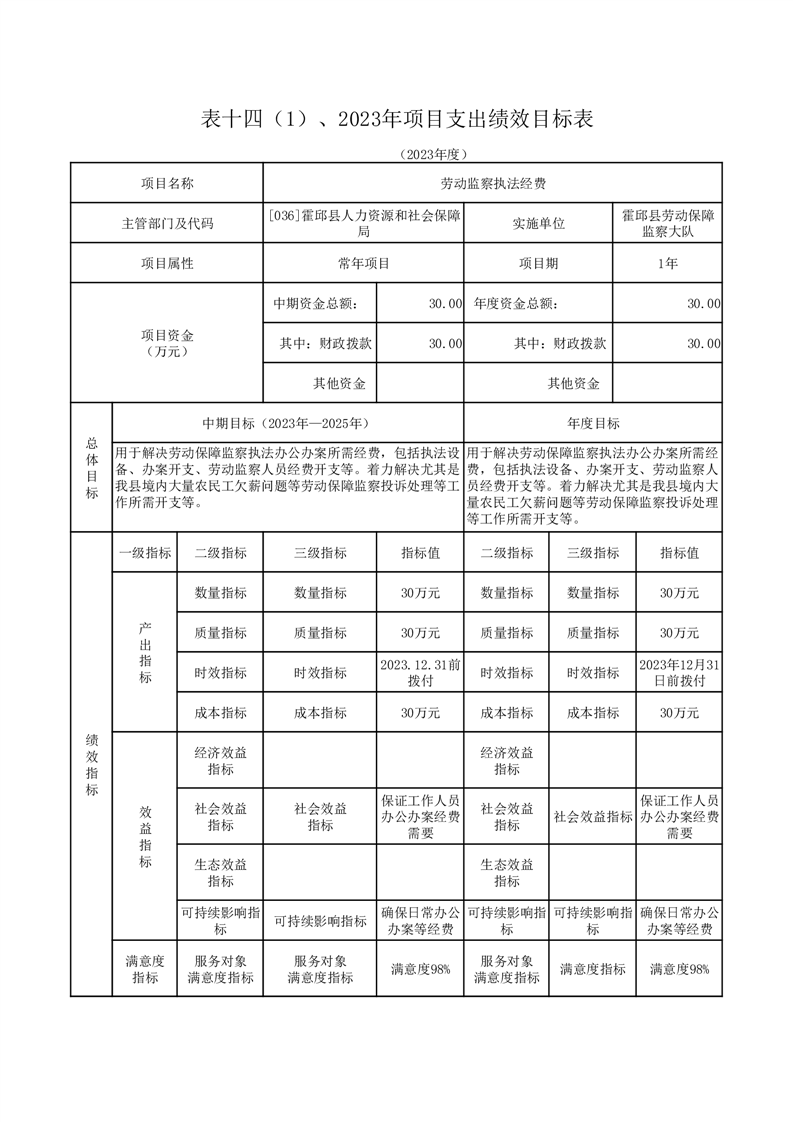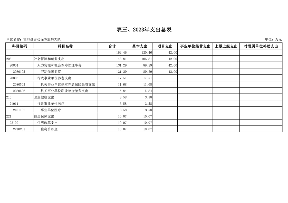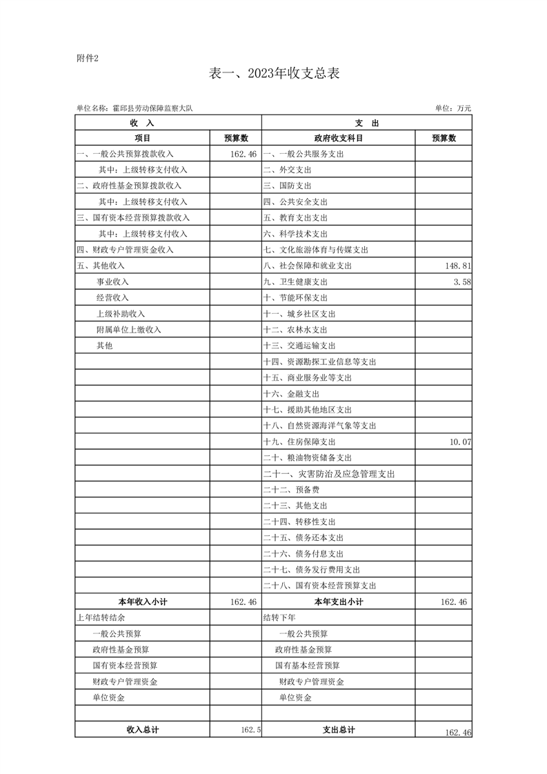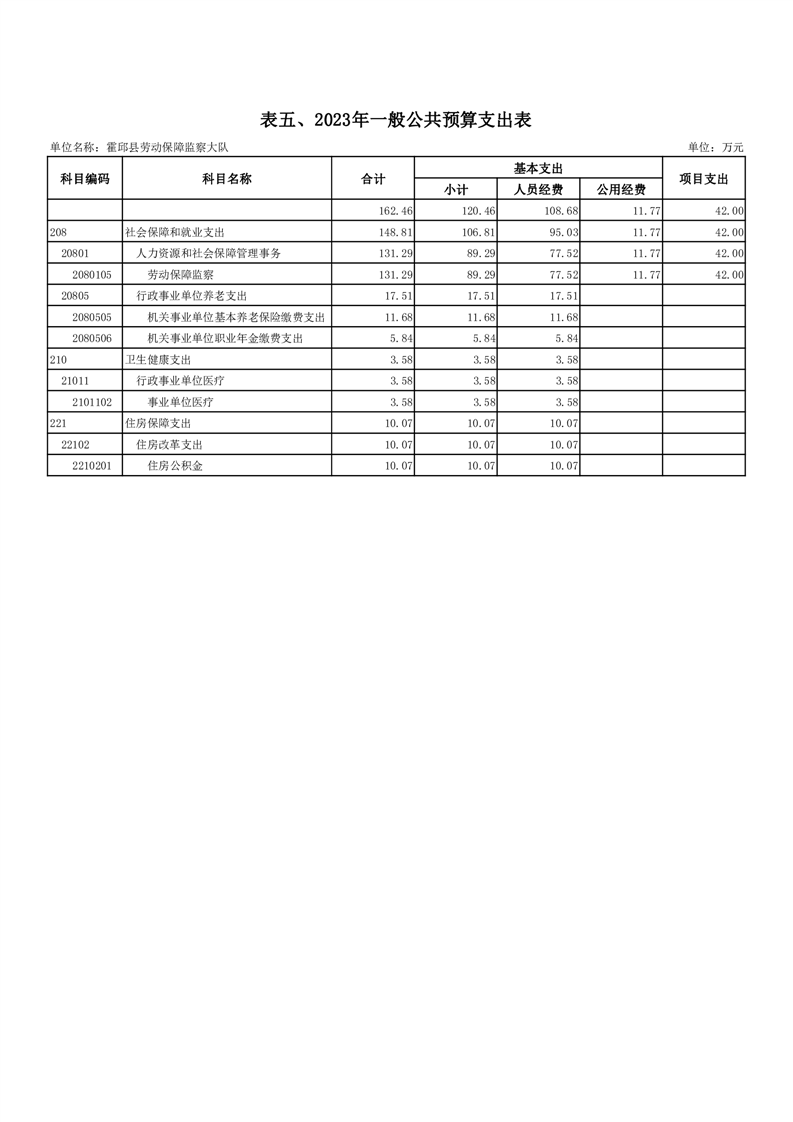 霍邱县劳动保障监察大队2023年单位预算公开