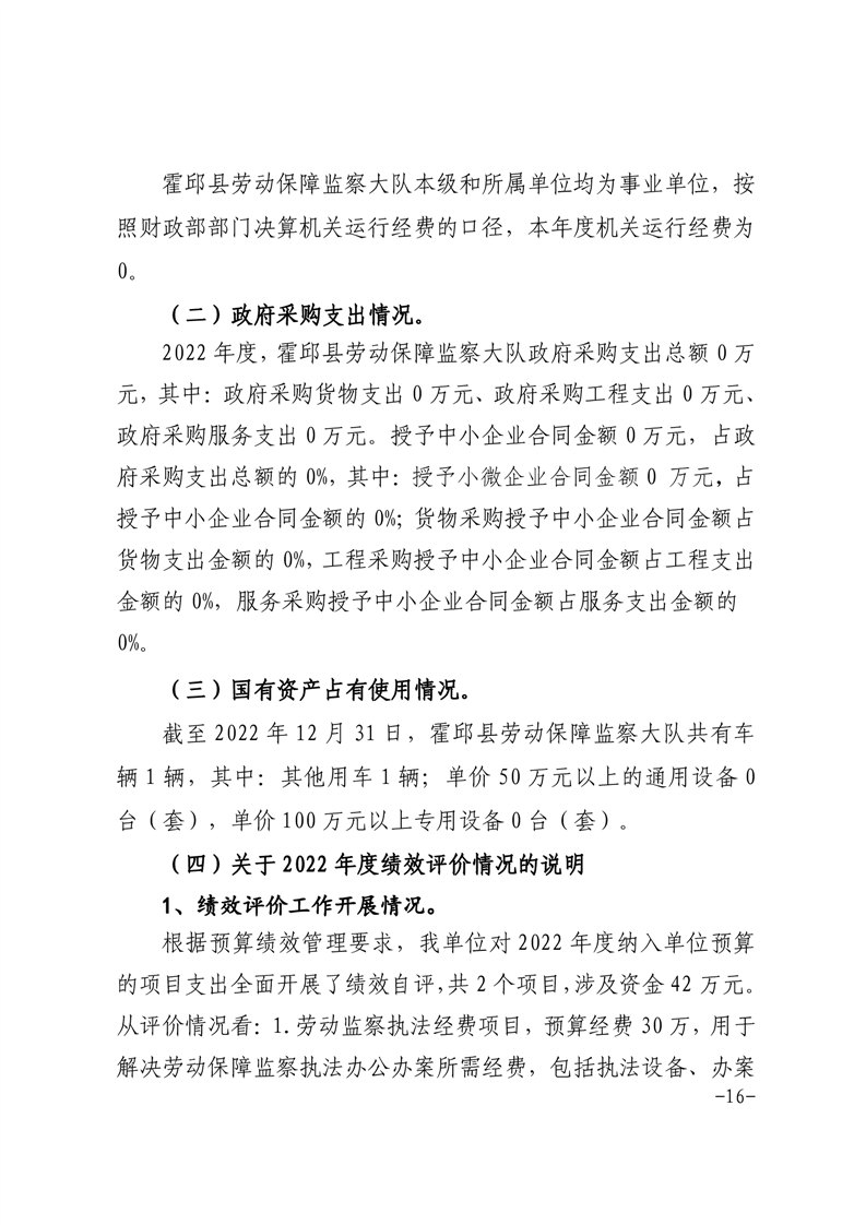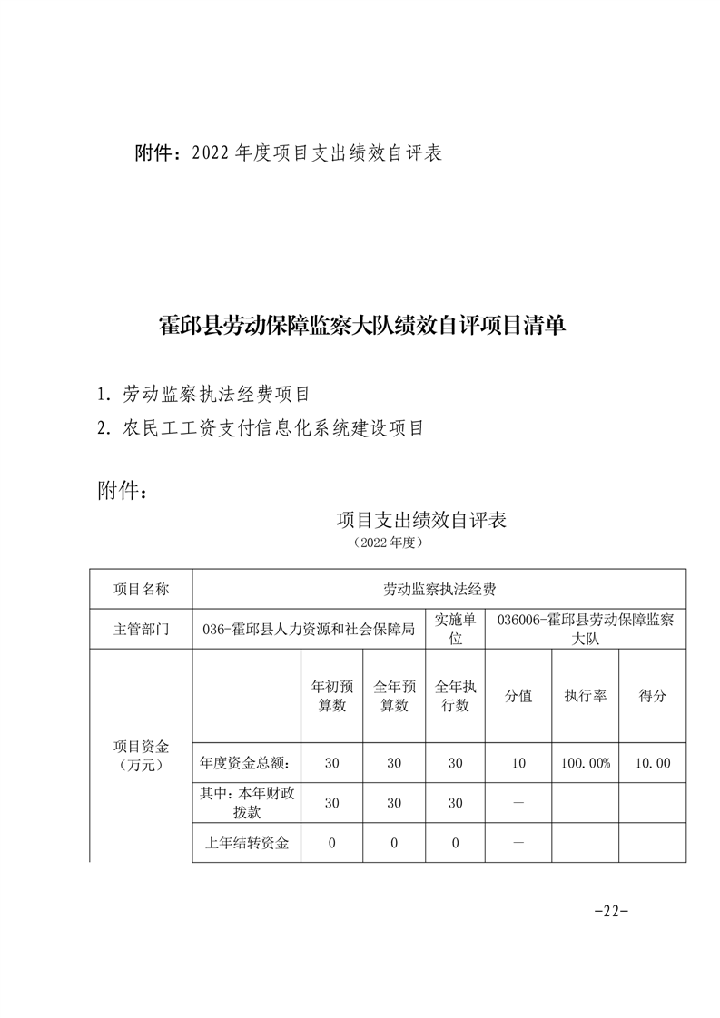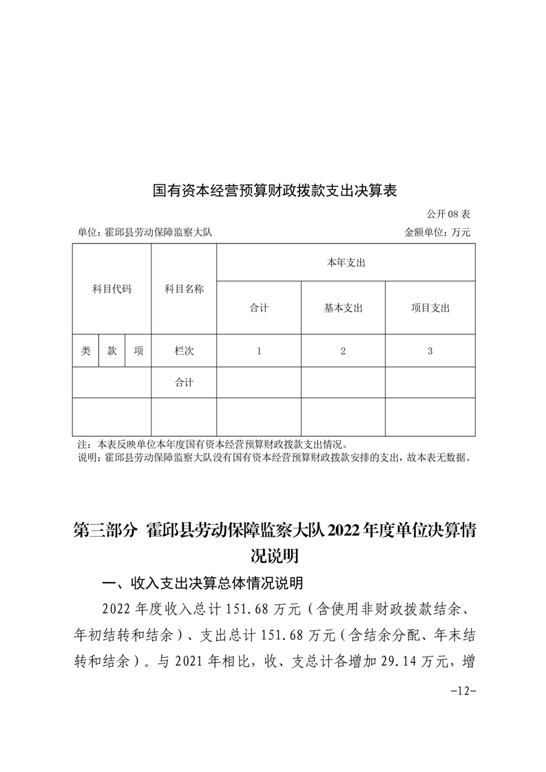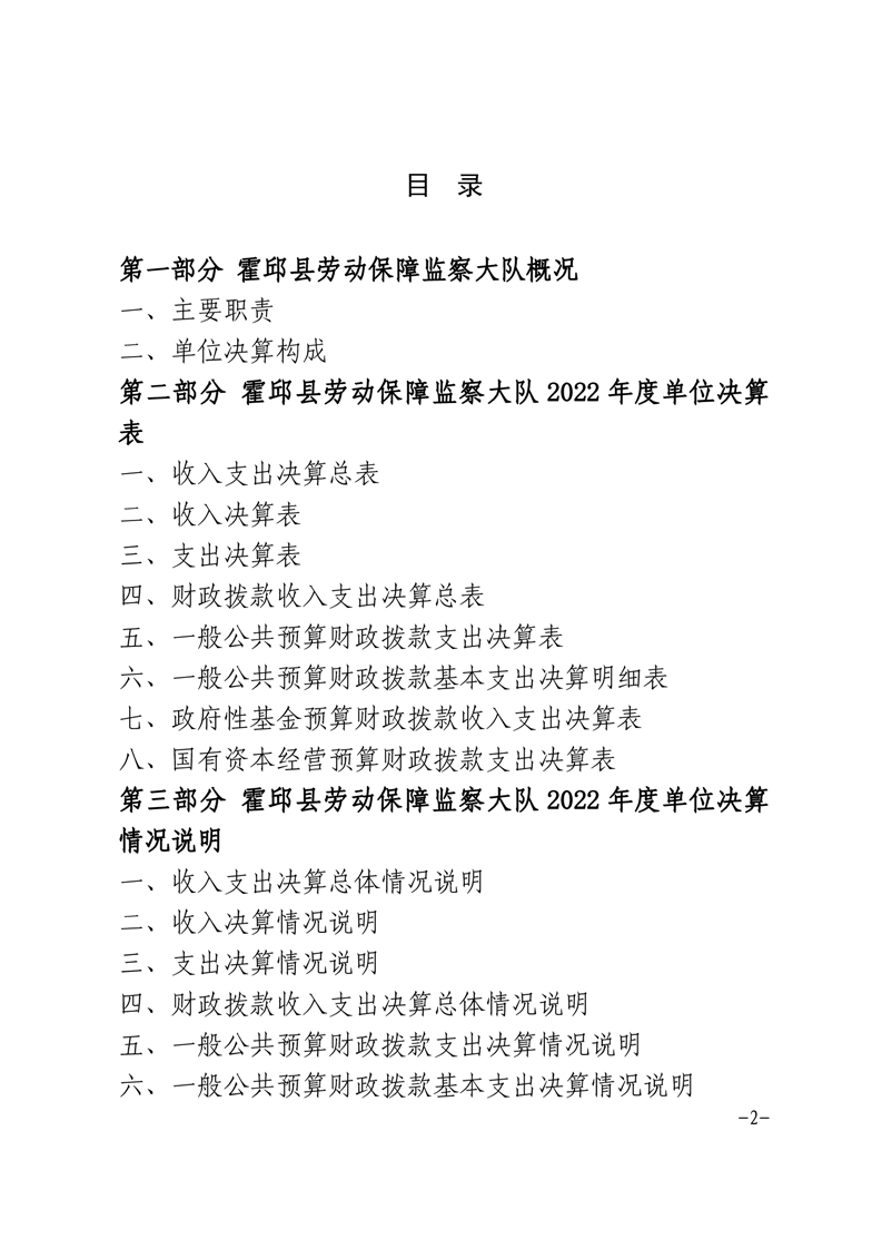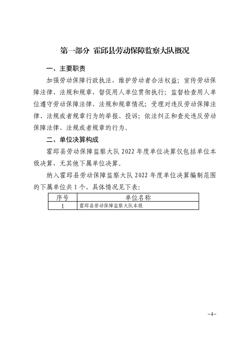 霍邱县劳动保障监察大队2022 年度单位决算公开