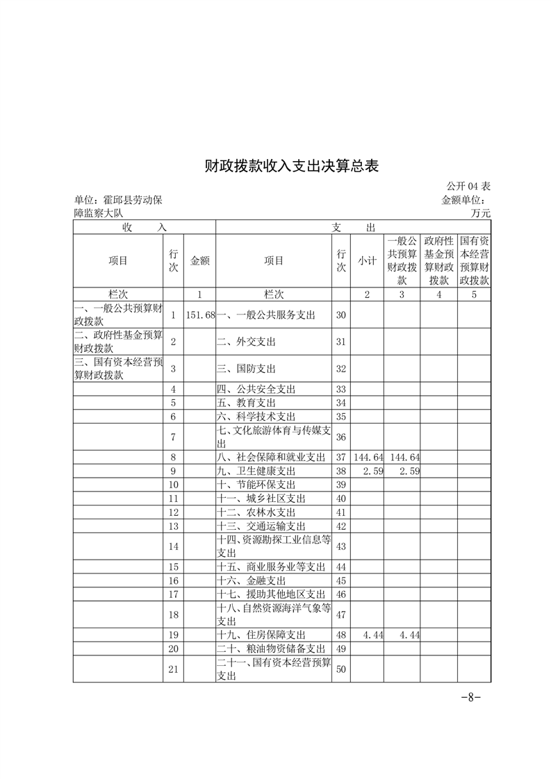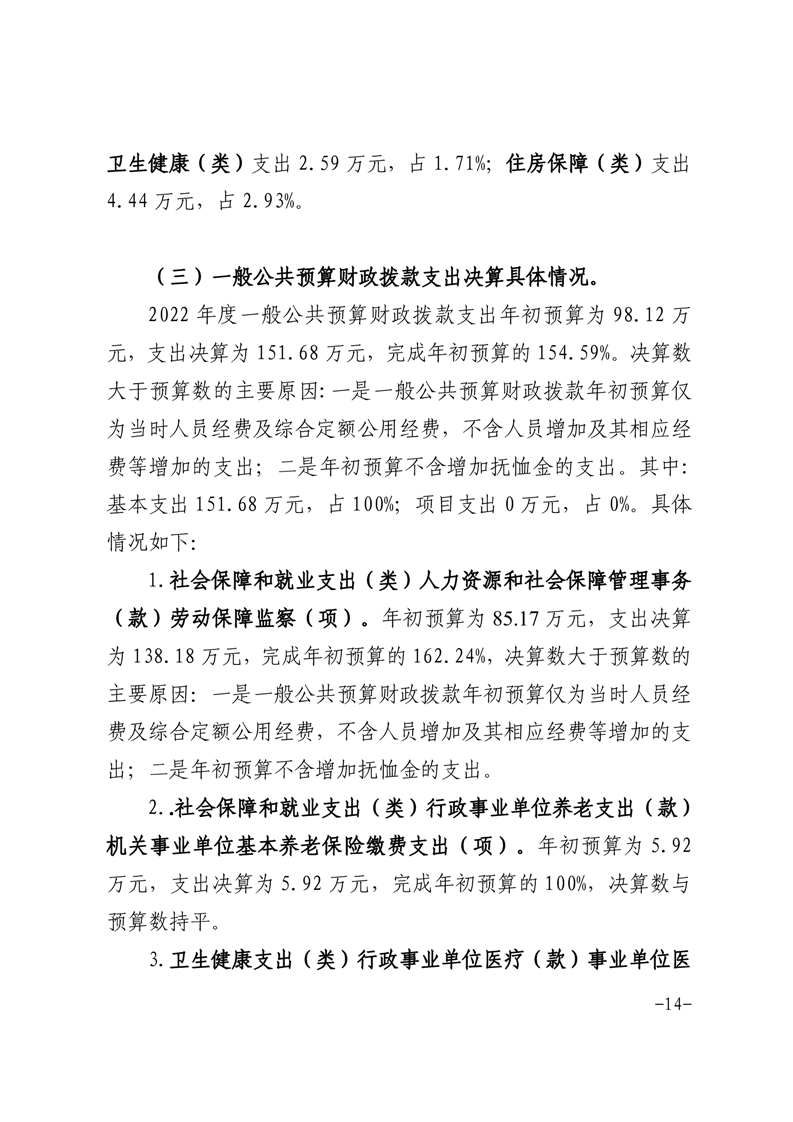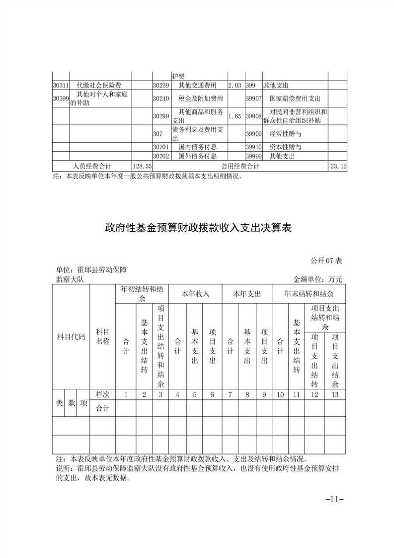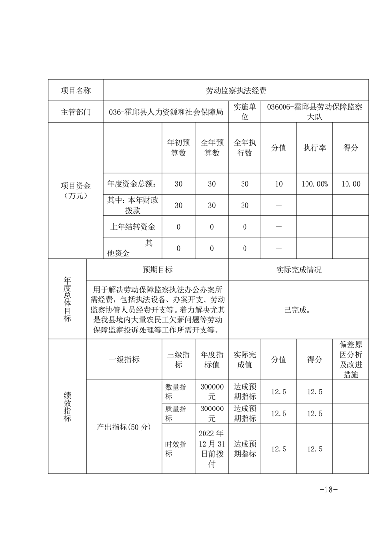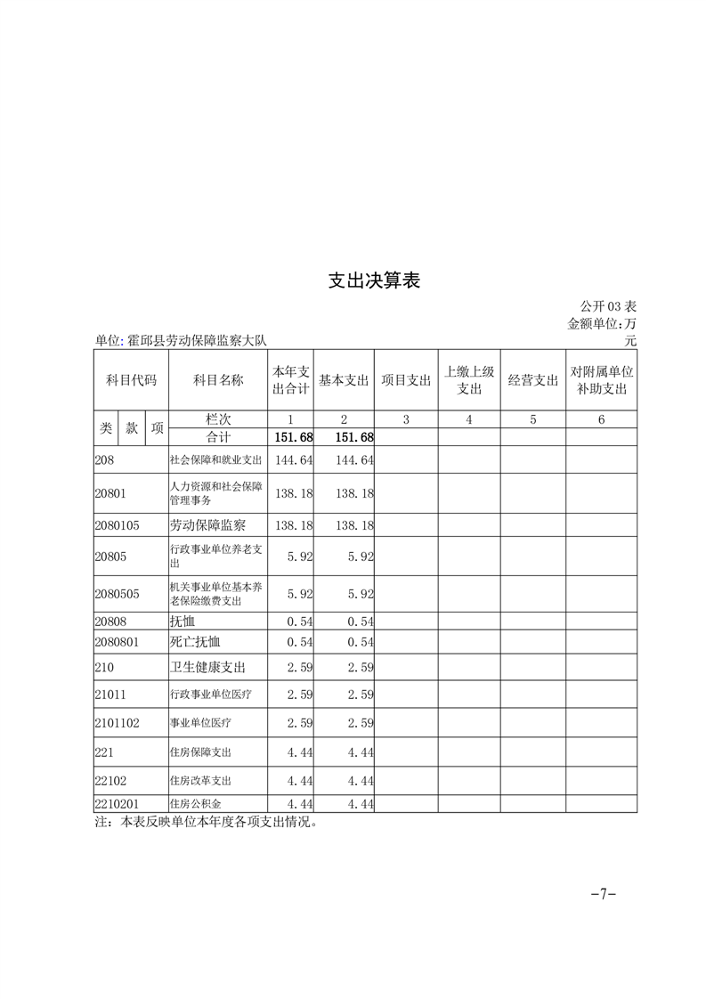 霍邱县劳动保障监察大队2022 年度单位决算公开