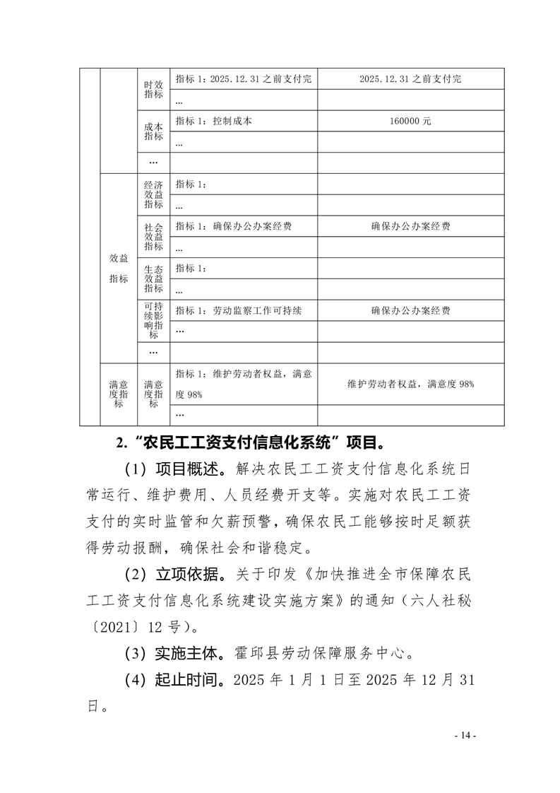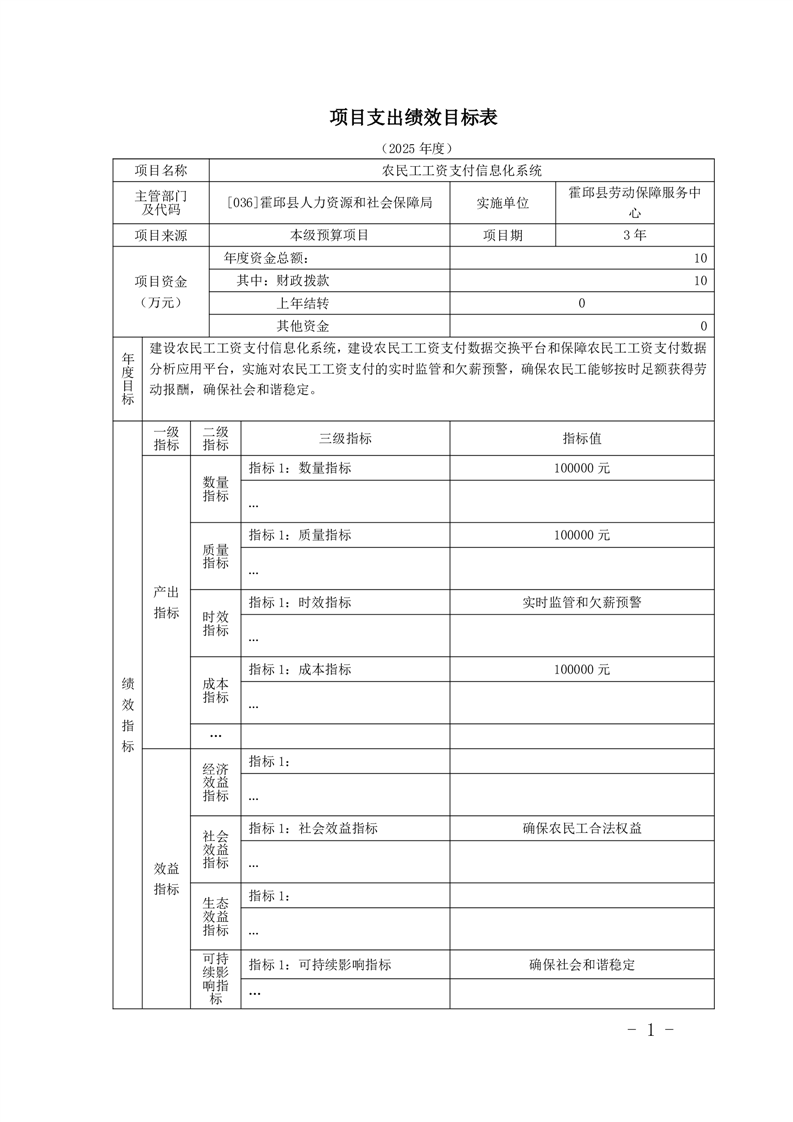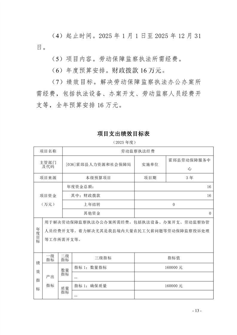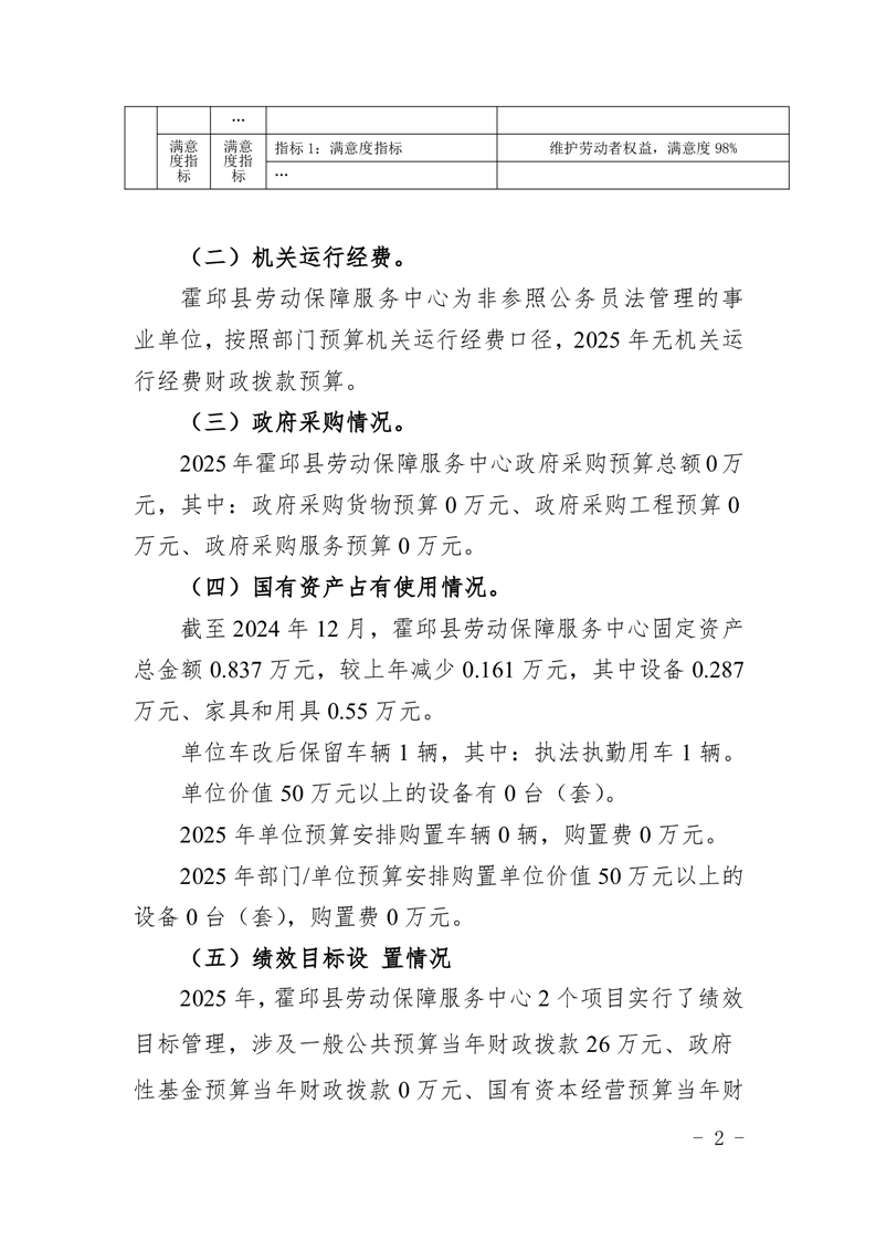 霍邱县劳动保障服务中心2025年度项目支出绩效目标.doc