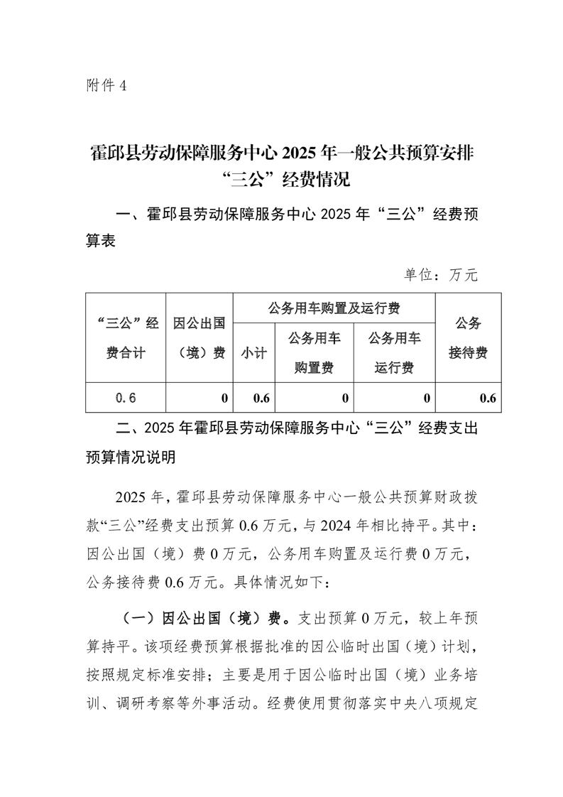 霍邱县劳动保障服务中心2025年一般公共预算安排“三公”经费情况公开