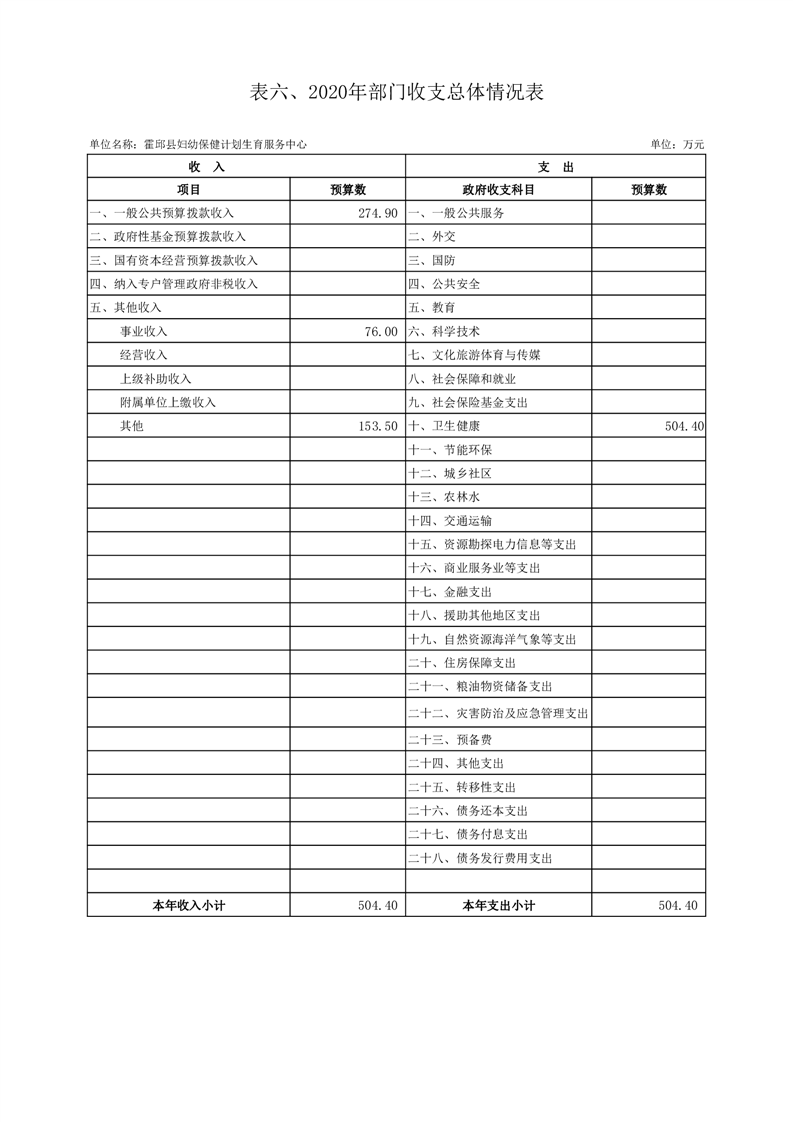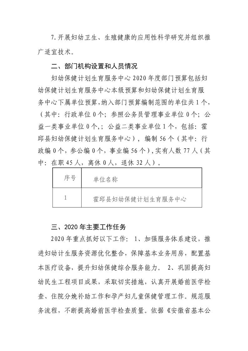霍邱县妇幼保健计划生育服务中心2020年部门预算编制说明