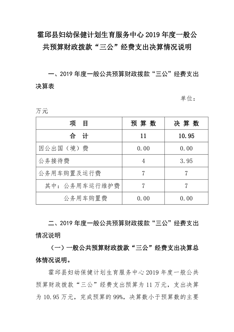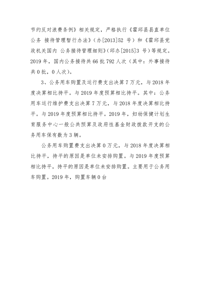 霍邱县妇幼保健计划生育服务中心 2019 年度一般公 共预算财政拨款“三公”经费支出决算情况说明