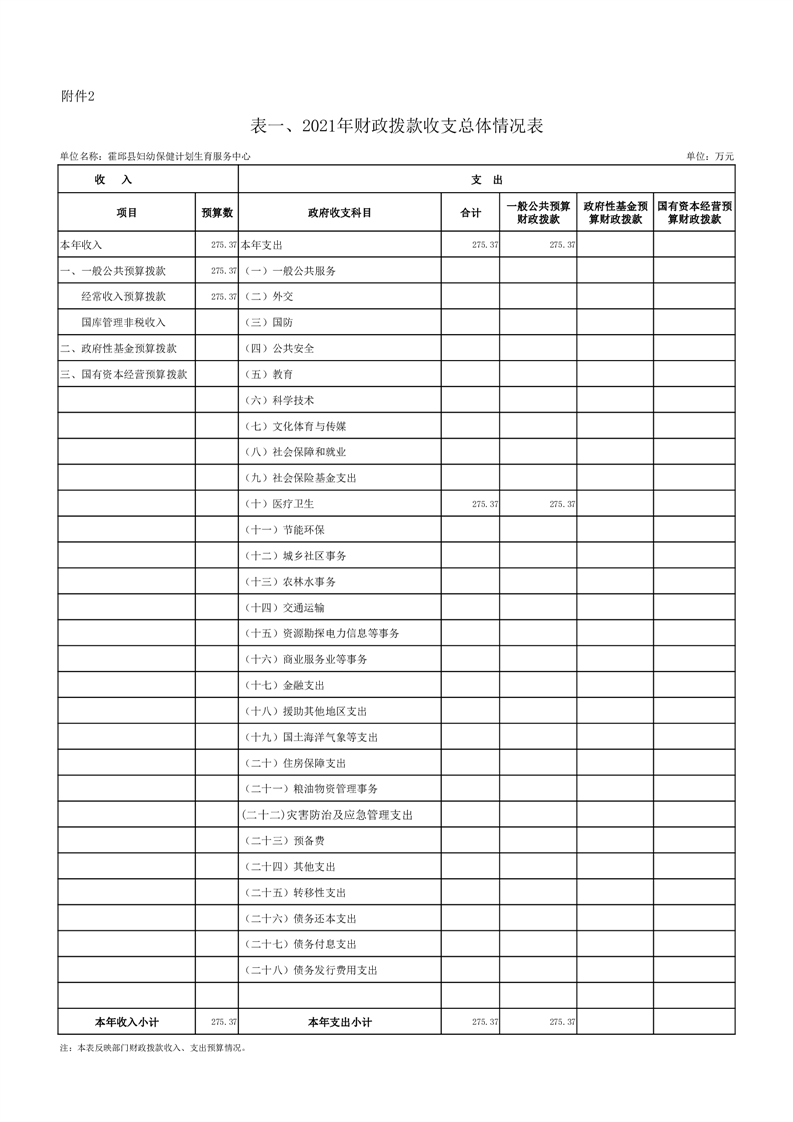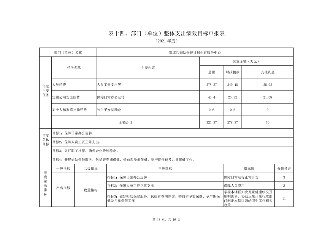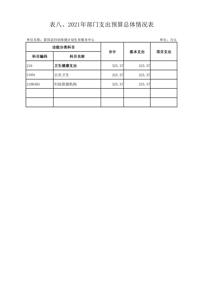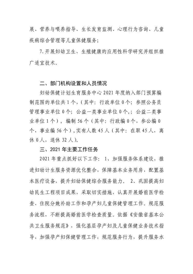 霍邱县妇幼保健计划生育服务中心2021年部门预算公开