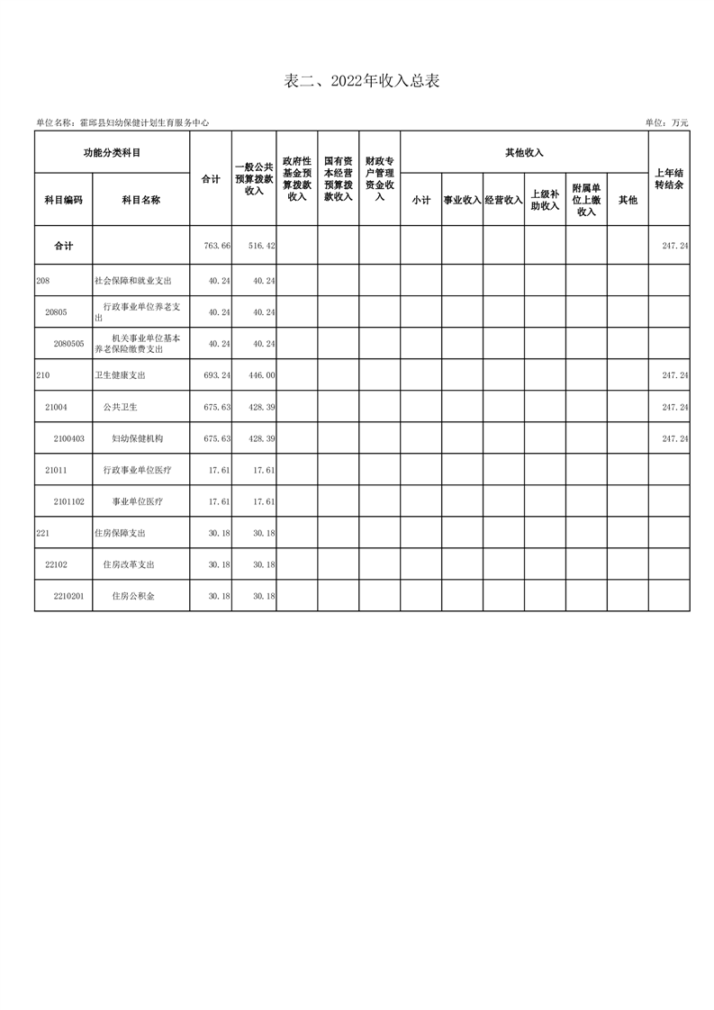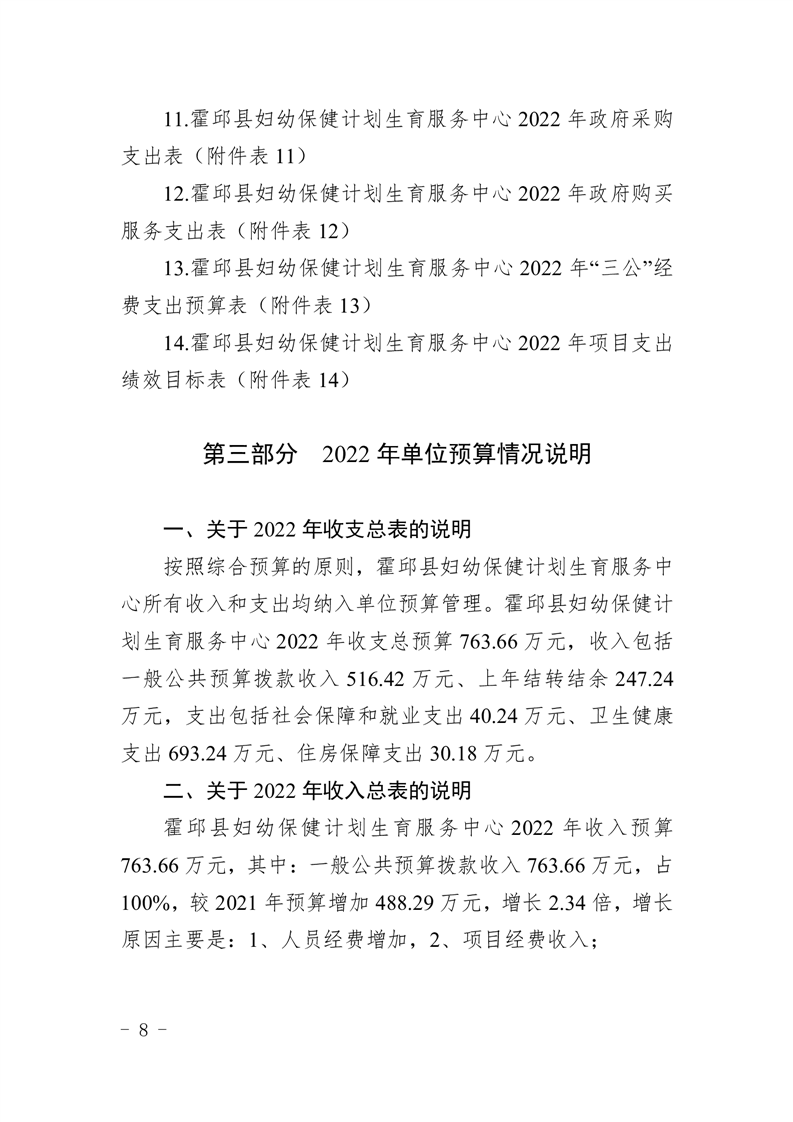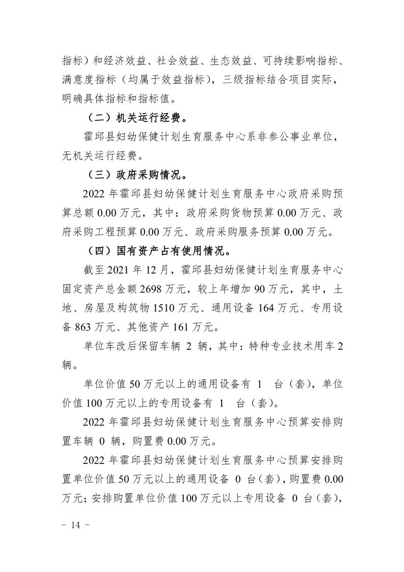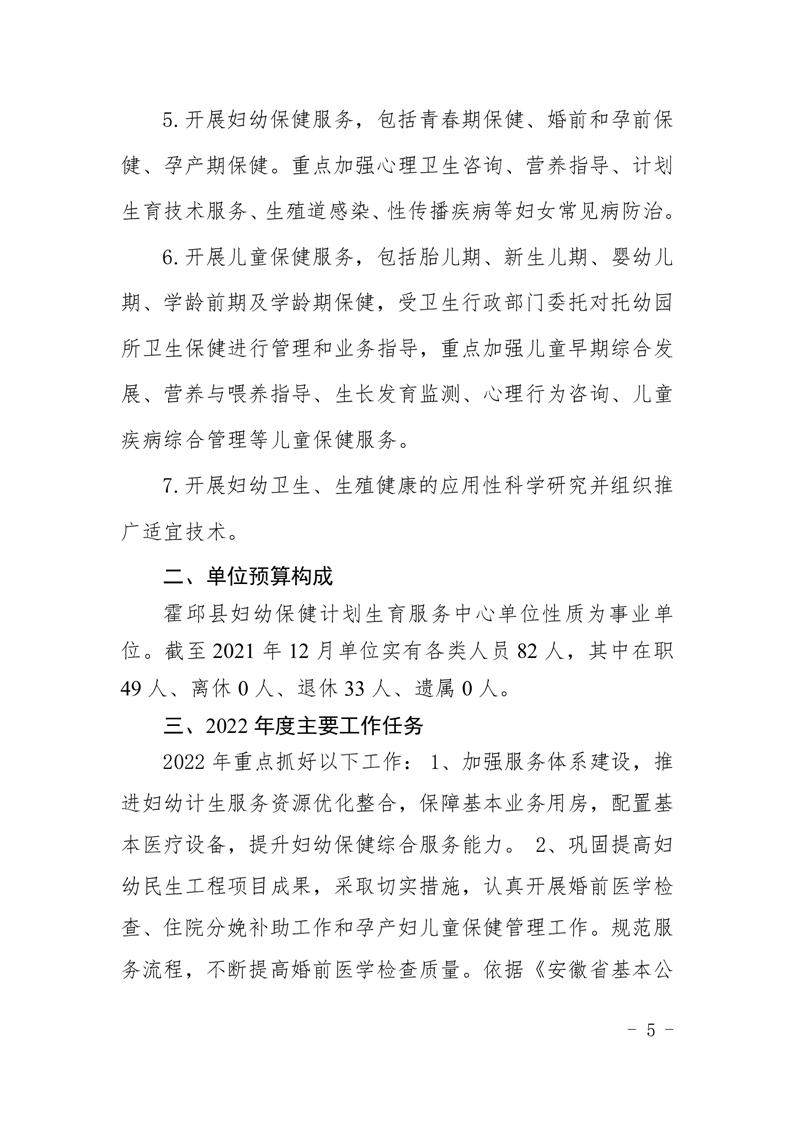 霍邱县妇幼保健计划生育服务中心2022年预算公开