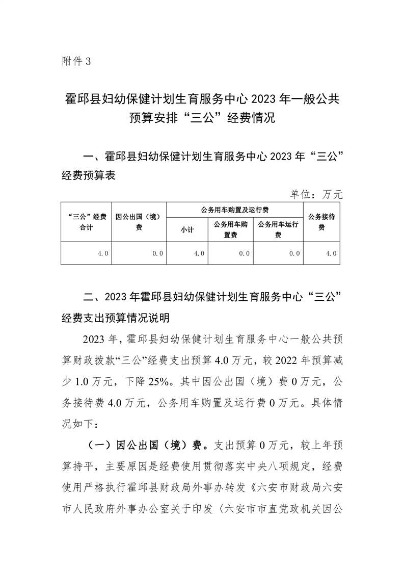 霍邱县妇幼保健计划生育服务中心2023年单位一般公共预算安排“三公”经费情况公开
