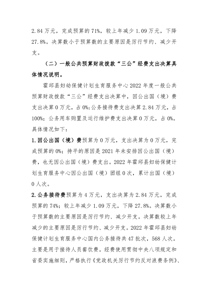 霍邱县妇幼保健计划生育服务中心2022年度一般公共预算财政拨款“三公经费”支出决算