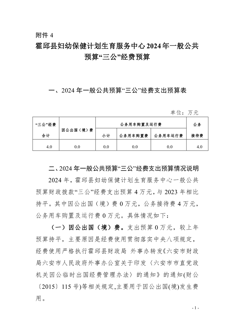 霍邱县妇幼保健计划生育服务中心2024年单位一般公共预算安排“三公”经费情况公开