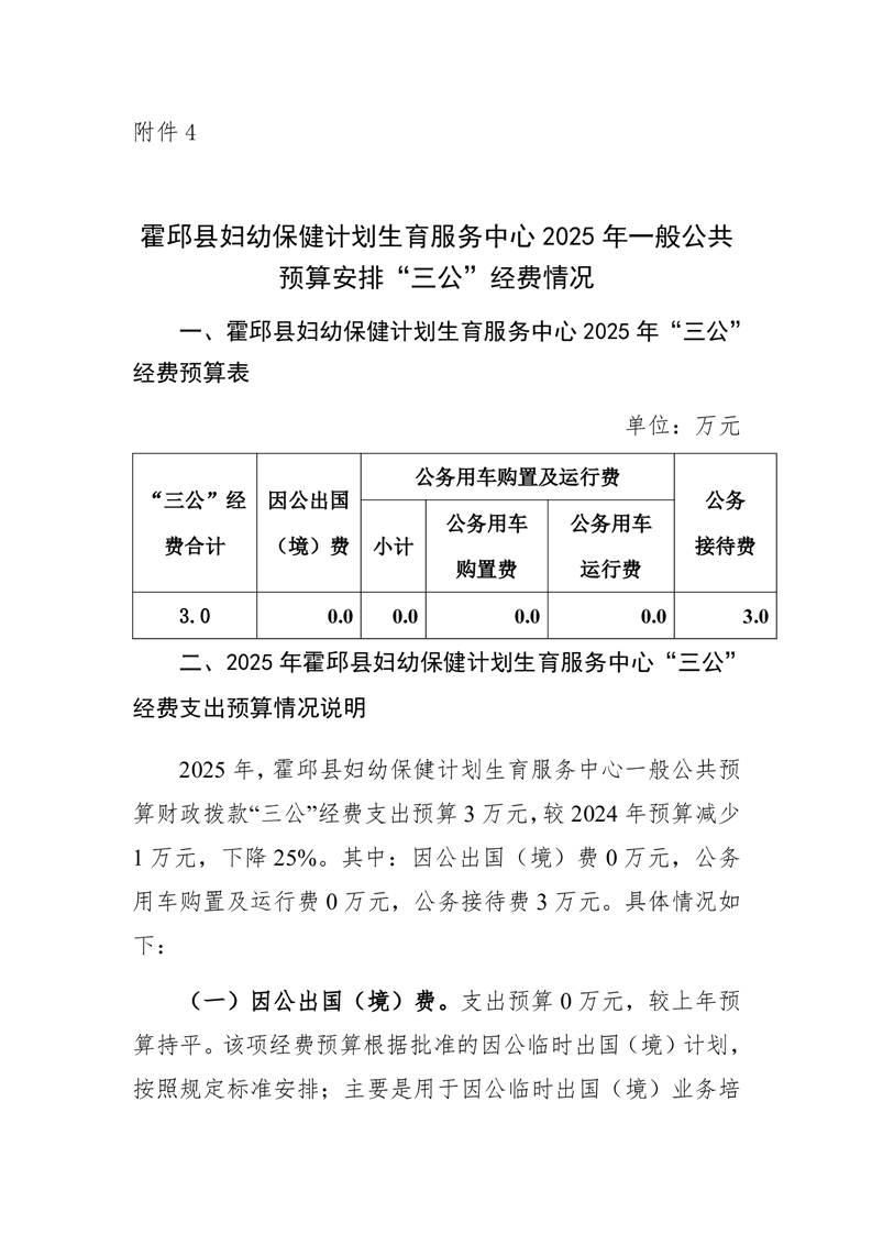 霍邱县妇幼保健计划生育服务中心2025年单位一般公共预算安排“三公”经费情况公开