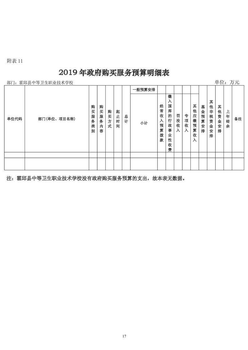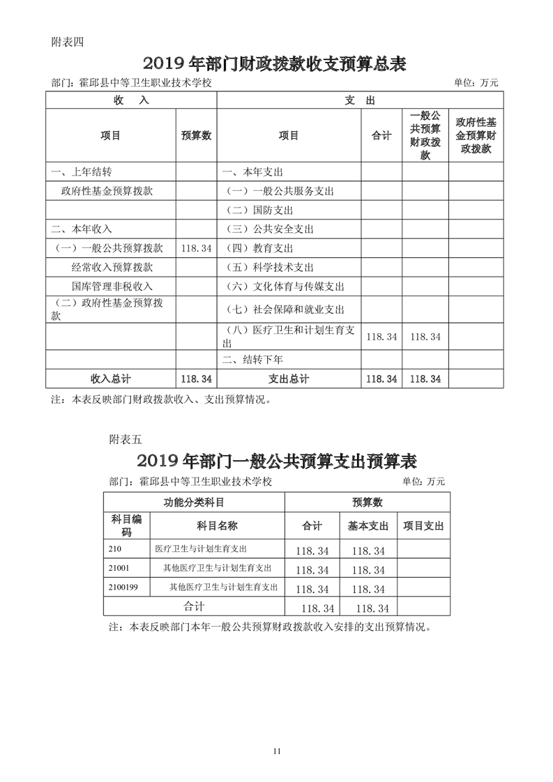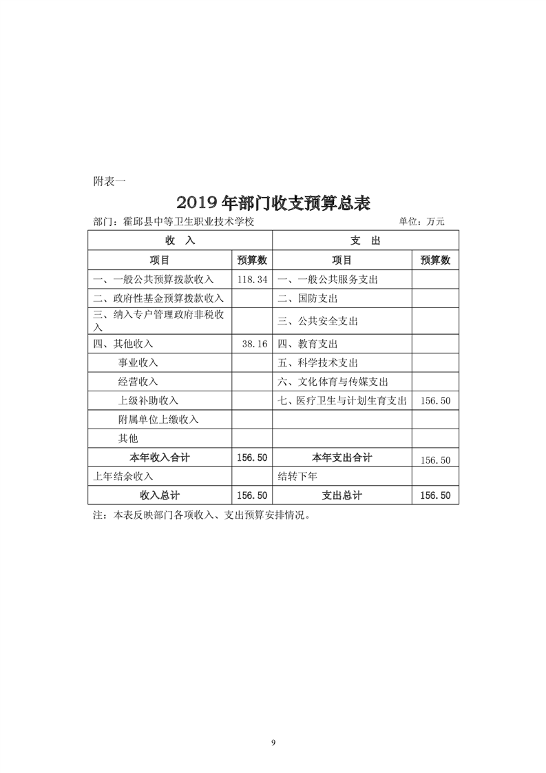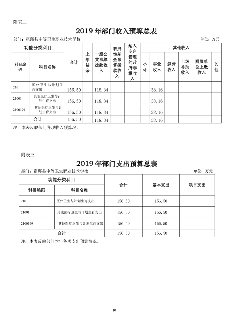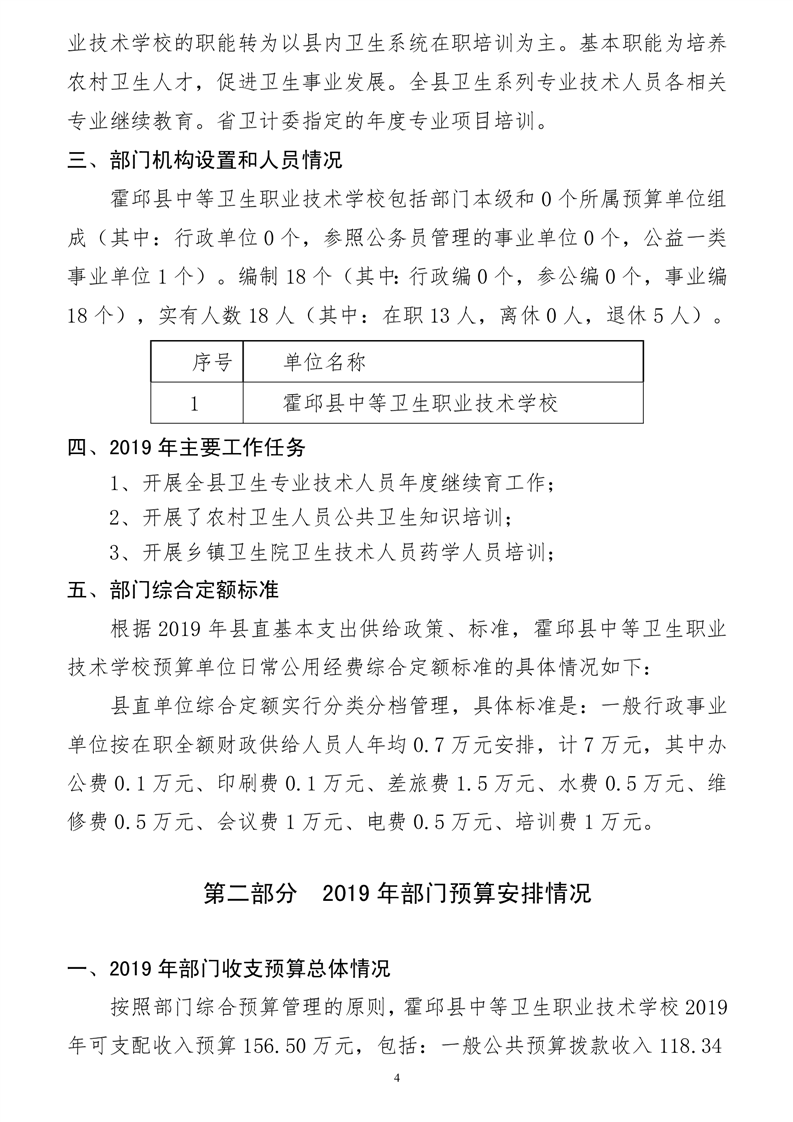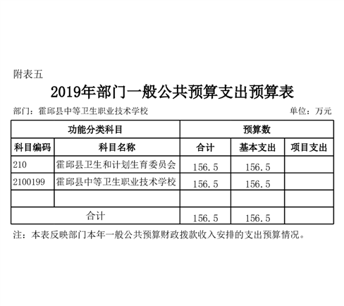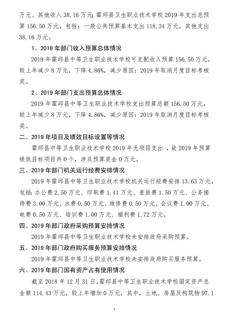 霍邱县卫生和职业技术学校2019年预算编制说明公开
