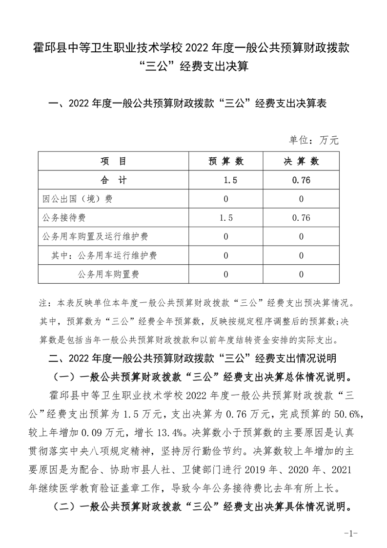 霍邱县中等卫生职业技术学校2022年“三公”经费决算公开