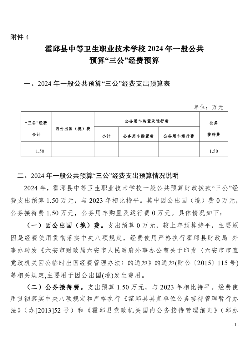 霍邱县中等卫生职业技术学校2024年一般公共预算安排“三公”经费情况公开