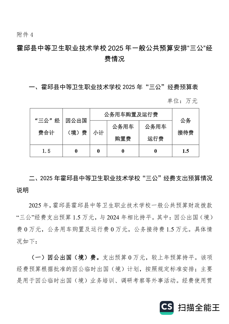 霍邱县中等卫生职业技术学校2025年一般公共预算安排“三公”经费情况公开