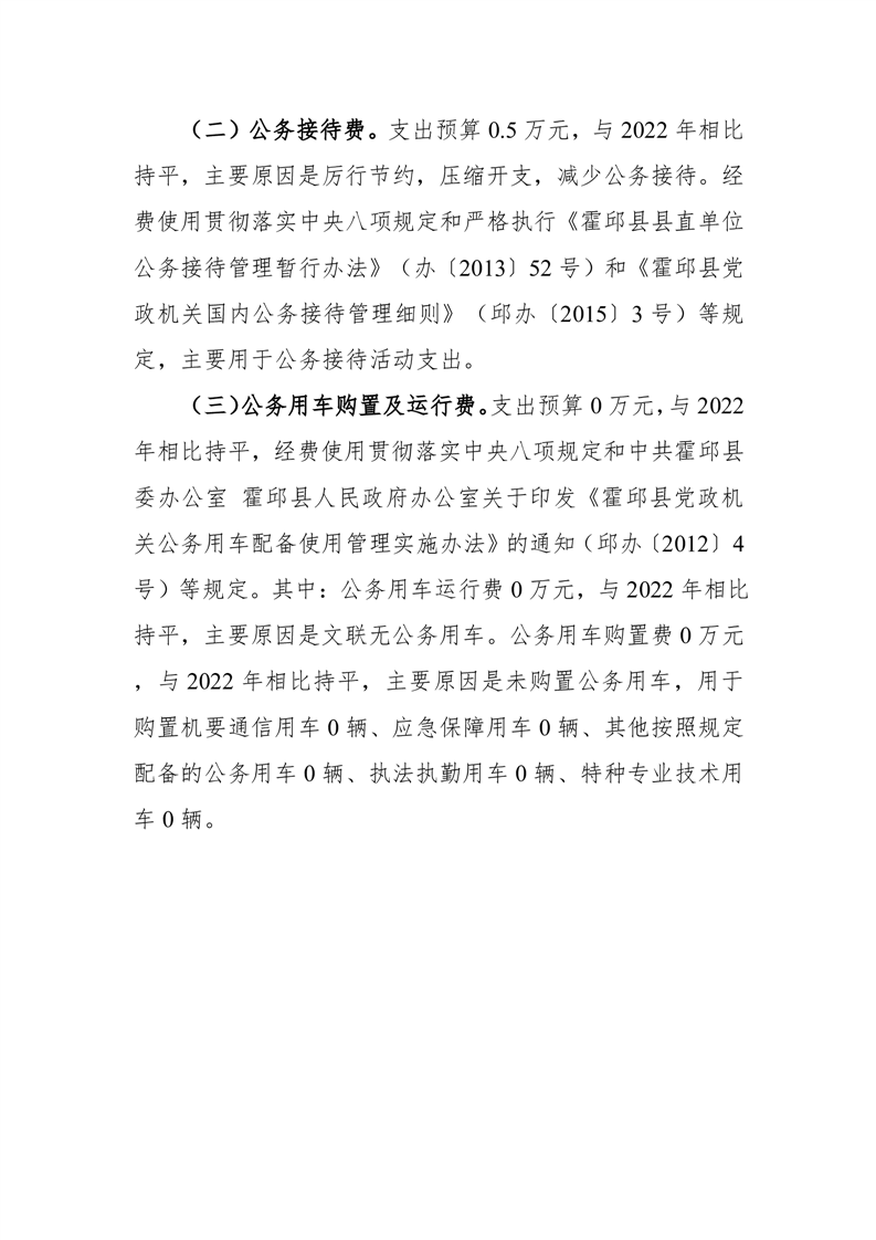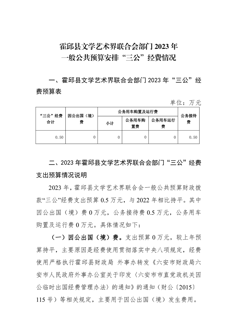 霍邱县文学艺术界联合会2023年部门一般公共预算安排“三公”经费情况公开