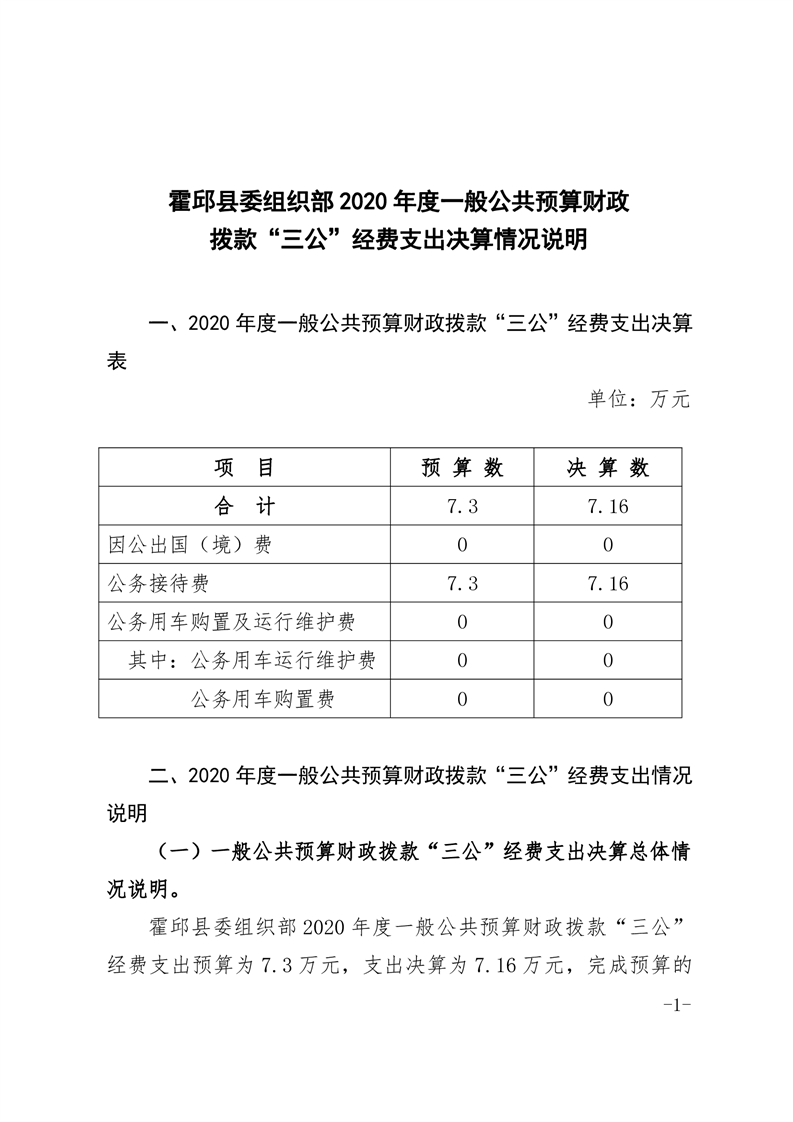 霍邱县委组织部2020年度“三公”经费支出决算情况说明