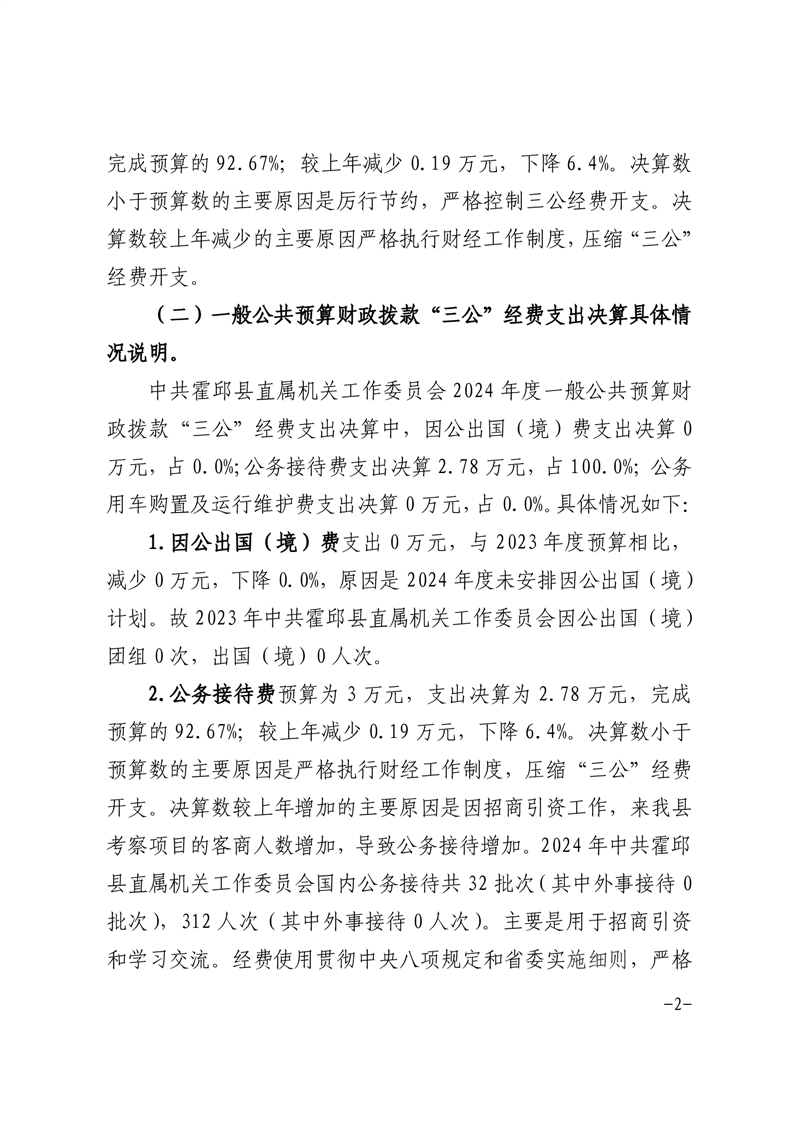 中共霍邱县直属机关工作委员会2024年度一般公共预算财政拨款“三公”经费支出决算