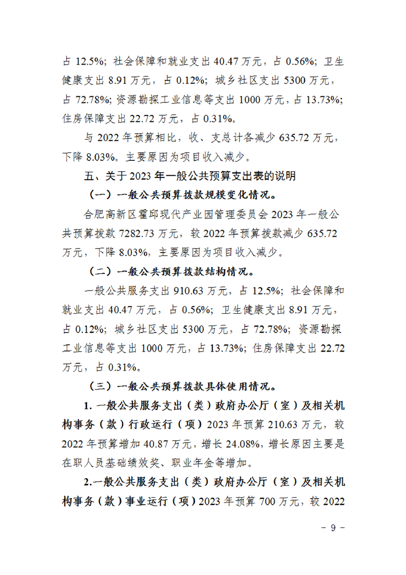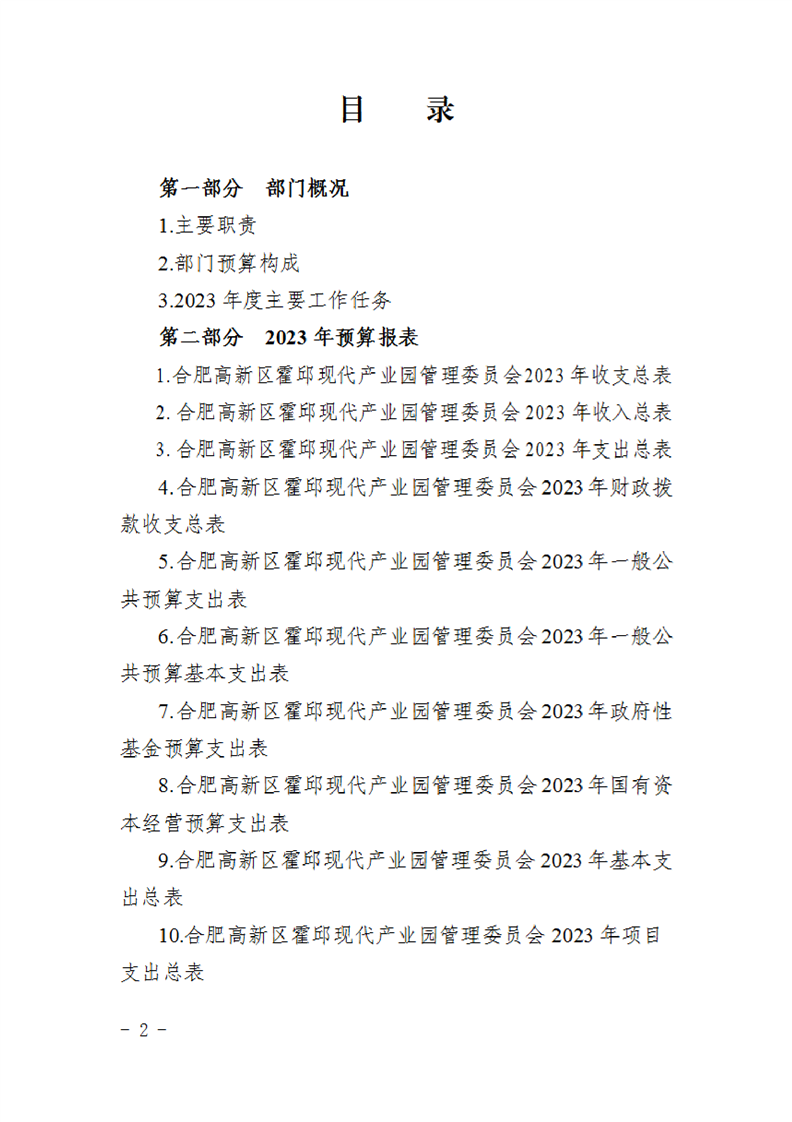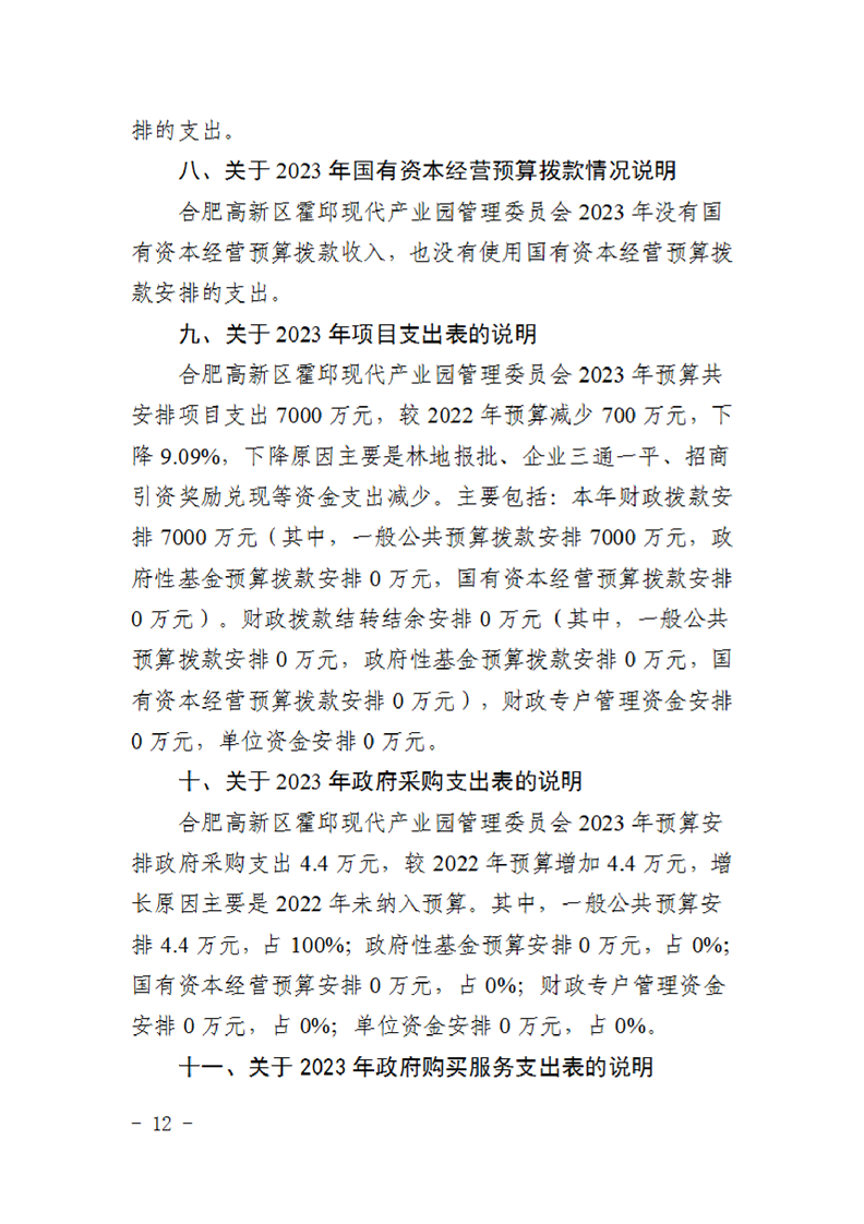 合肥高新区霍邱现代产业园管理委员会2023年部门单位预算公开