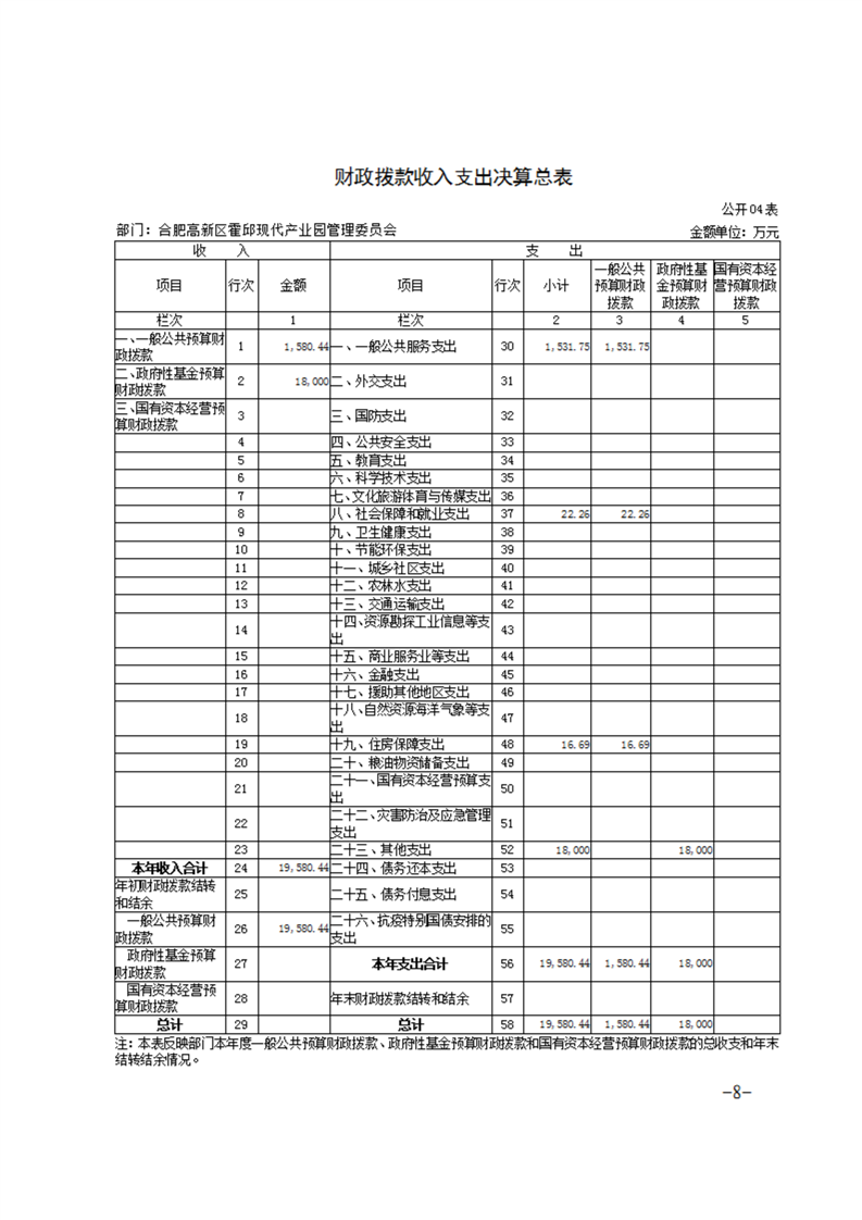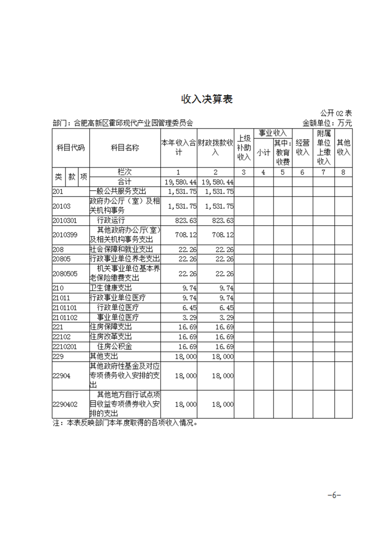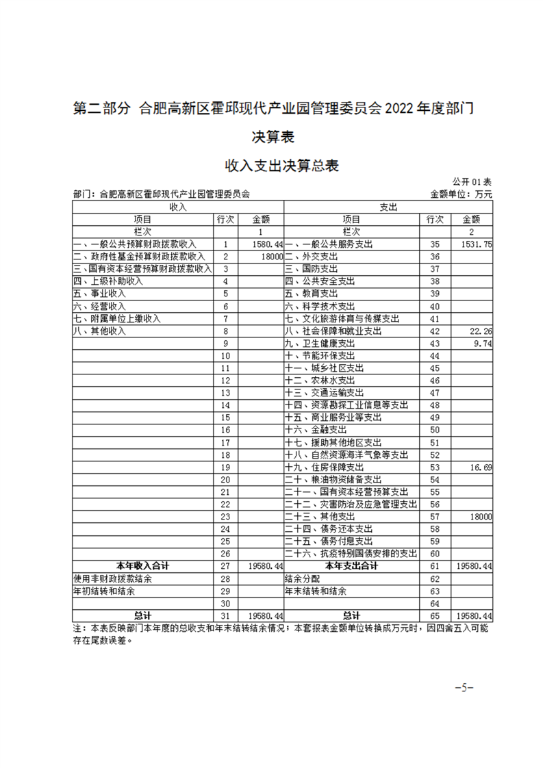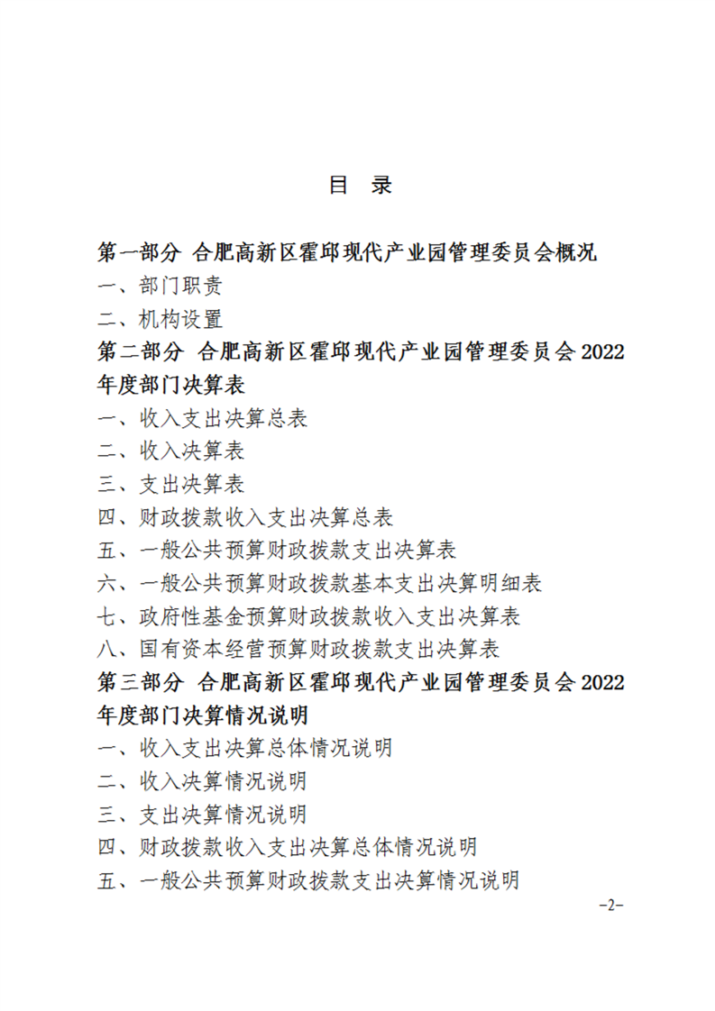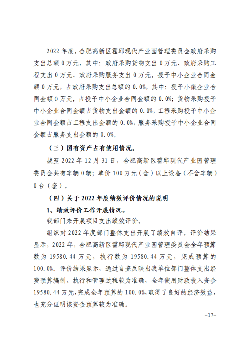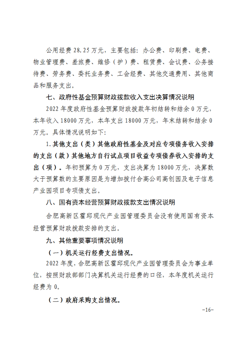 合肥高新区霍邱现代产业园管理委员会2022年度部门决算