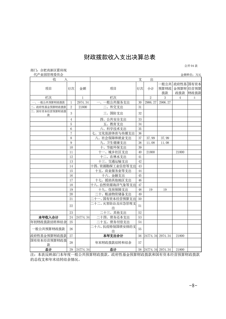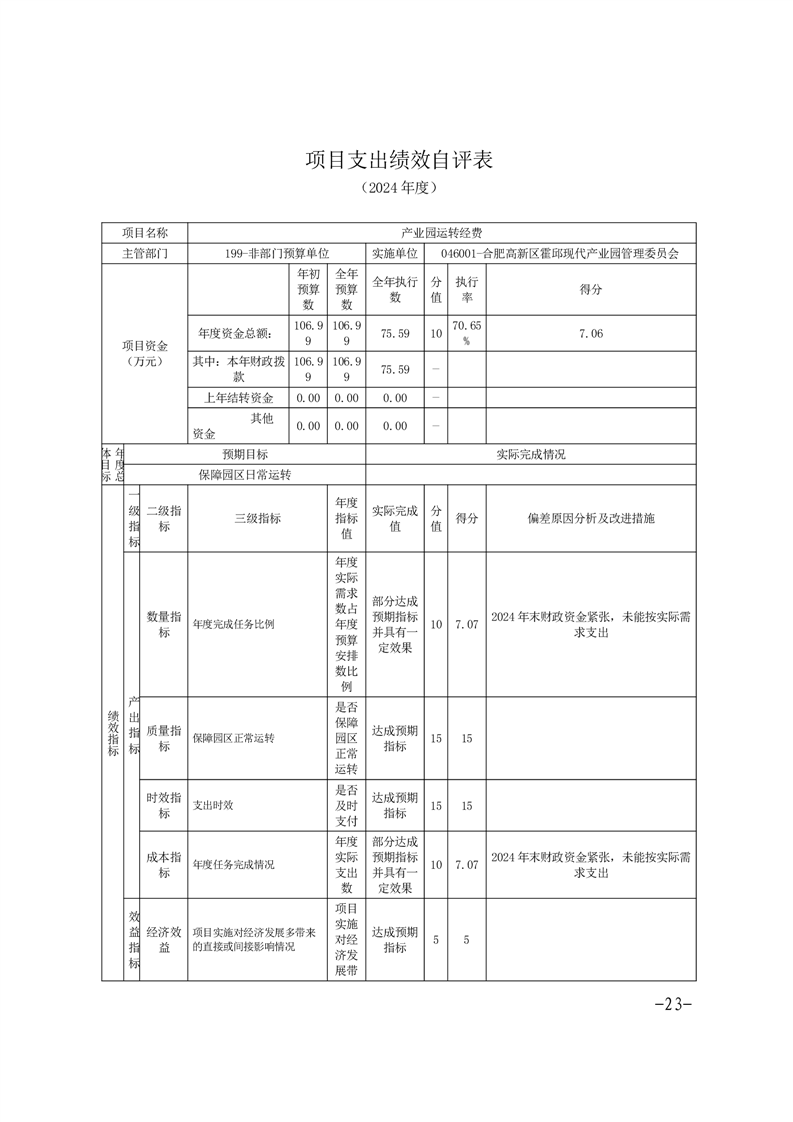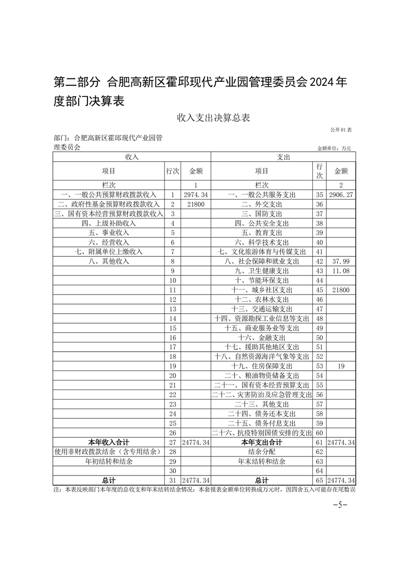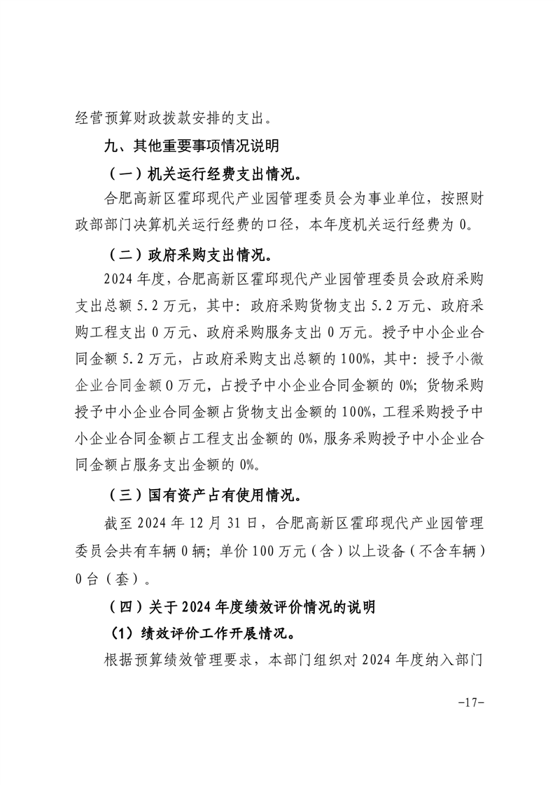 合肥高新区霍邱现代产业园管理委员会2024年度部门决算公开.pdf