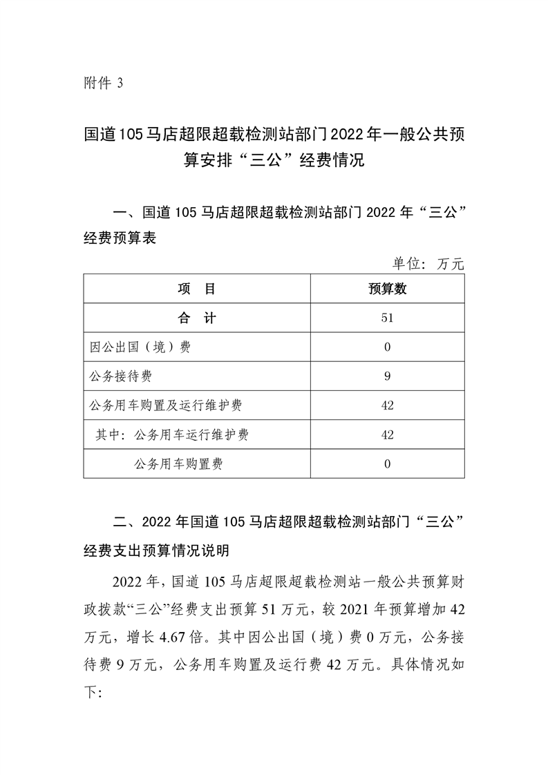国道105马店超限超载检测站2022年一般公共预算安排“三公”经费情况