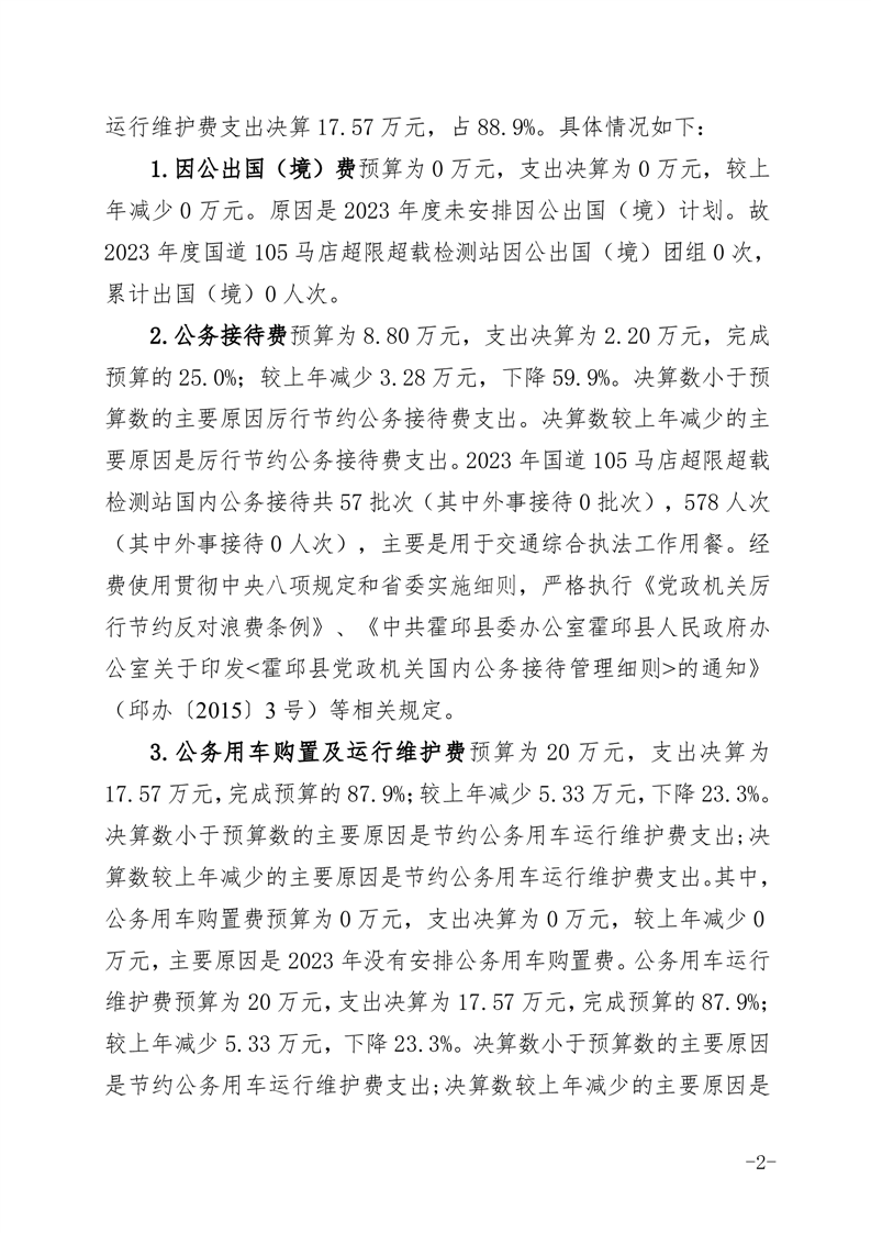 国道 105 马店超限超载检测站2023年度一般公共预算财政拨款“三公”经费支出决算