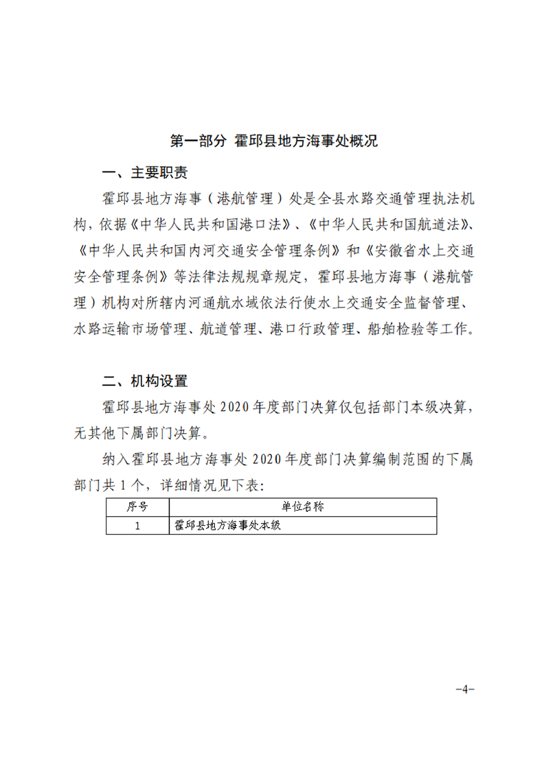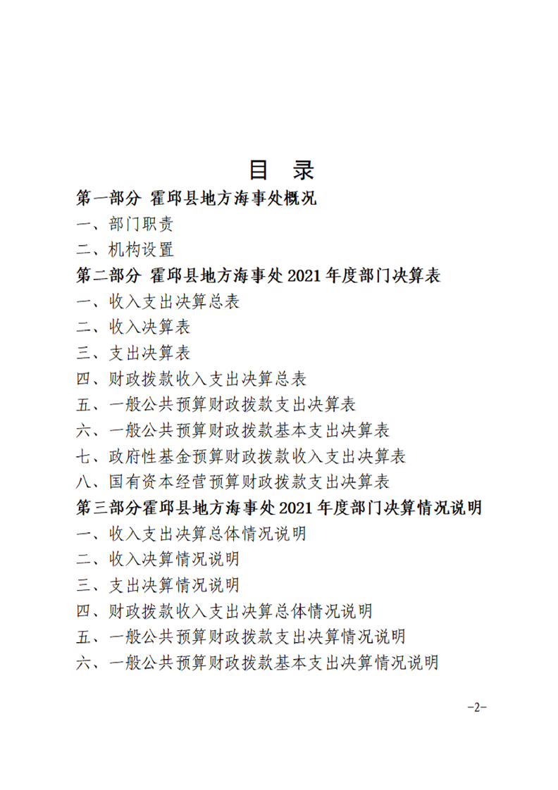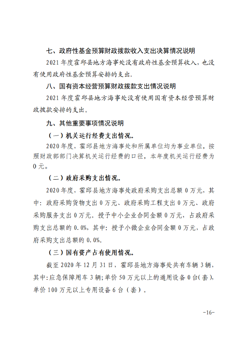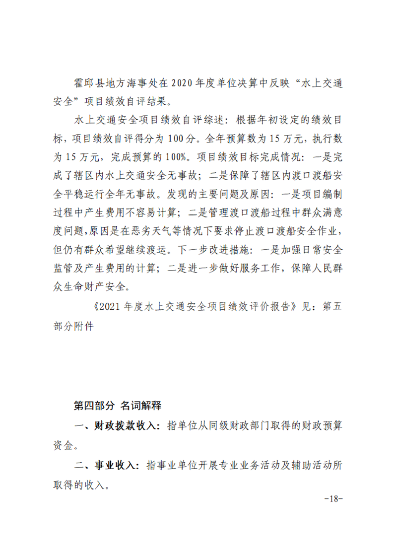 霍邱县地方海事处2021年度决算公开说明
