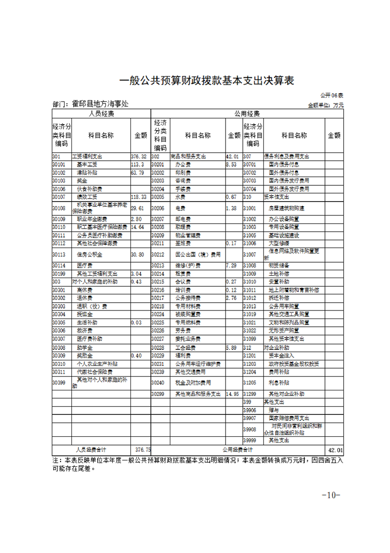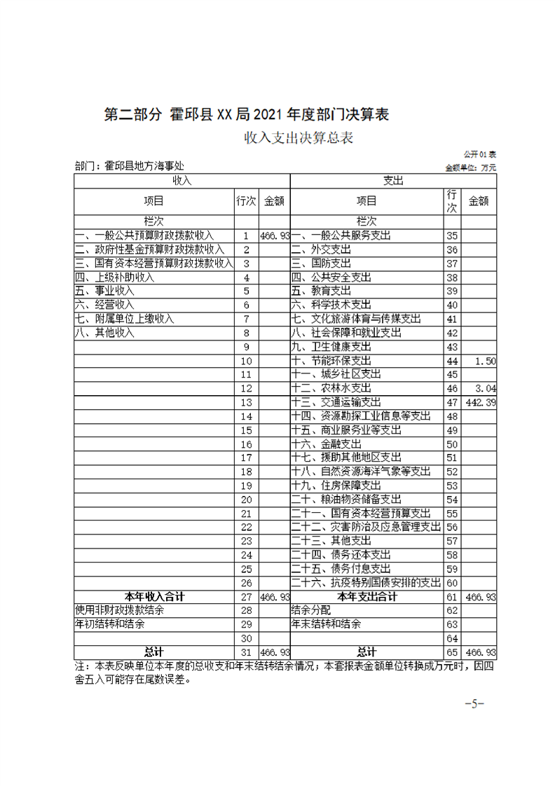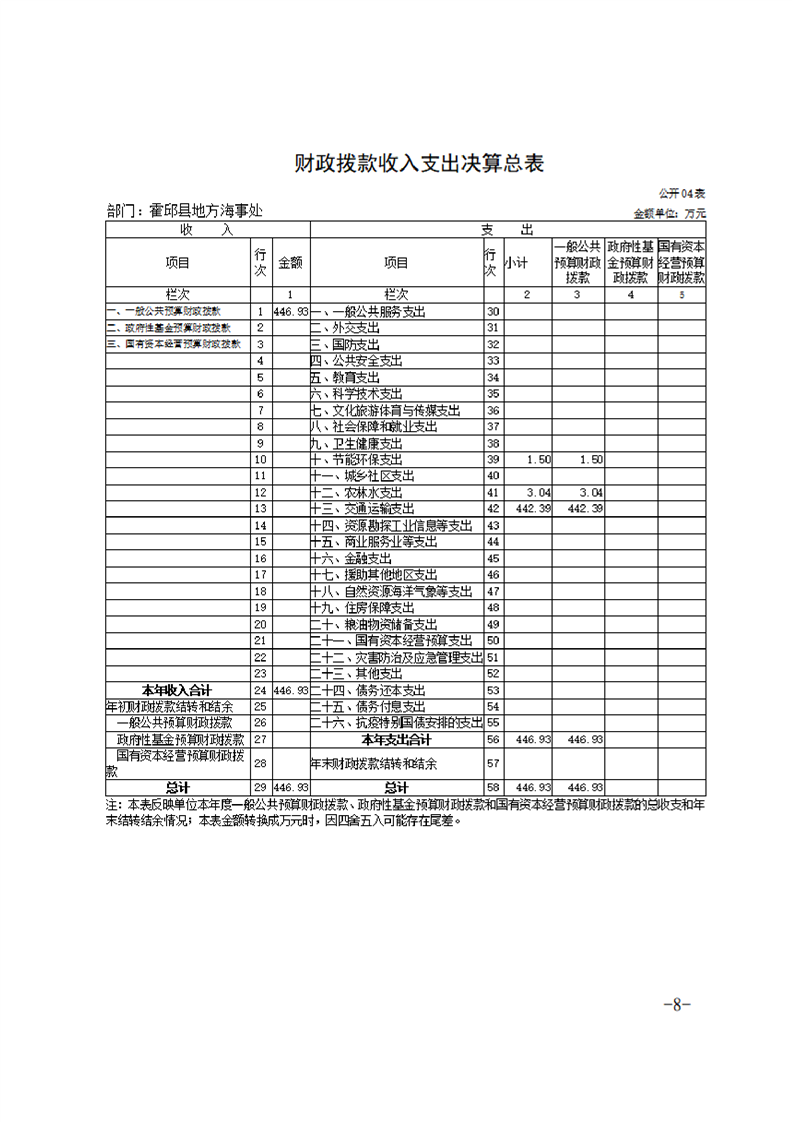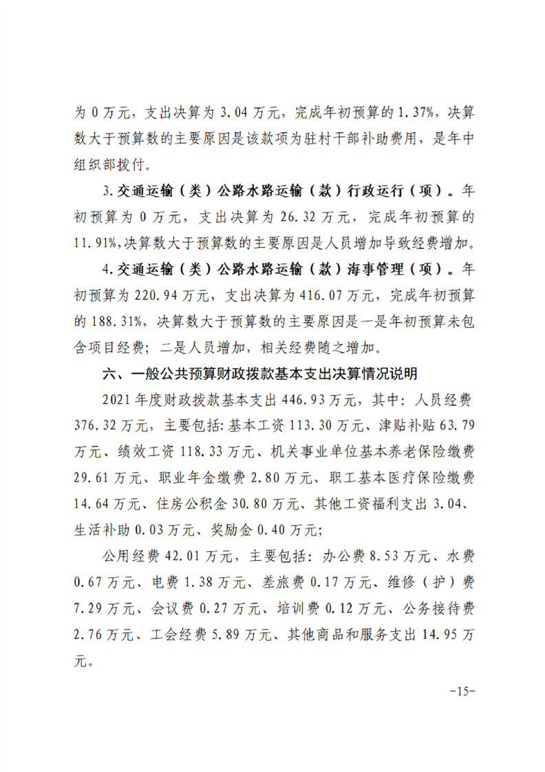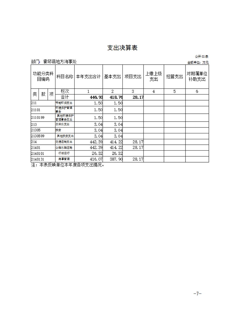 霍邱县地方海事处2021年度决算公开说明