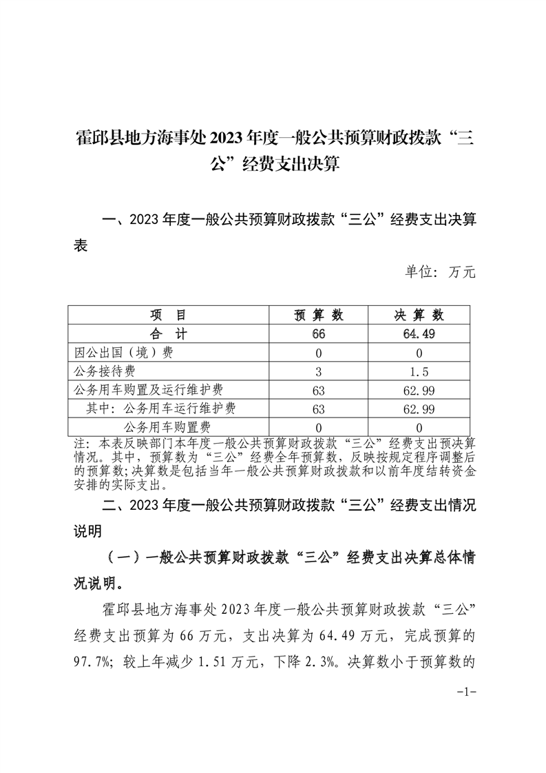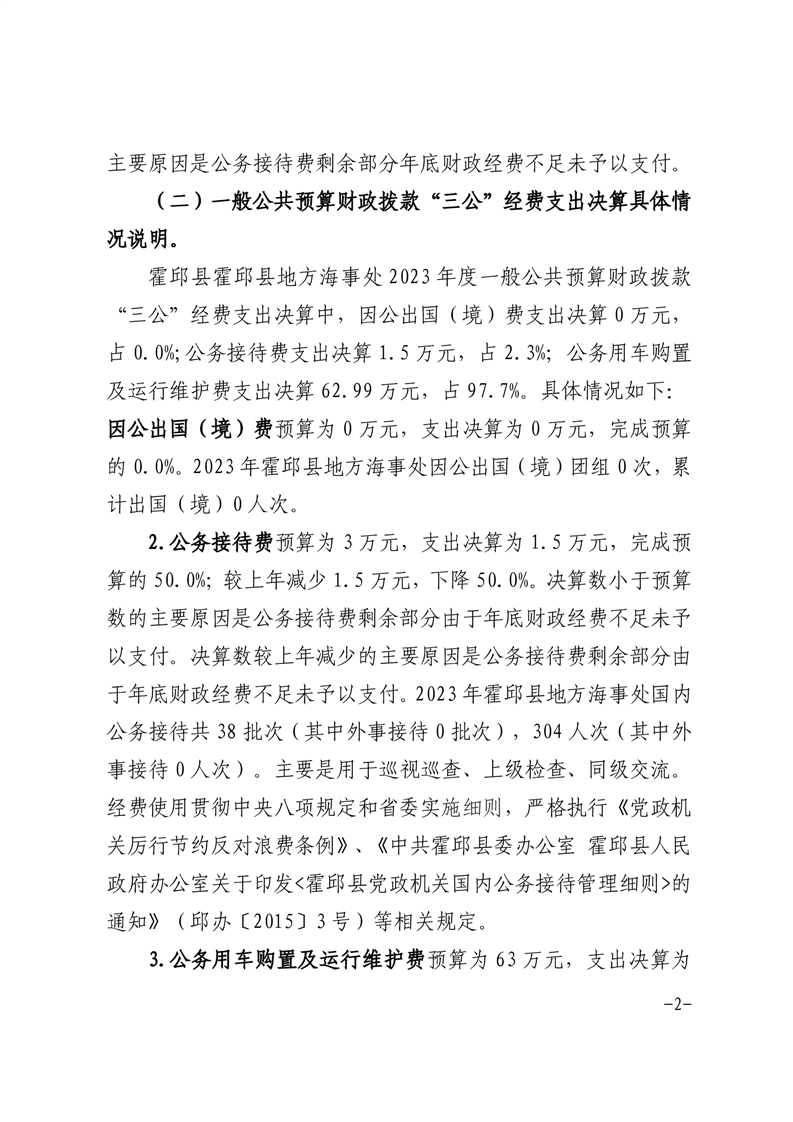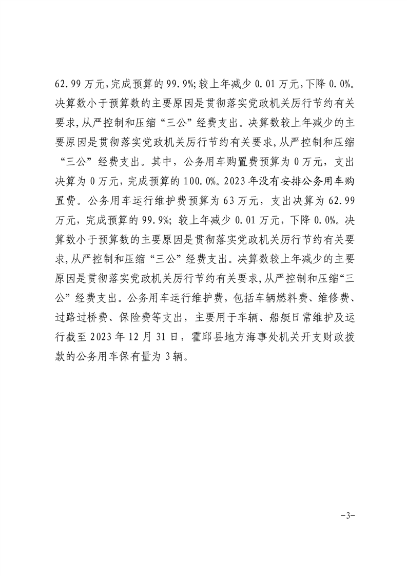 霍邱县地方海事处2023年度一般公共预算财政拨款“三公”经费支出决算公开