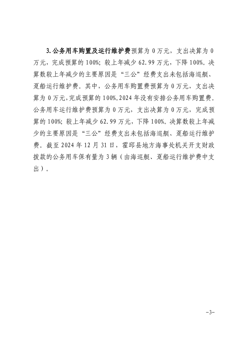 霍邱县地方海事处2024年度一般公共预算财政拨款“三公”经费支出决算公开