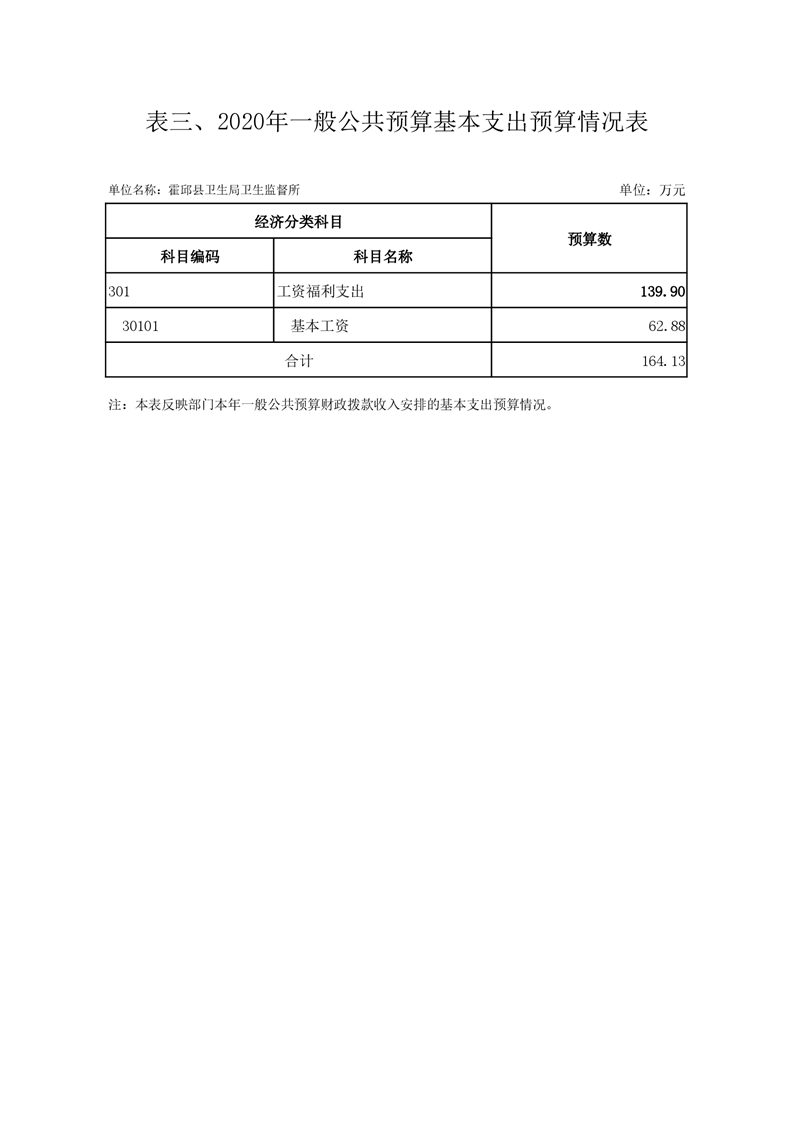 霍邱县卫生局卫生监督所2020年一般公共预算基本支出164.13万元,具体情况如下: